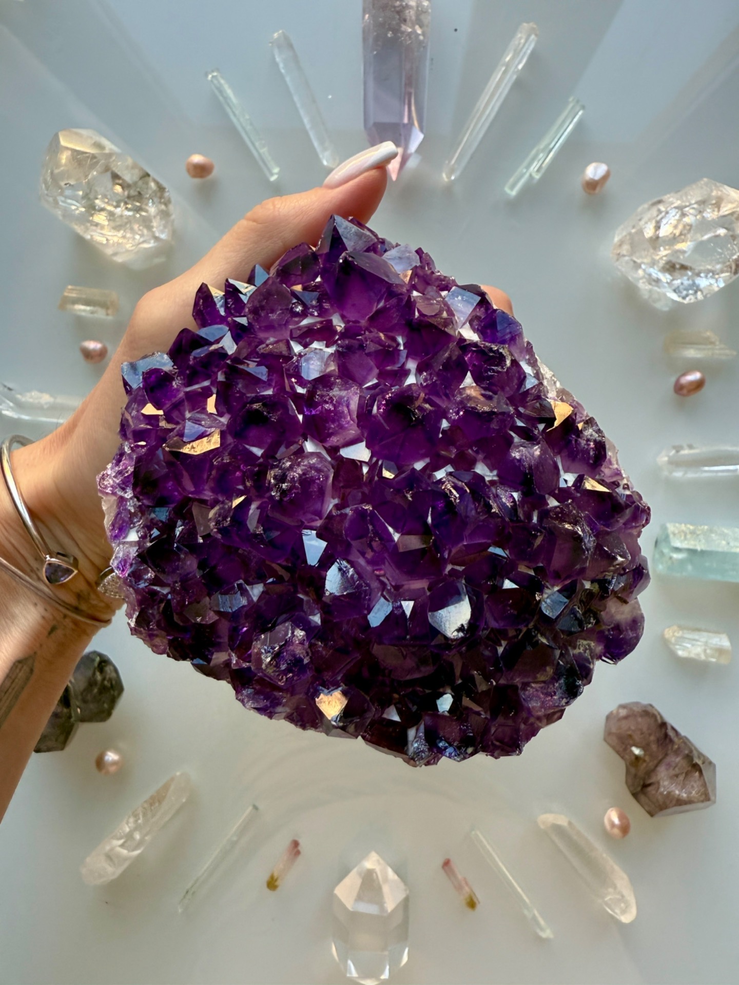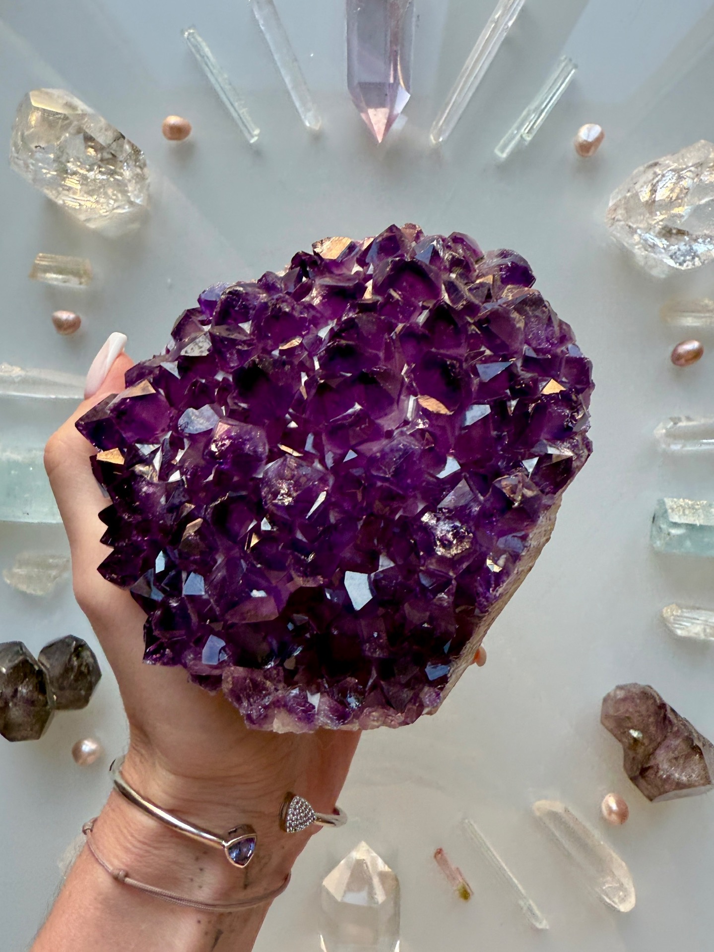 Ametystová drůzička do okolí vyzařuje své pozitivní vyšší vibrace a pomáhá nám udržovat tyto vibrace ve svém domově, okolí, kde je položena. Naladit nás vždy na Vyšší Pravdu.