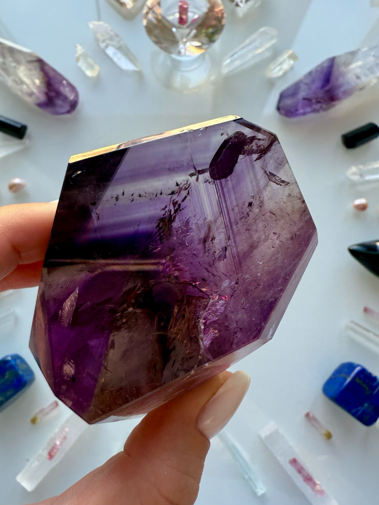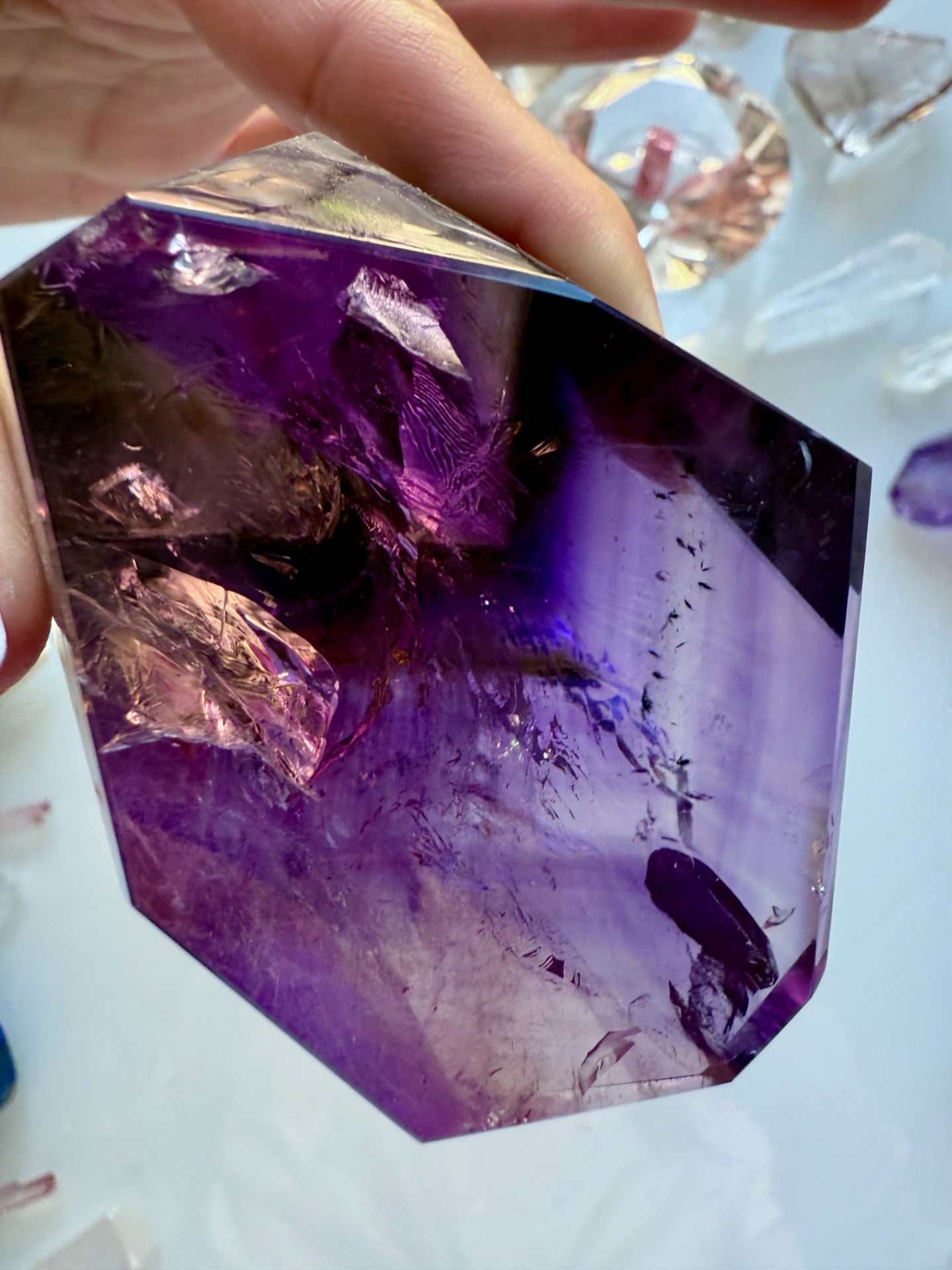 Ve středu je křišťálová mísa, kterou stráží kobry, ve které jsou minerály a na nich ametystová aktivační pečeť. Především je však naplněná posvátnou vodou z Osirionu, 💧místa, kde byl poprvé nalezen Květ Života, kde jsem tuto vodu byla vedena již před rokem dovézt, aby až dnes nadešla chvíle tohoto předání. Toto místo není lidem běžně přístupné a tato voda je aktivační pamětí celé geometrie.