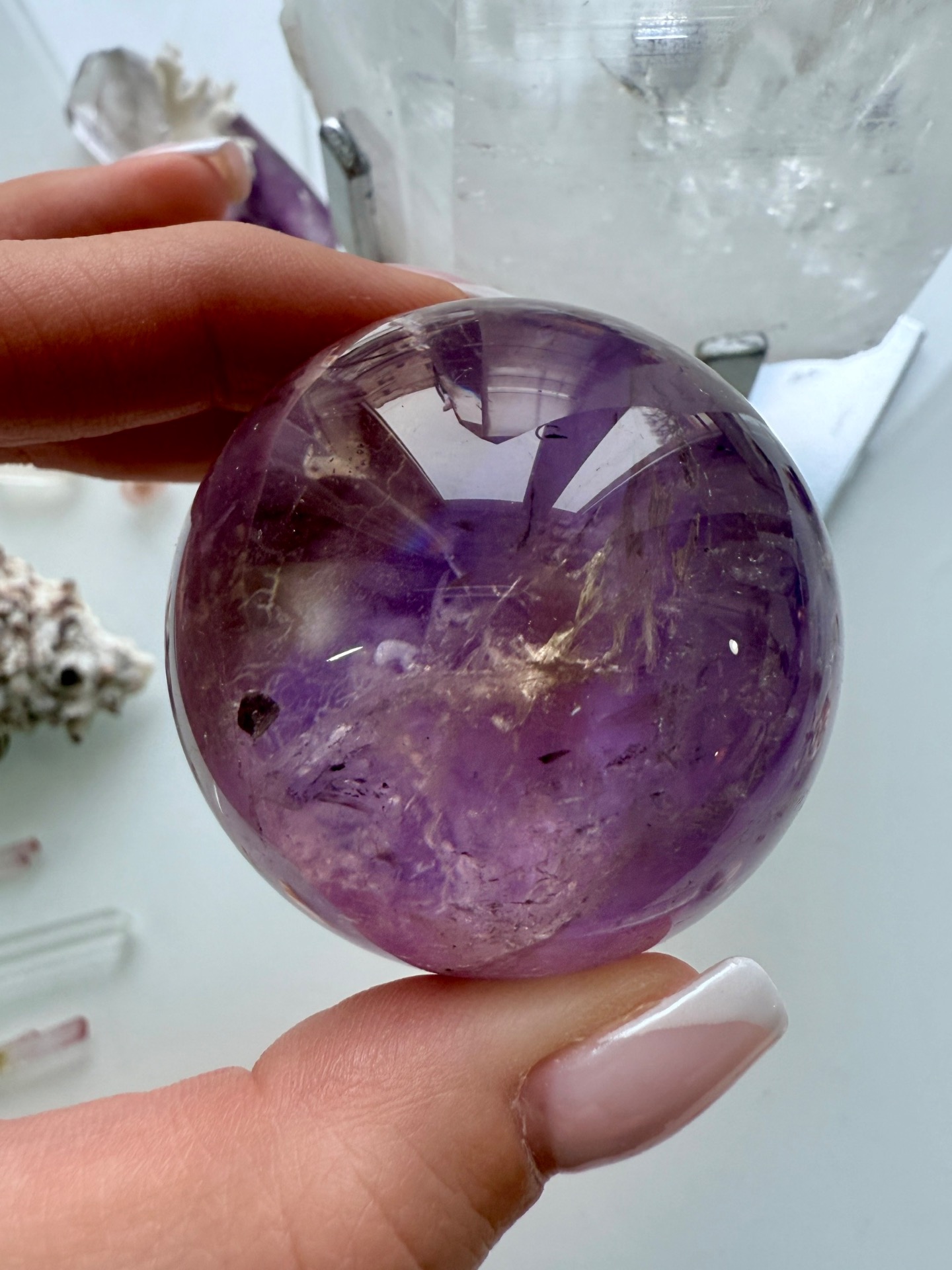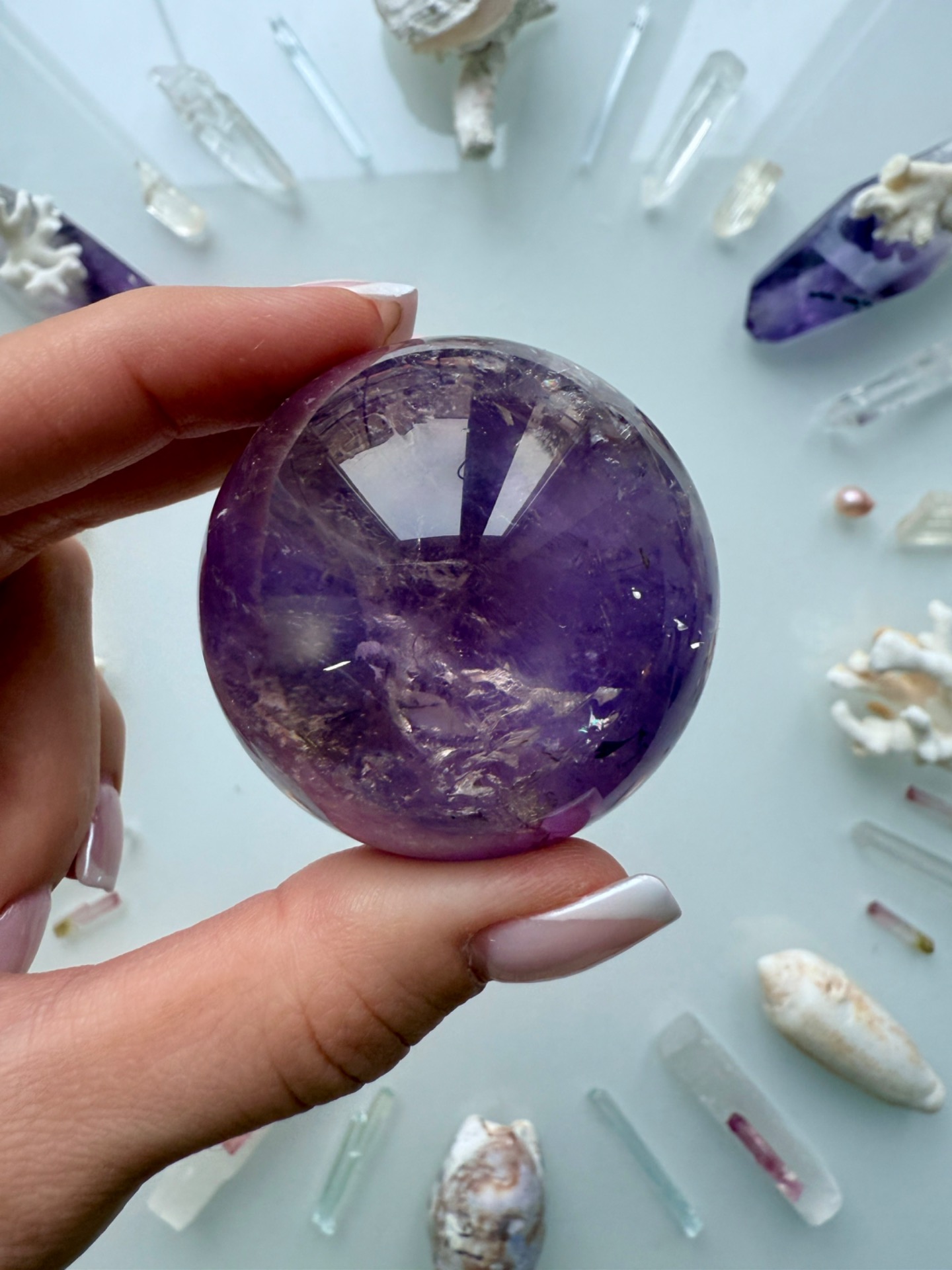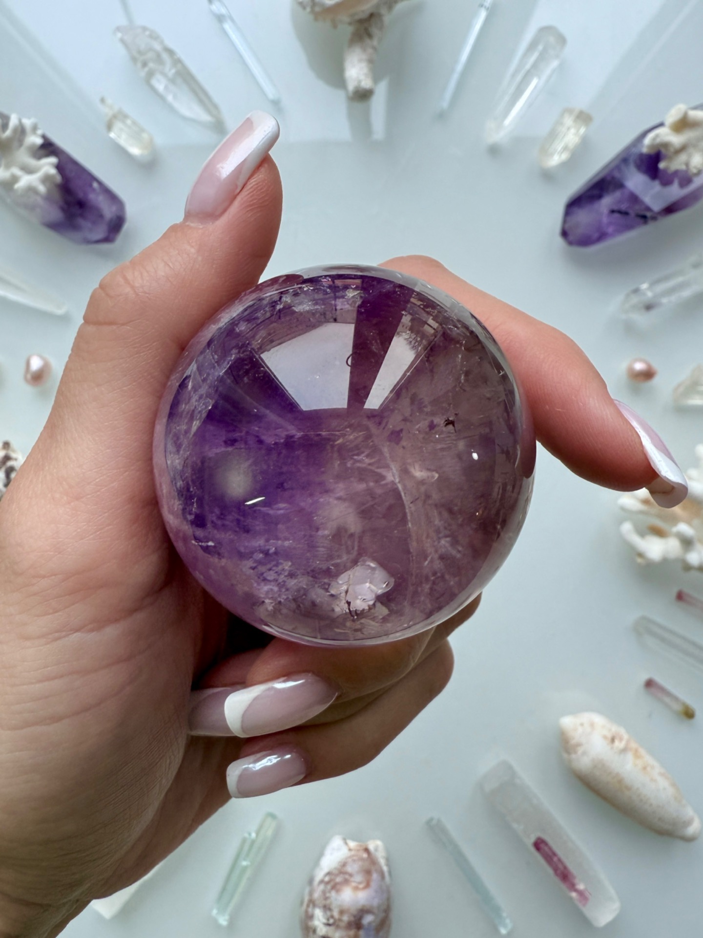 Ametystová koule nám dodává energii důvěry v nás, nalazuje na Nejvyšší podstatu Duše a zarovnání našeho multidimenzionálního středu všech aktivních a propojených Vyšších Já.