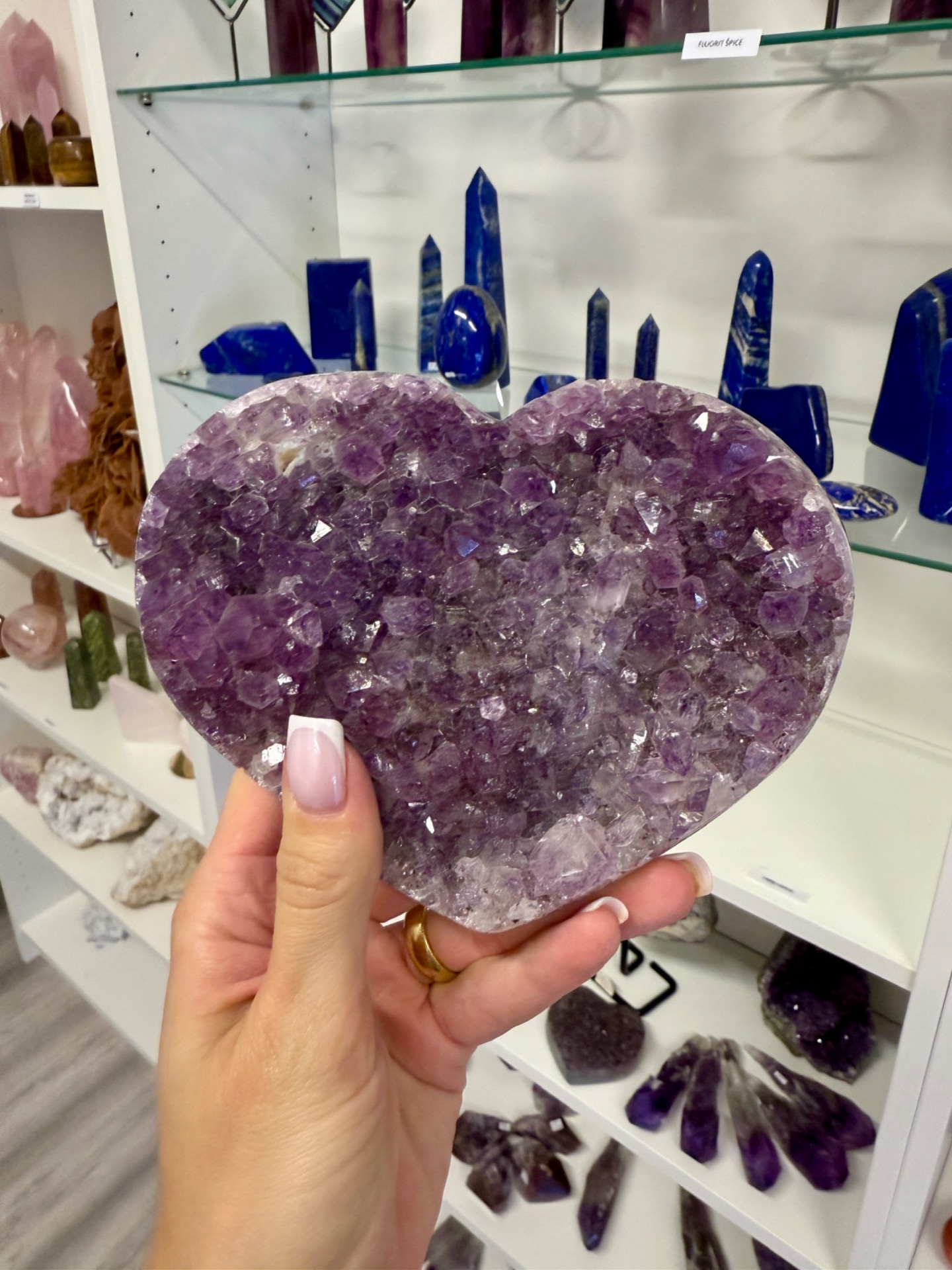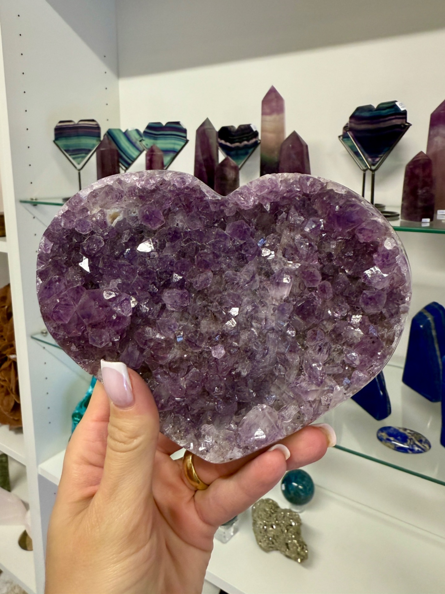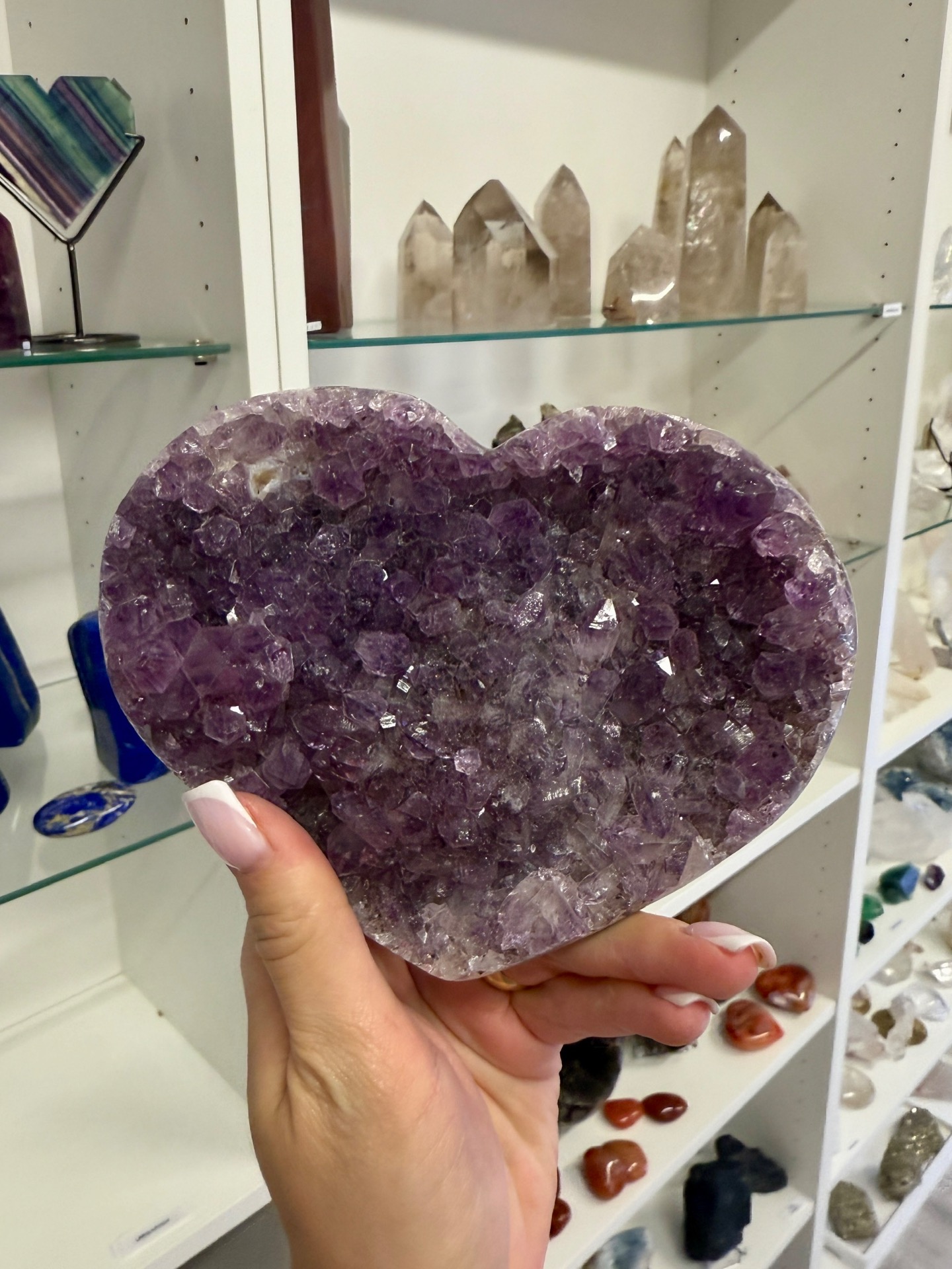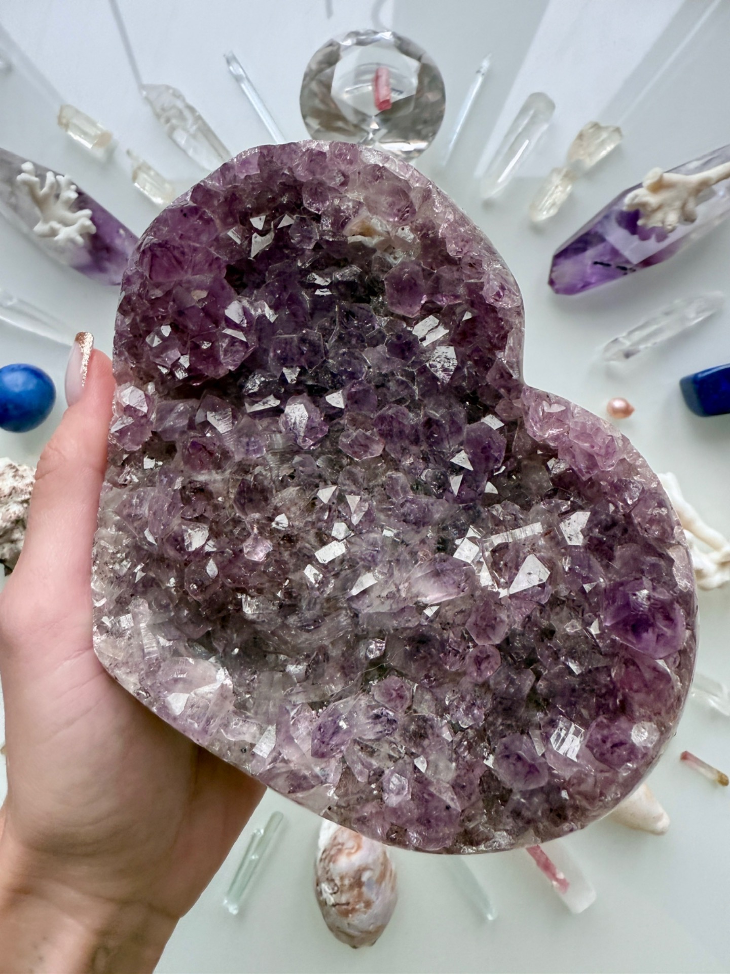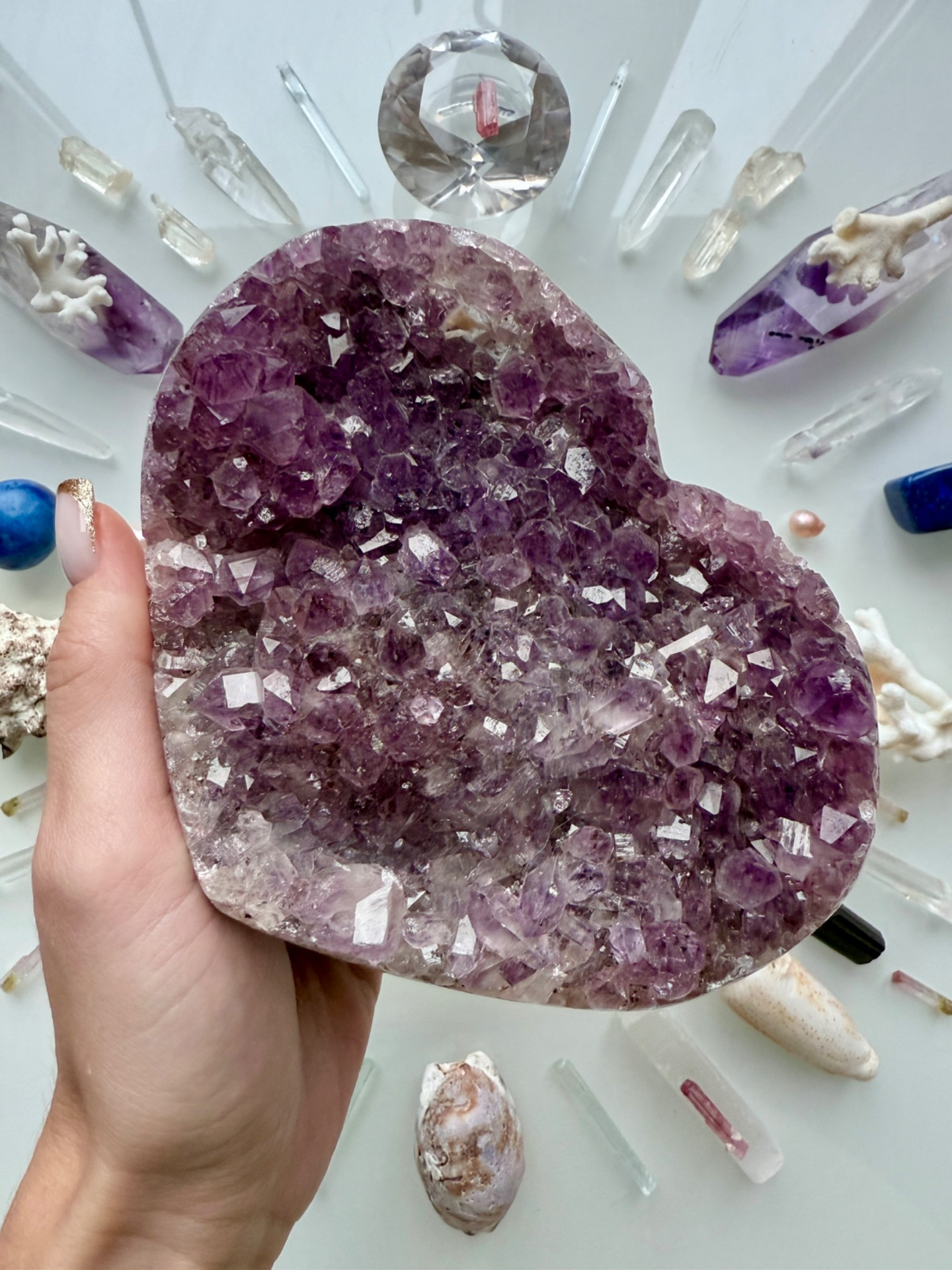 Ametystové Srdce napomáhá v přijímání duchovních informací, rozvoji intuice, v otevření našeho Vědomí, nalazení se na jemnohmotné a duchovní světy a jejich propojení.