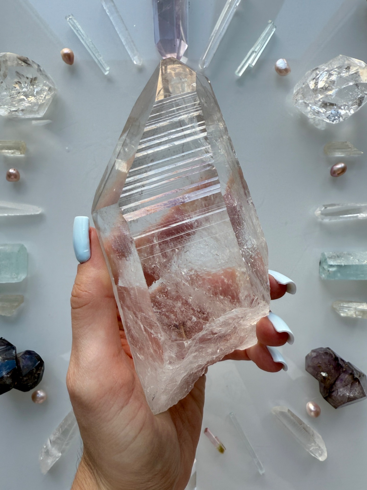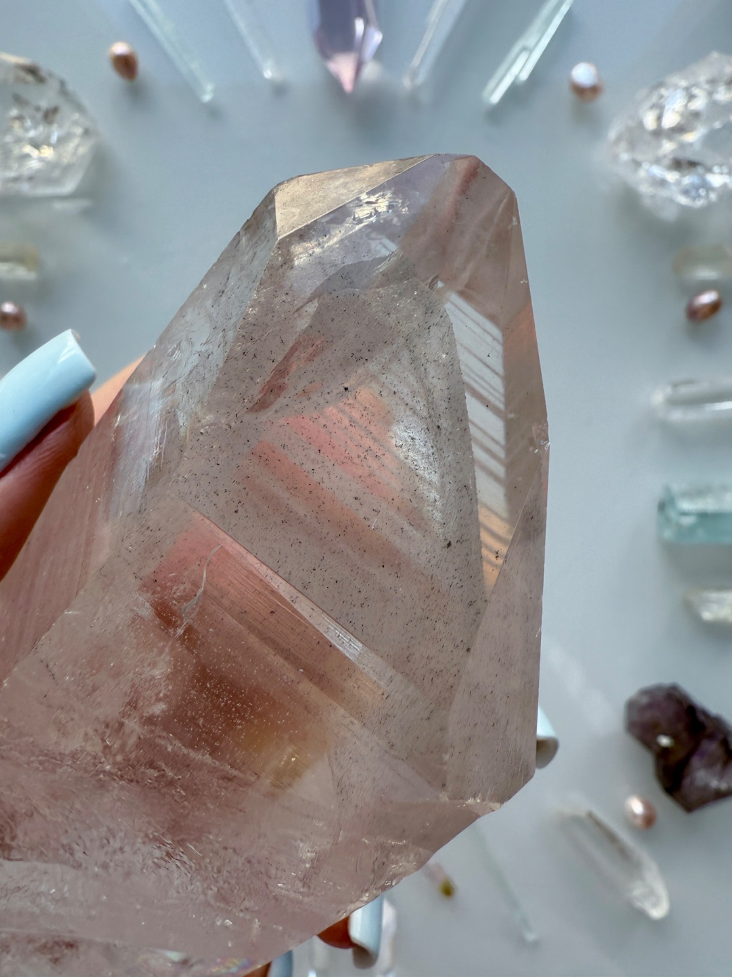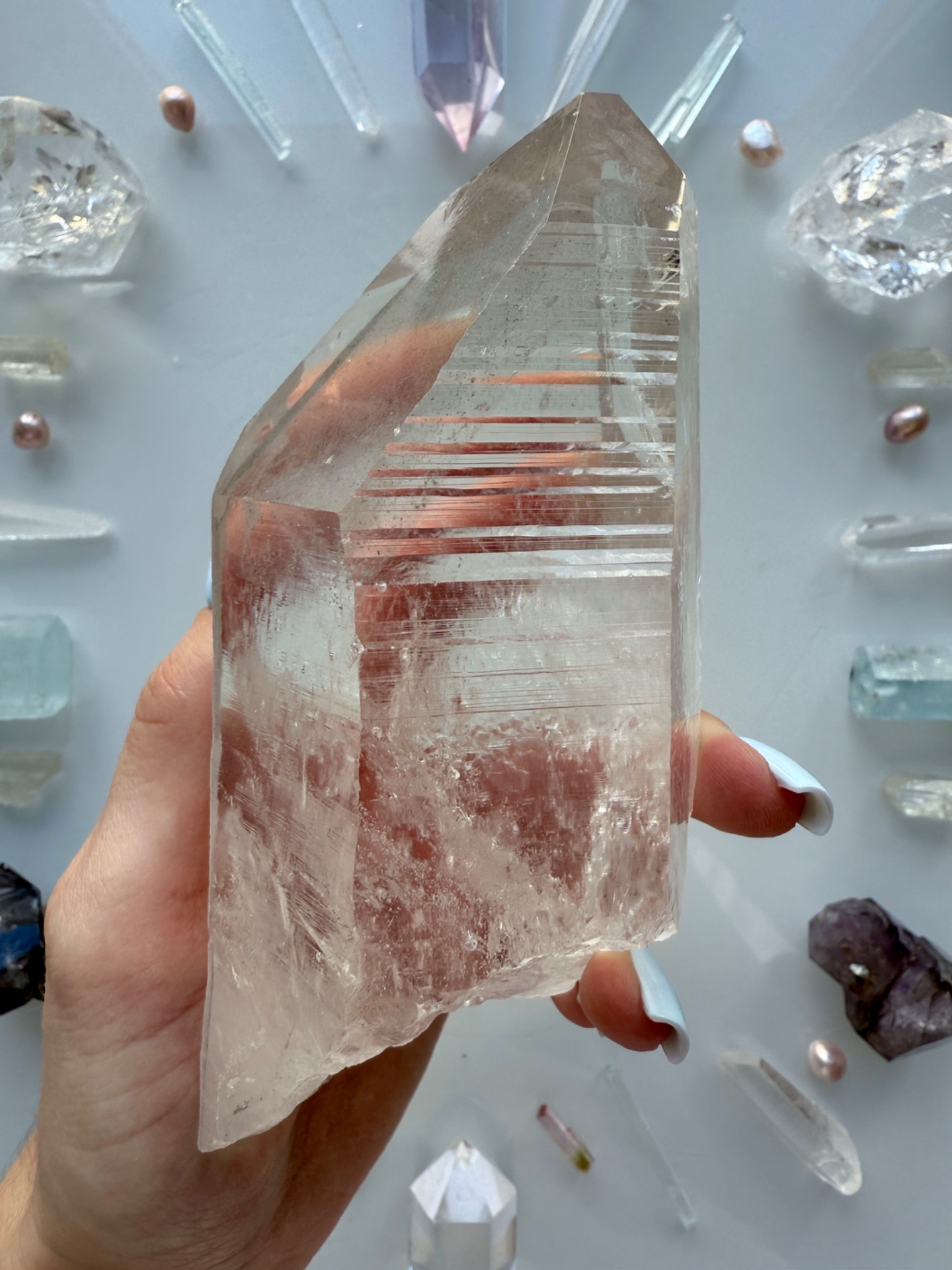 Výjimečný a vzácný black fantom, který kopíruje energeticky krystal a můžete ho vnímat jako černý krystal v bílém krystalu. Atlantská vrstva chráněná vrstvou Lemurskou. Aby vše mohlo jít přes srdce a zároveň to bylo vše chráněné.