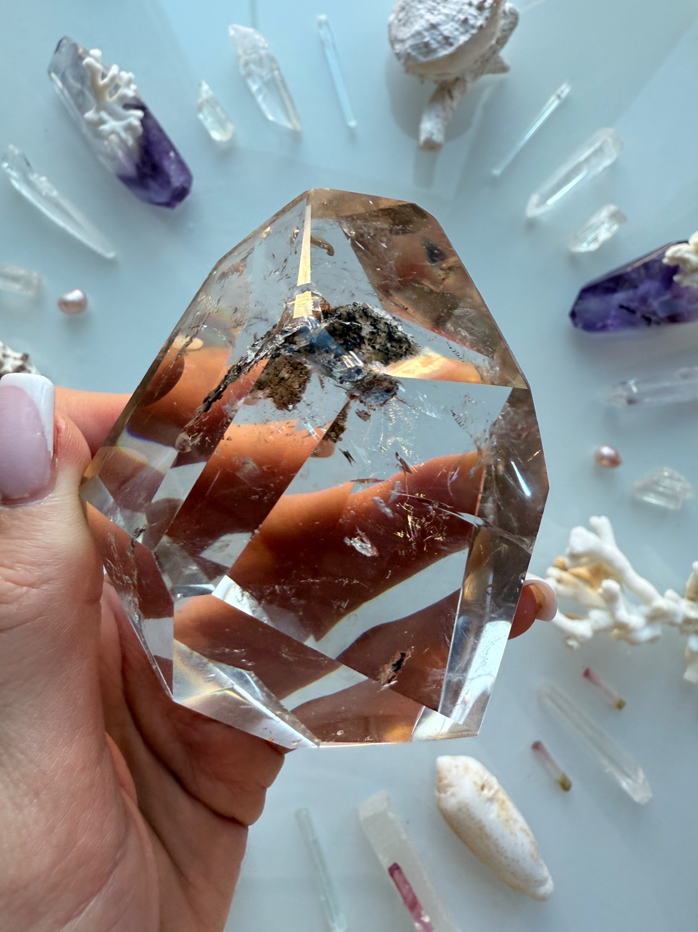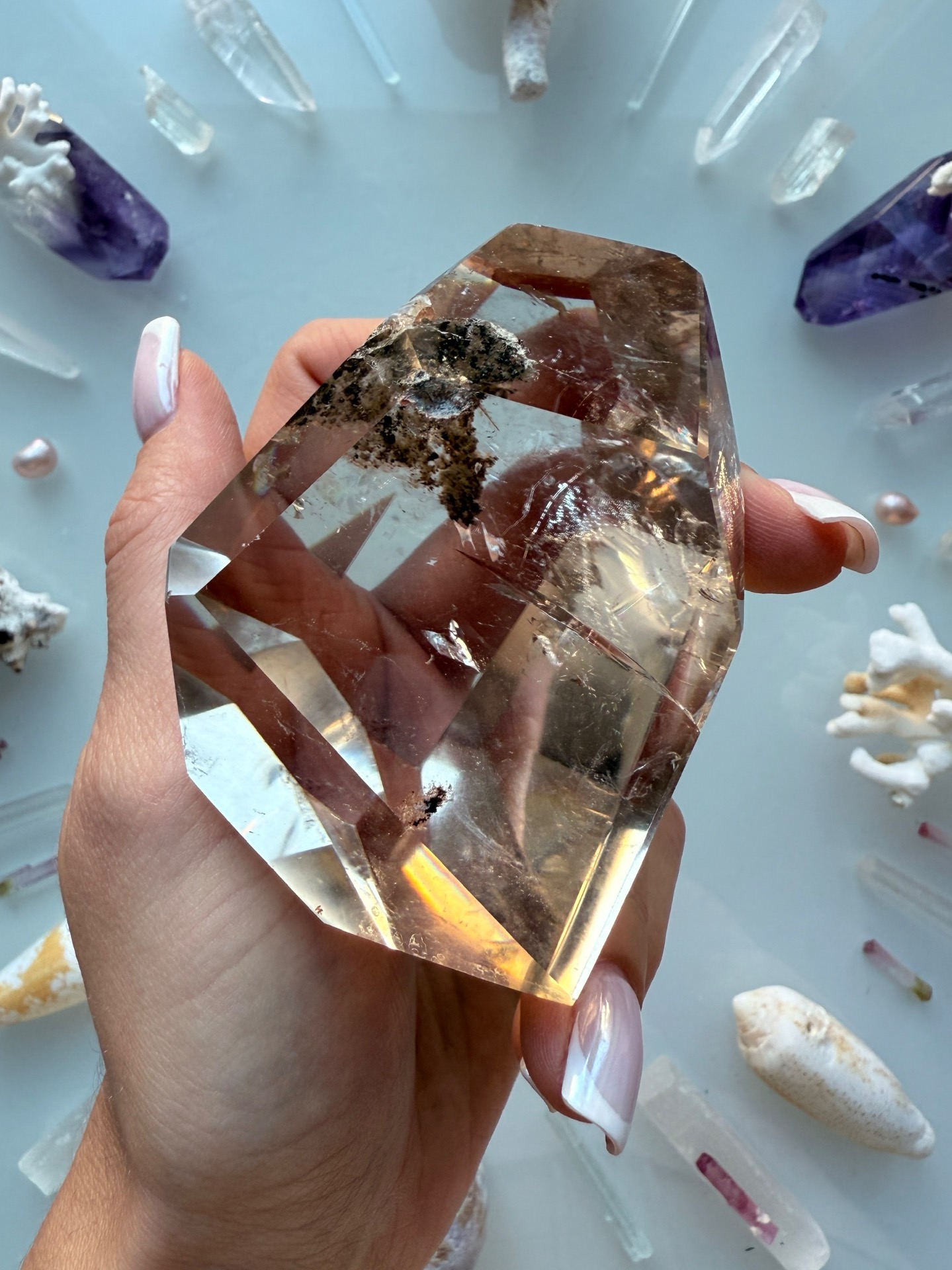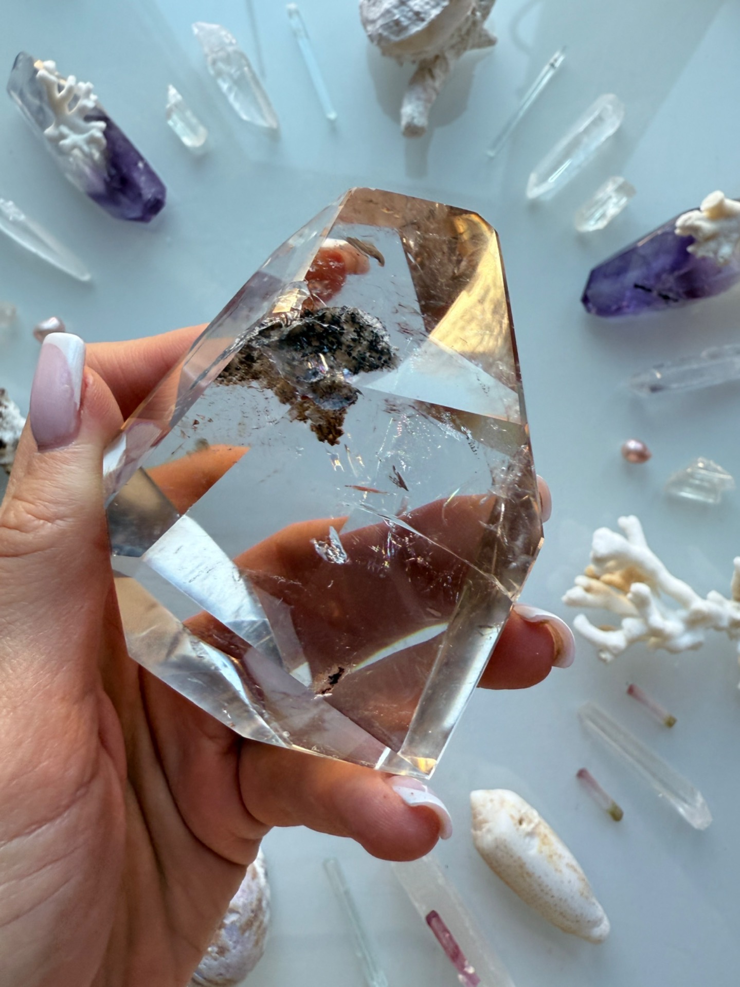 Tento krystal pomáhá v přijímání těchto vysokovibračních energií do fyzického těla na mnoha úrovních a zároveň nám zrcadlí diamantovou čistotu, který nám pomáhá v očištění se od všeho, co není naše.
