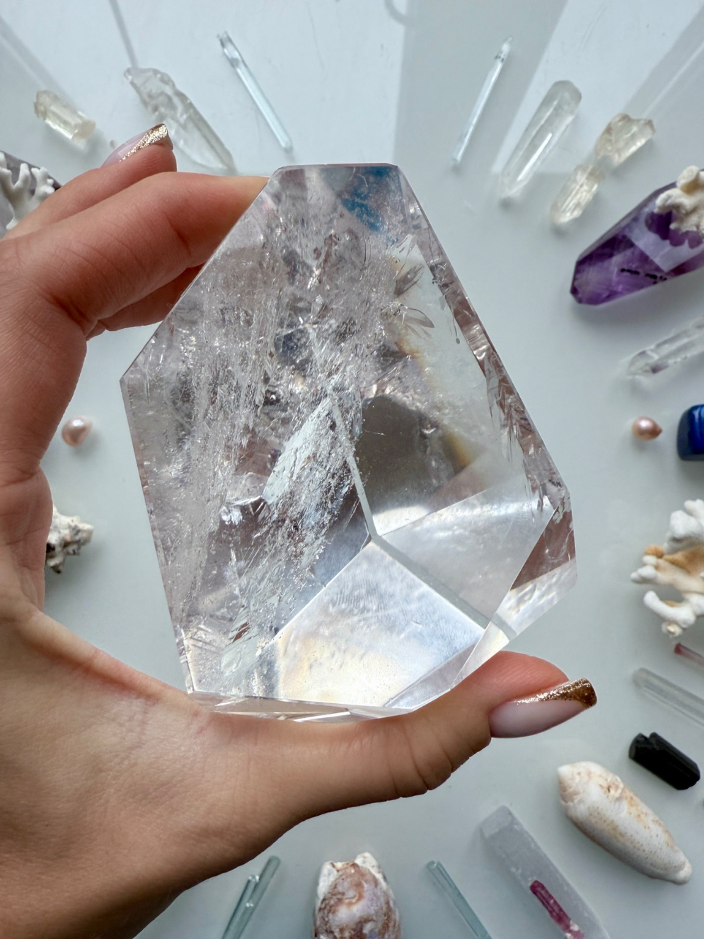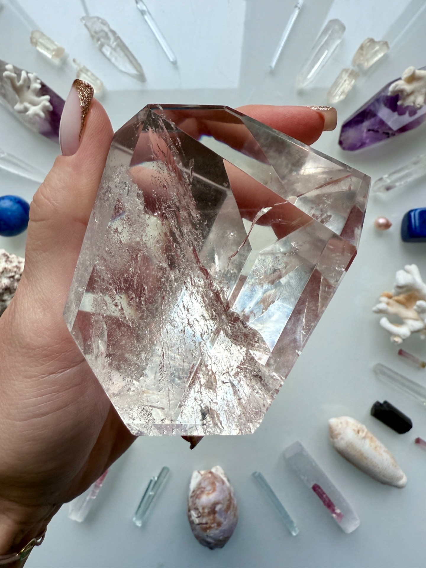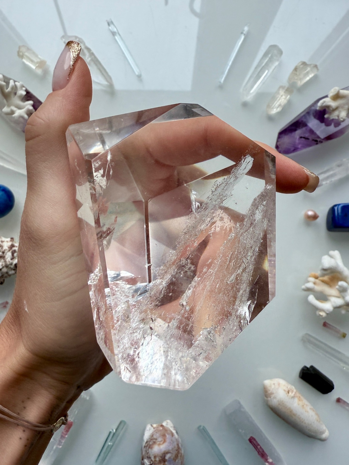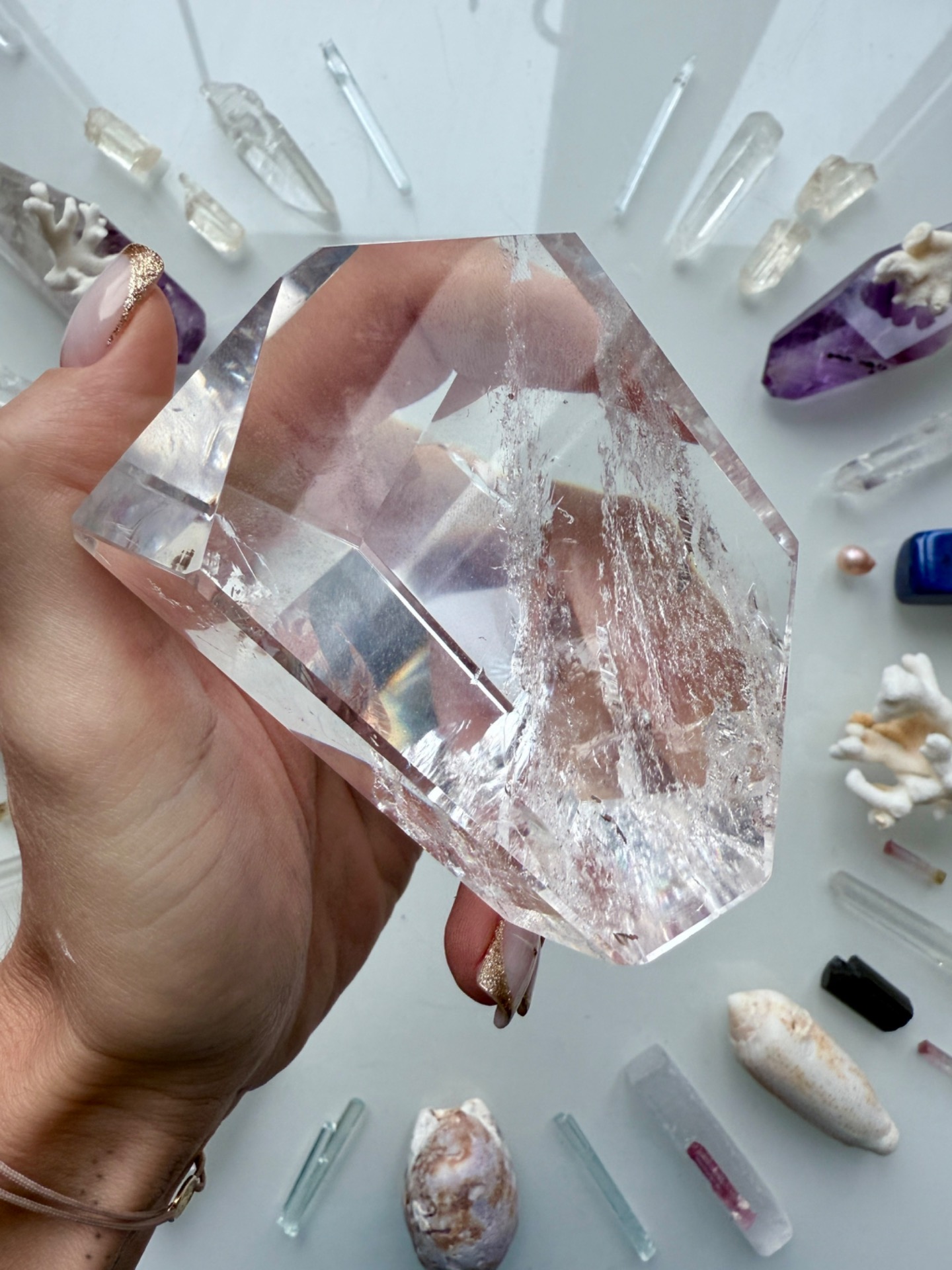Tento krystal pomáhá v přijímání těchto vysokovibračních energií do fyzického těla na mnoha úrovních a zároveň nám zrcadlí diamantovou čistotu, který nám pomáhá v očištění se od všeho, co není naše. Očištění se od toho, co je hluboko v nás zraněné nebo nepřijaté.