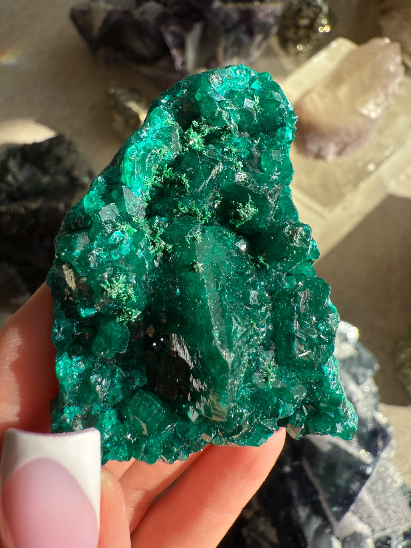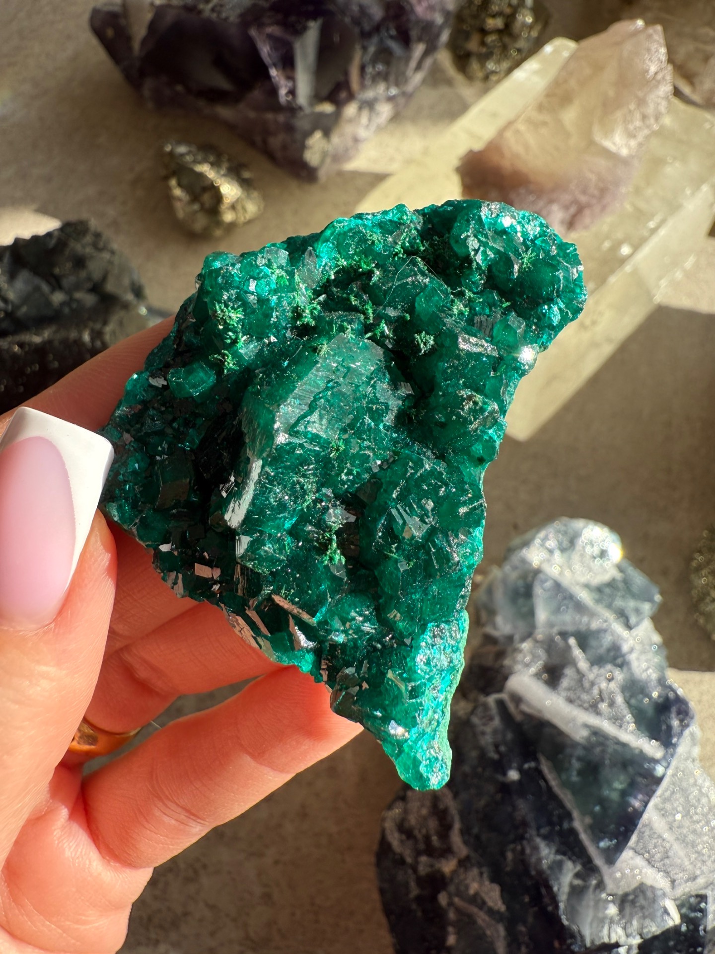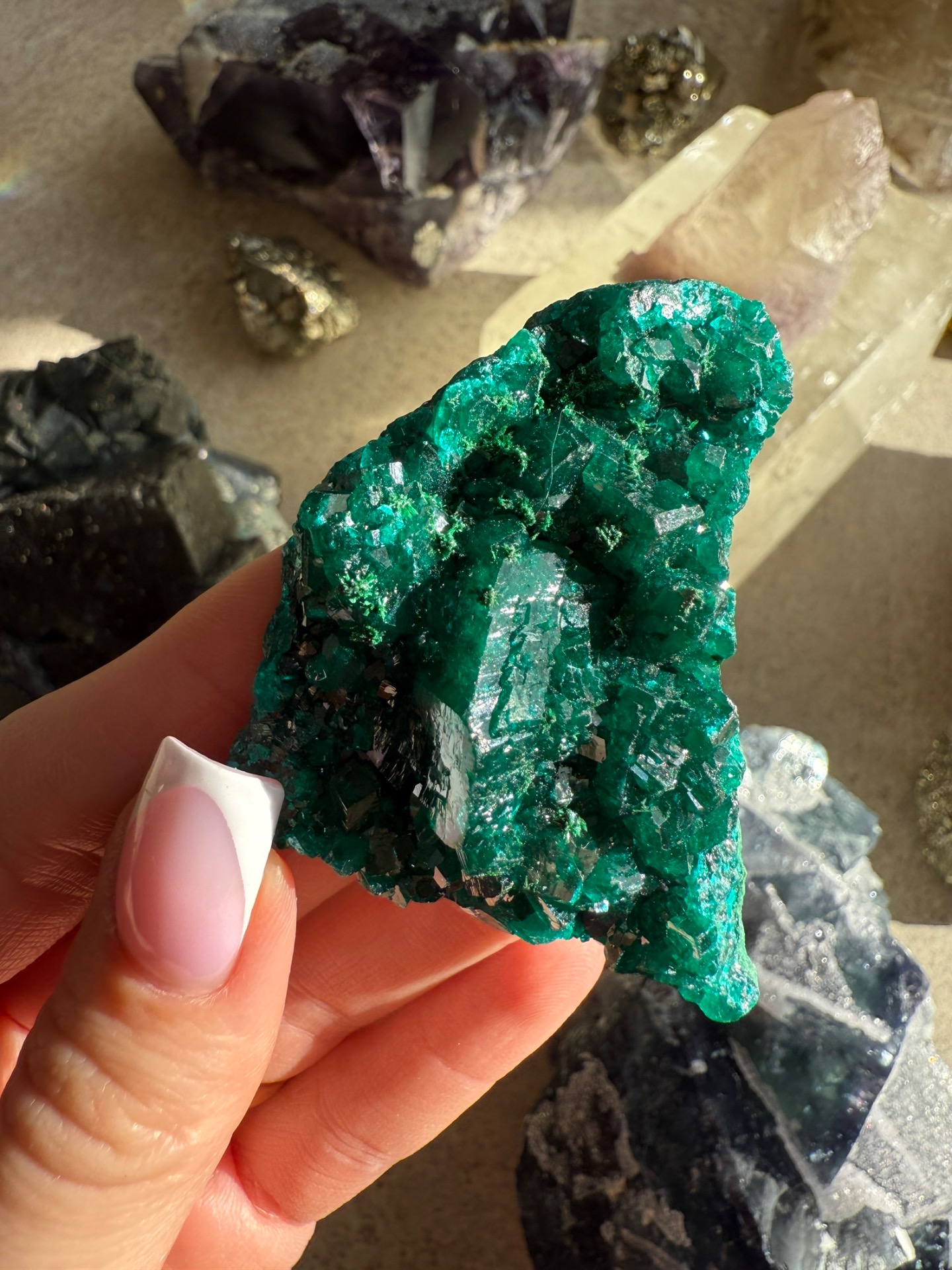 Dioptas je úžasný a nádherný minerál, který vypadá až uměle neboť má sytou zelenou barvu a krásnou krystalizaci. Ale je to přírodní krystal, který takto vydala matka Země.
