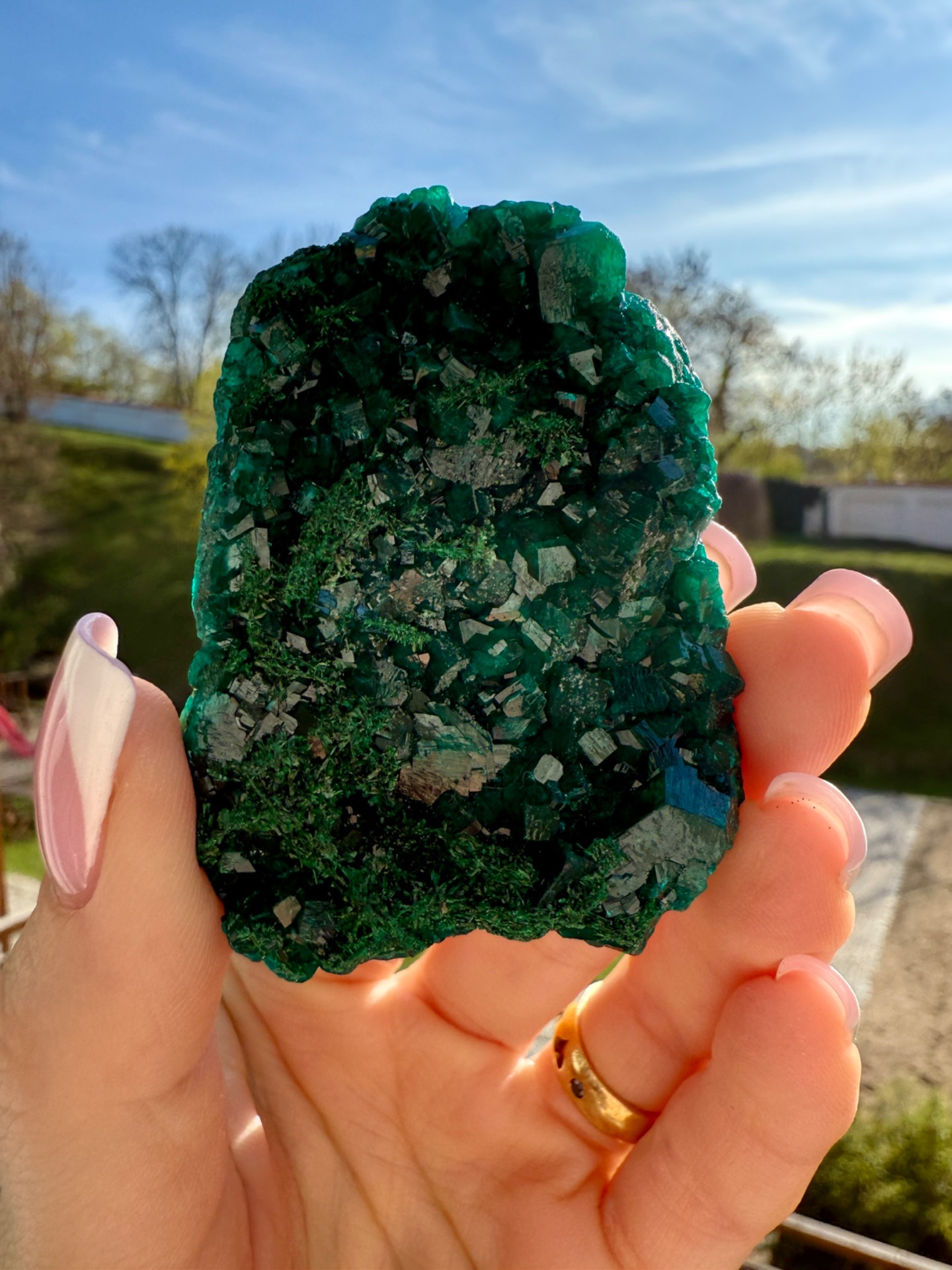 Tyto kousky jsou unikátní, neboť jsou to křemičitany mědi, zkrátka je to měď uspořádaná v krystalické mřížce. Takže obsahují velké množství mědi, která vodí a zprůchodňuje energie. Je to jeden z velmi silných krystalů na léčení starých emocí, vzorců, které v sobě neseme, jde přímo do Jádra.