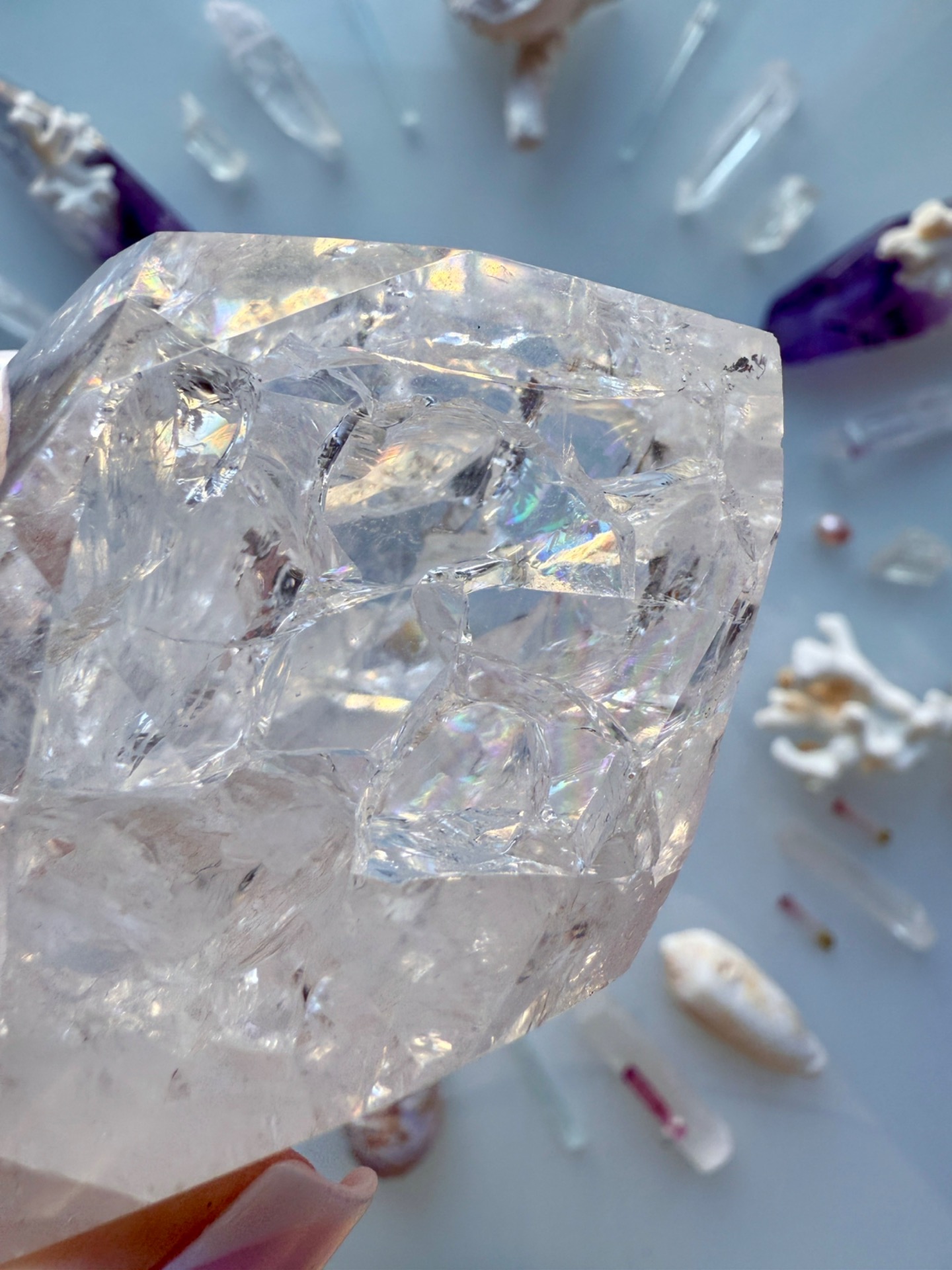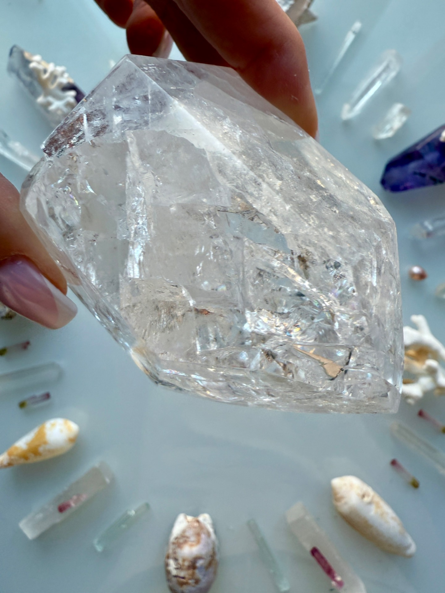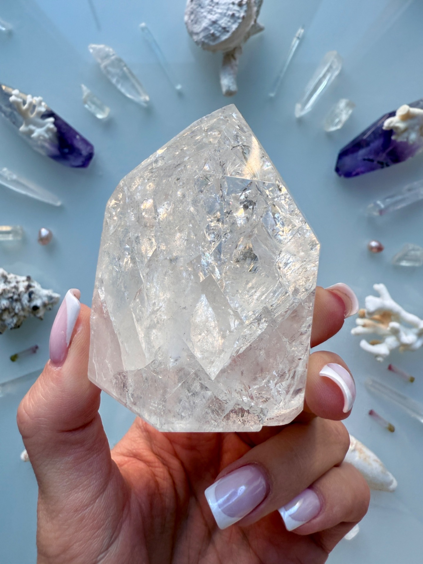 nádherný ŽIVÝ křišťál má velmi novou energii, není to starý krystal, do prostoru vysílá a vyzařuje Diamantové kódy, kterými můžete navibrovávat i vodu a další energie. (mastičky, sprejíky, krémy)