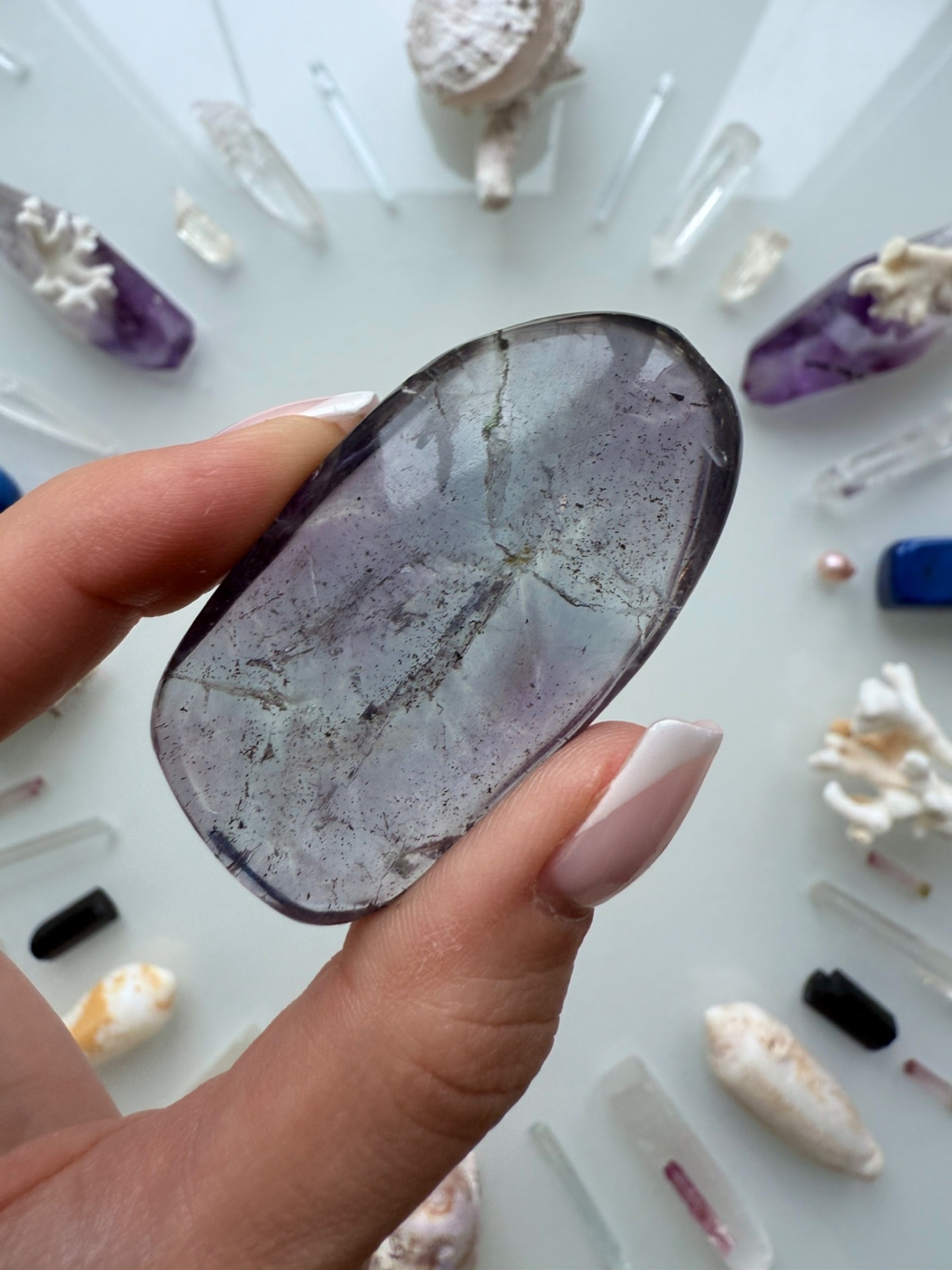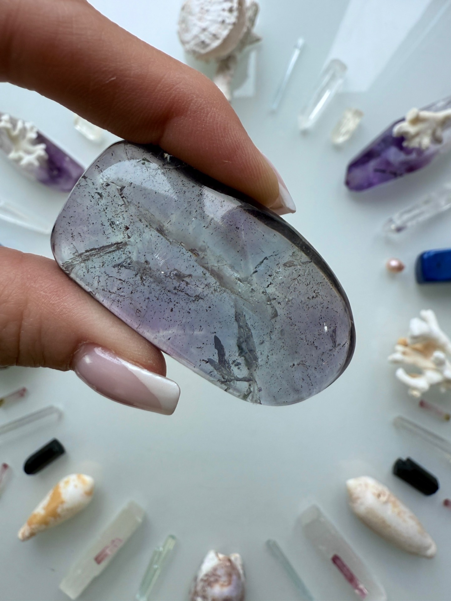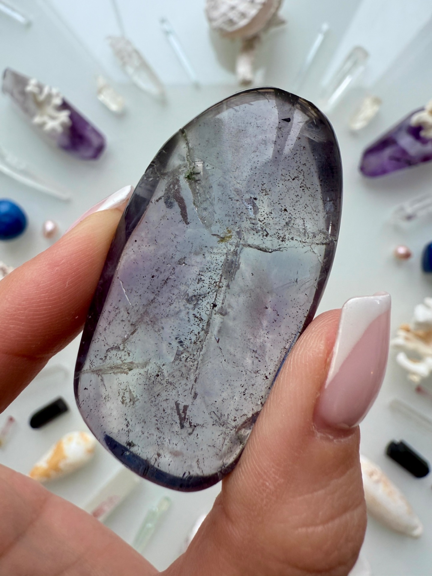 Nádherný vysokovibrační fluorit z Afghánistánu, jenž je v propojené fialové a modré barvy.