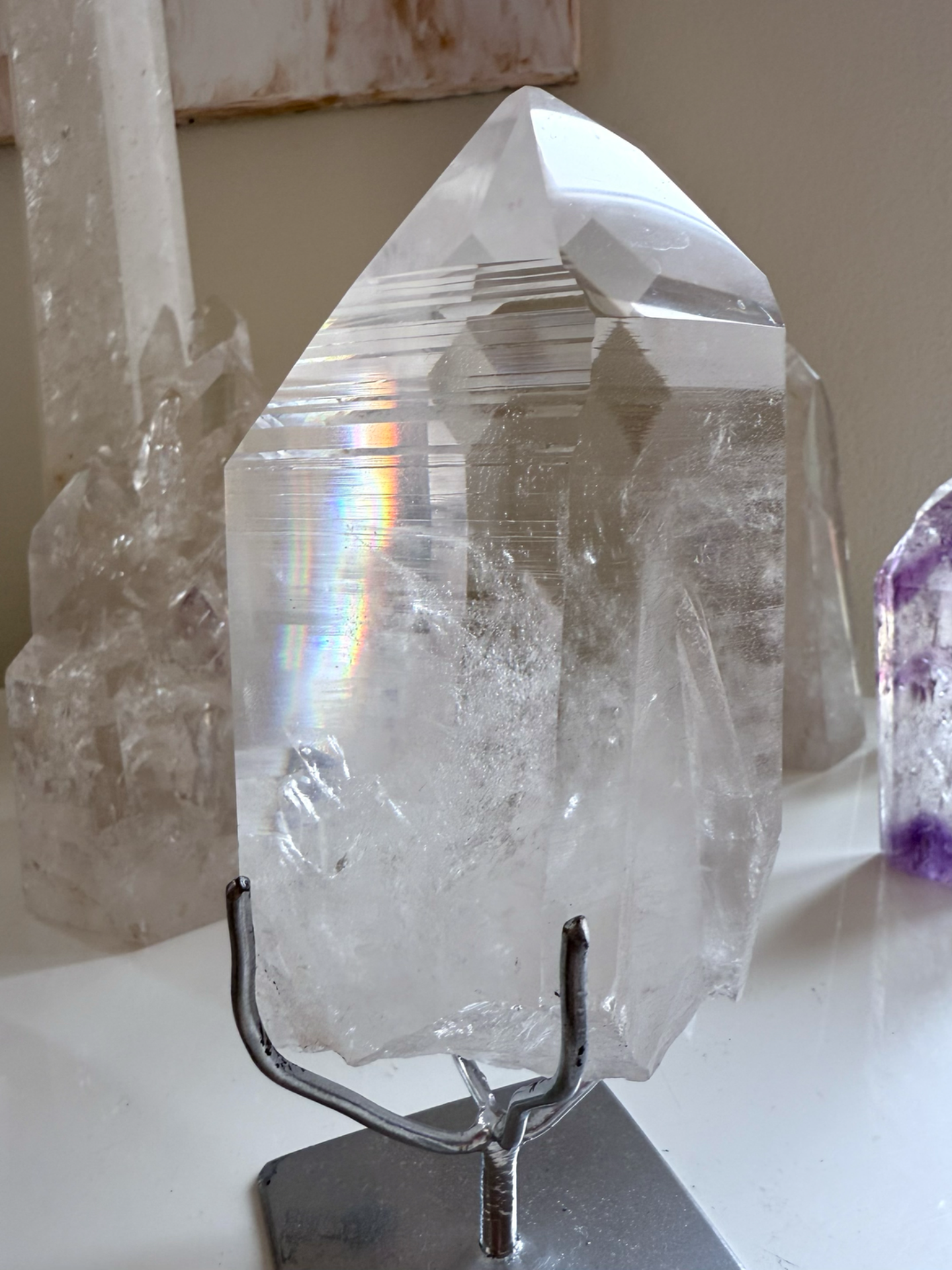 Ve středu je křišťálová mísa, kterou stráží kobry, ve které jsou minerály a na nich ametystová aktivační pečeť. Především je však naplněná posvátnou vodou z Osirionu, 💧místa, kde byl poprvé nalezen Květ Života, kde jsem tuto vodu byla vedena již před rokem dovézt, aby až dnes nadešla chvíle tohoto předání. Toto místo není lidem běžně přístupné a tato voda je aktivační pamětí celé geometrie.