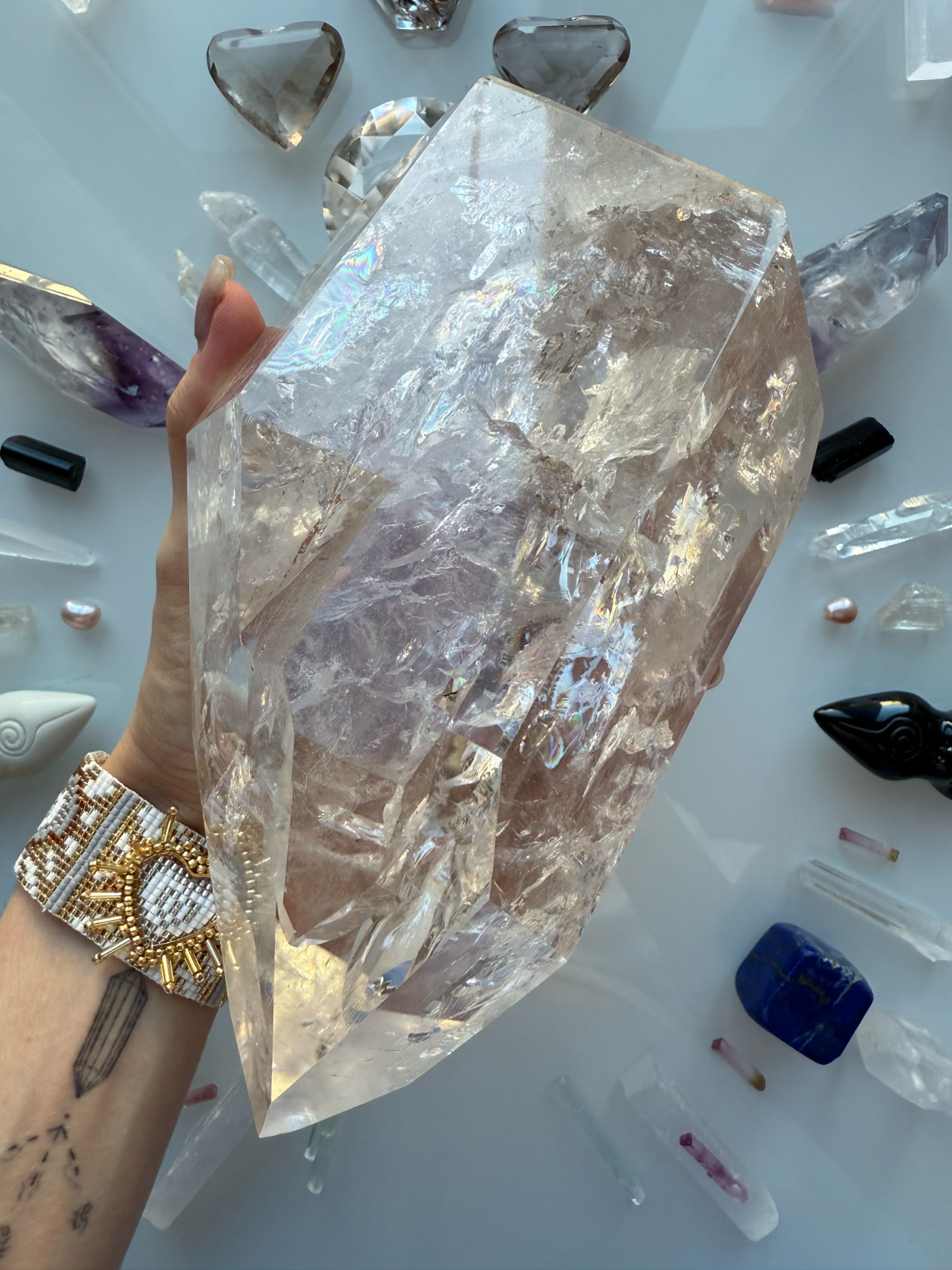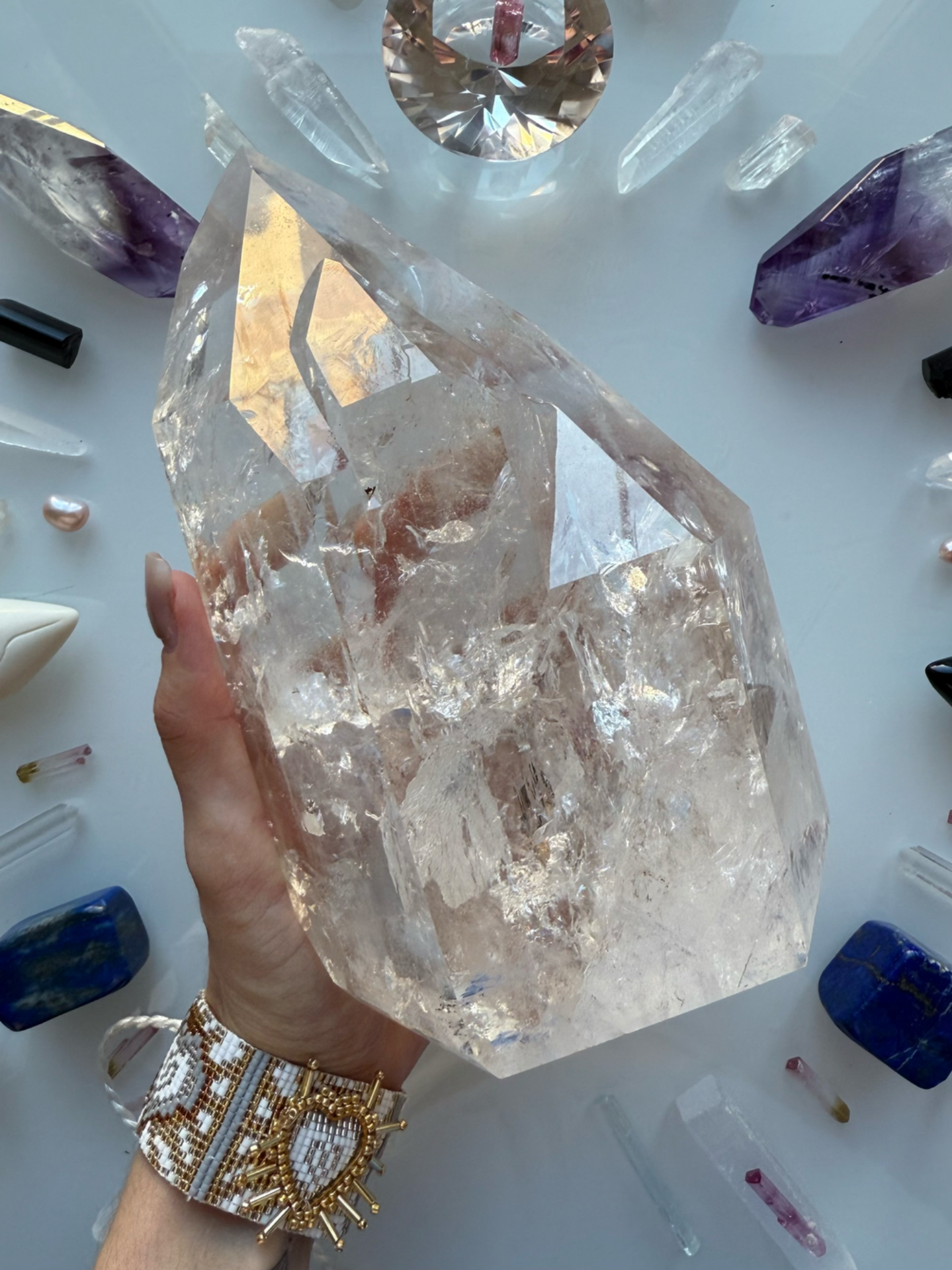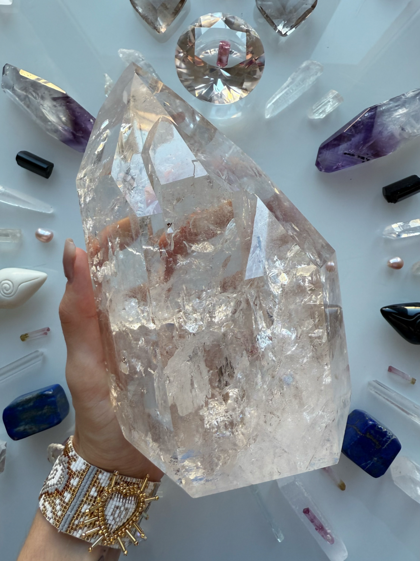 Ve středu je křišťálová mísa, kterou stráží kobry, ve které jsou minerály a na nich ametystová aktivační pečeť. Především je však naplněná posvátnou vodou z Osirionu, 💧místa, kde byl poprvé nalezen Květ Života, kde jsem tuto vodu byla vedena již před rokem dovézt, aby až dnes nadešla chvíle tohoto předání. Toto místo není lidem běžně přístupné a tato voda je aktivační pamětí celé geometrie.