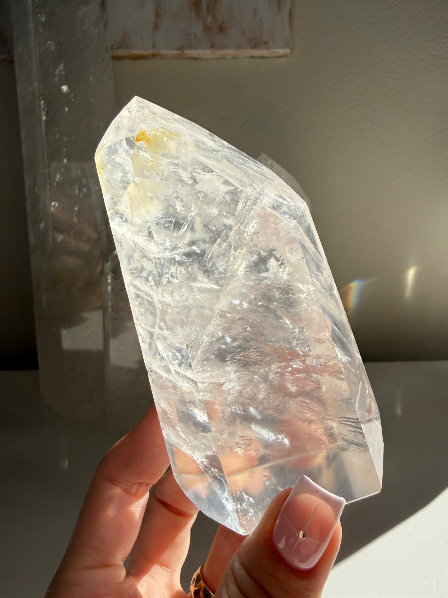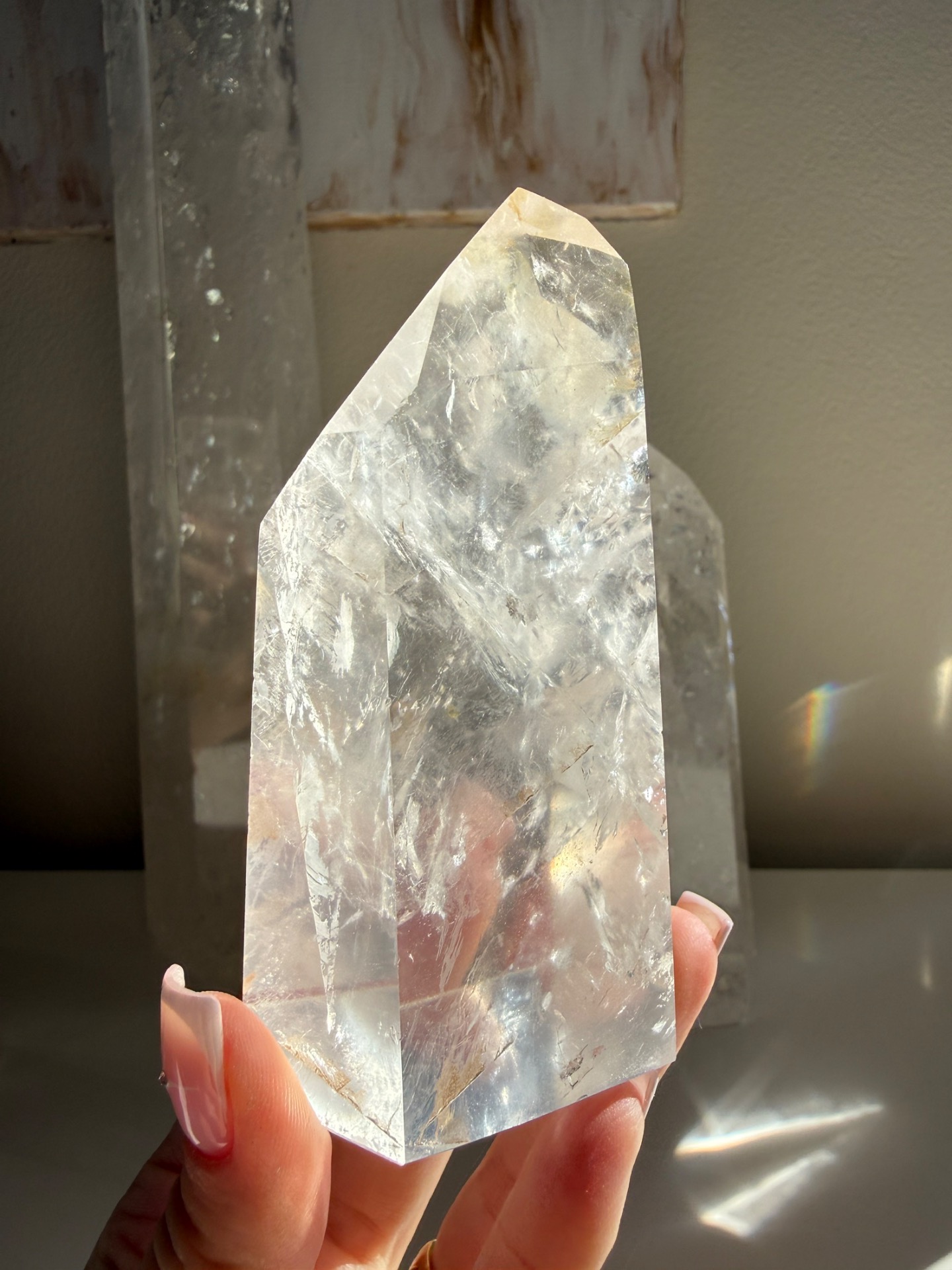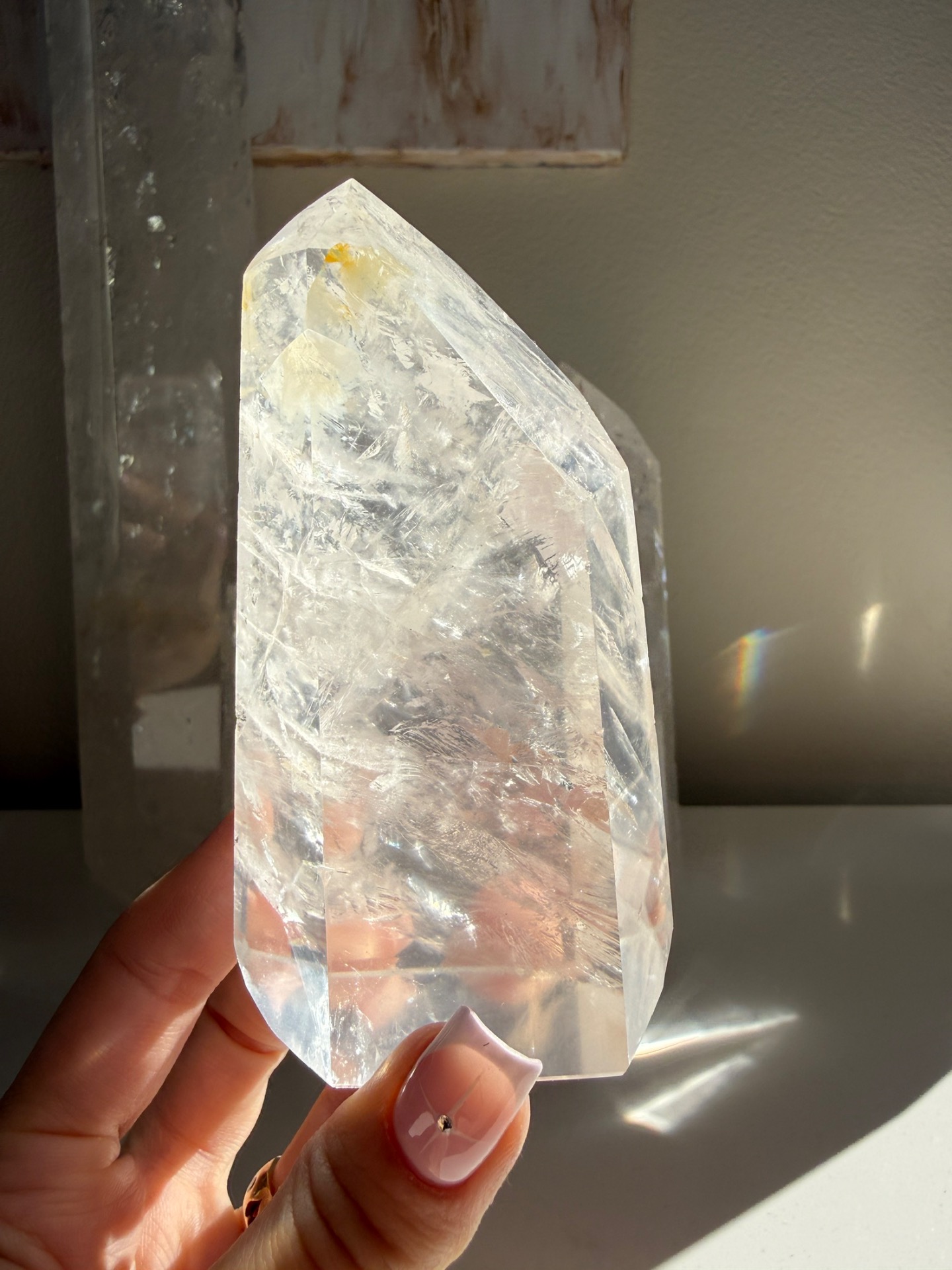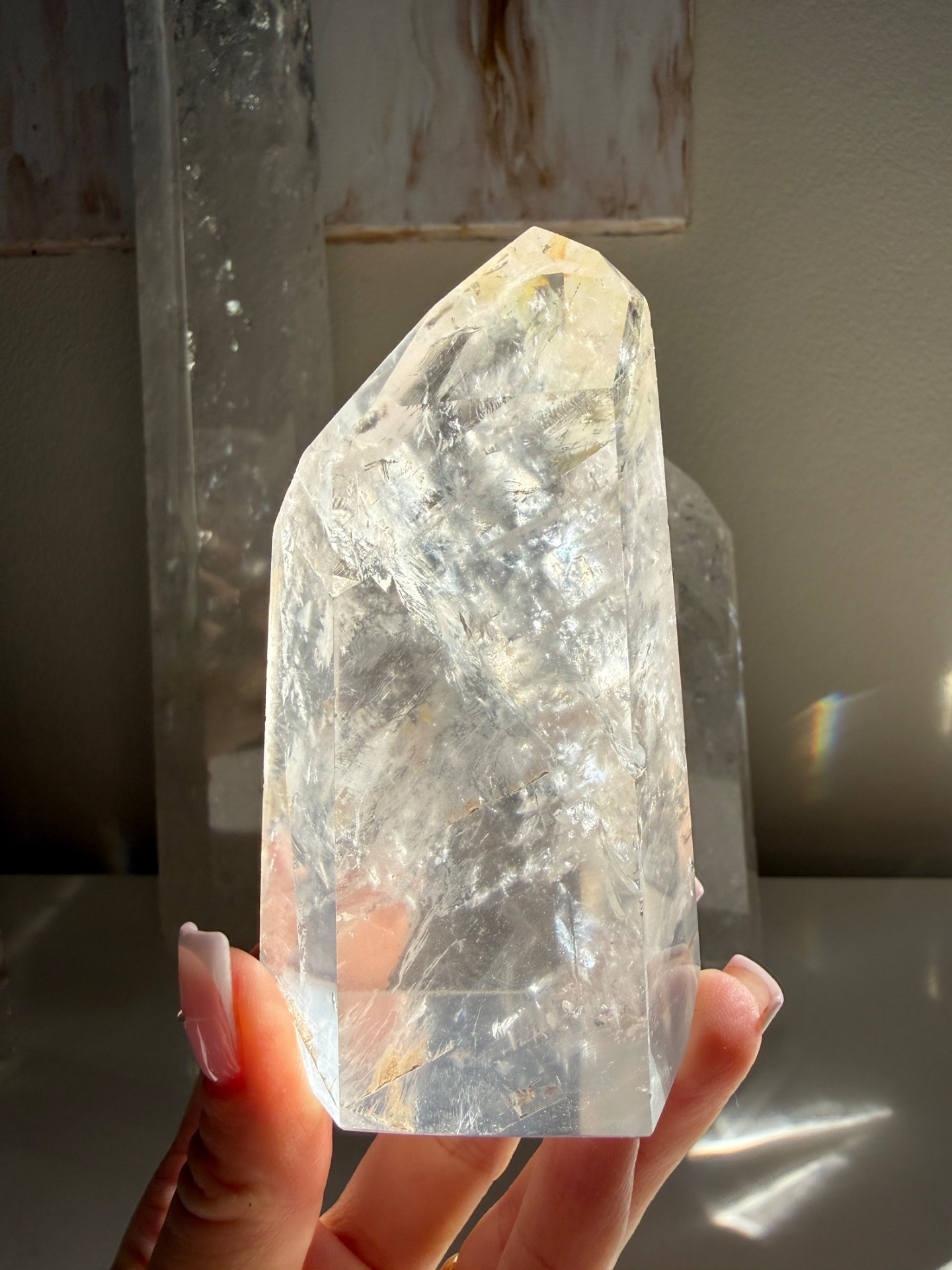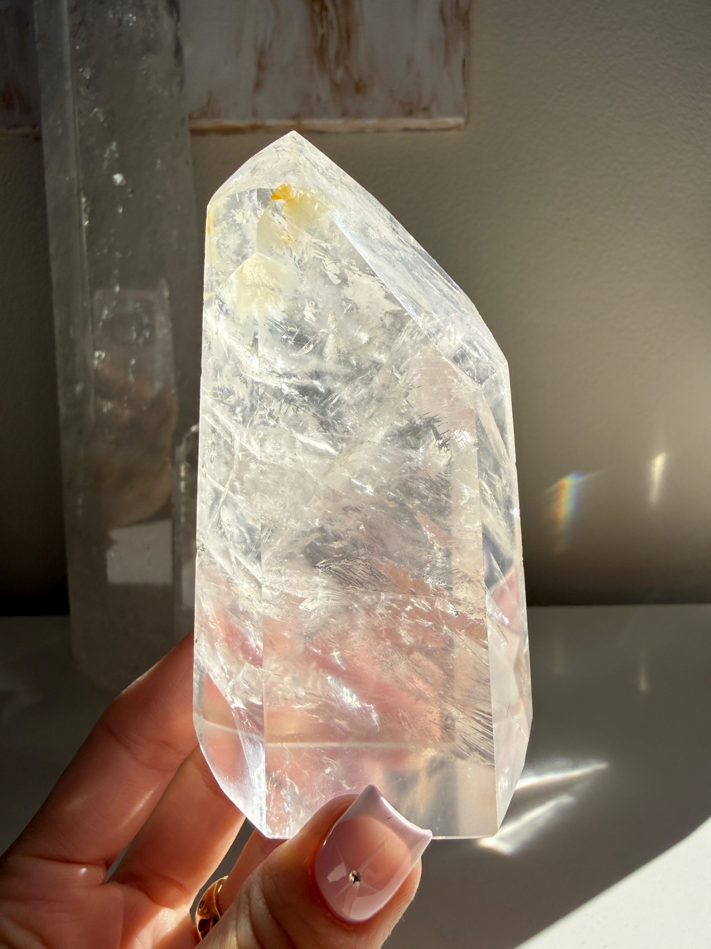 Nádherný křišťál jako obelisk krystalického světla, který je propojený s bytostmi a sférou ze souhvězdí labutě, což je sféra krásy, jemnosti, něhy, čistoty, propojení a bezpodmínečné lásky.