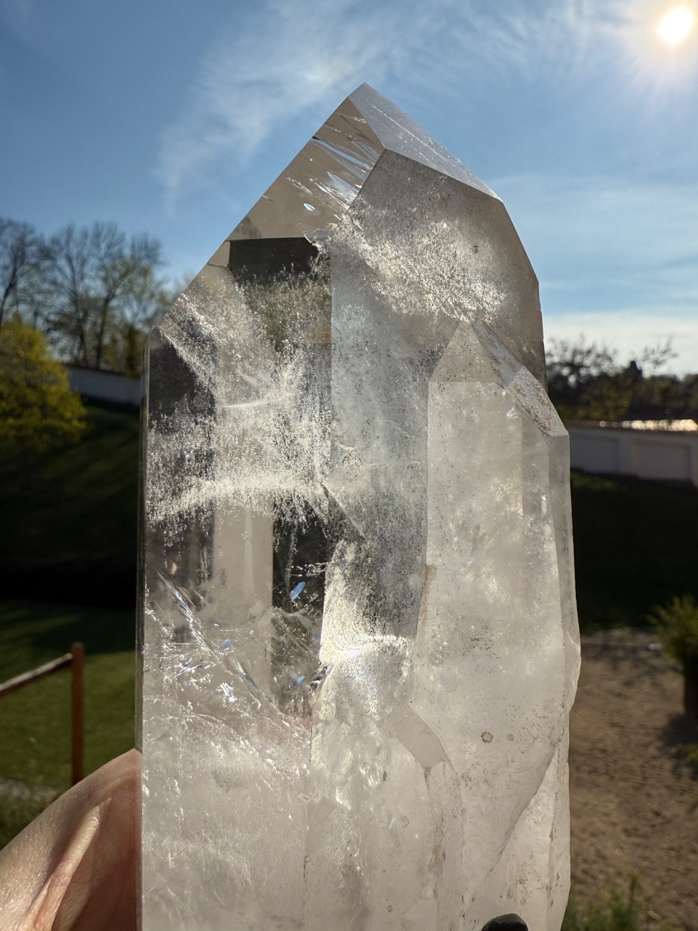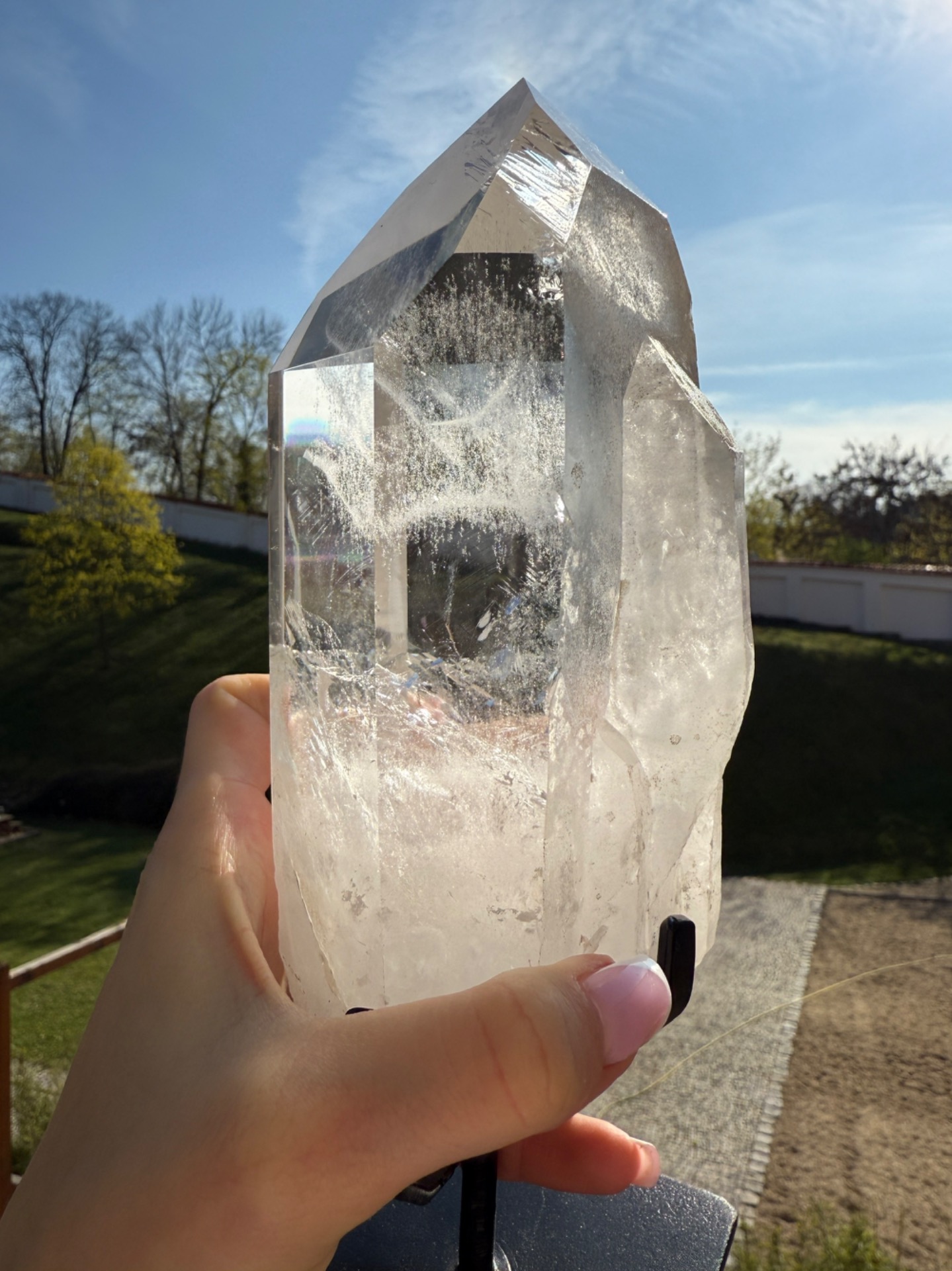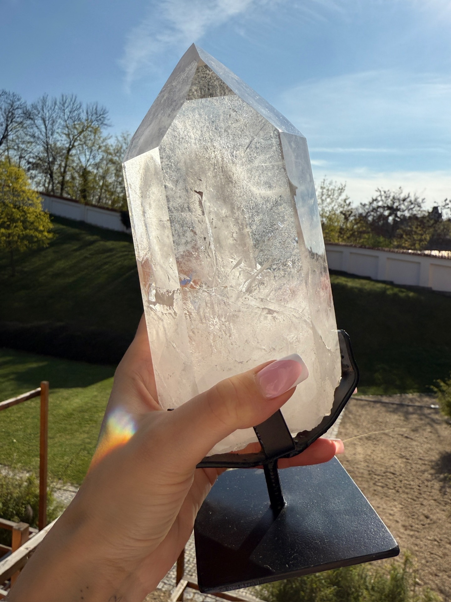 Nádherný mistrovský křišťál, ke kterému je zezadu připojen přímo uprostřed další malý křišťál jako otisk. Tento křišťál je vysílačem, skrze který světlo získává směr. Směřuje, ukotvuje paprsek a vědomí tam, kde má být přijat.