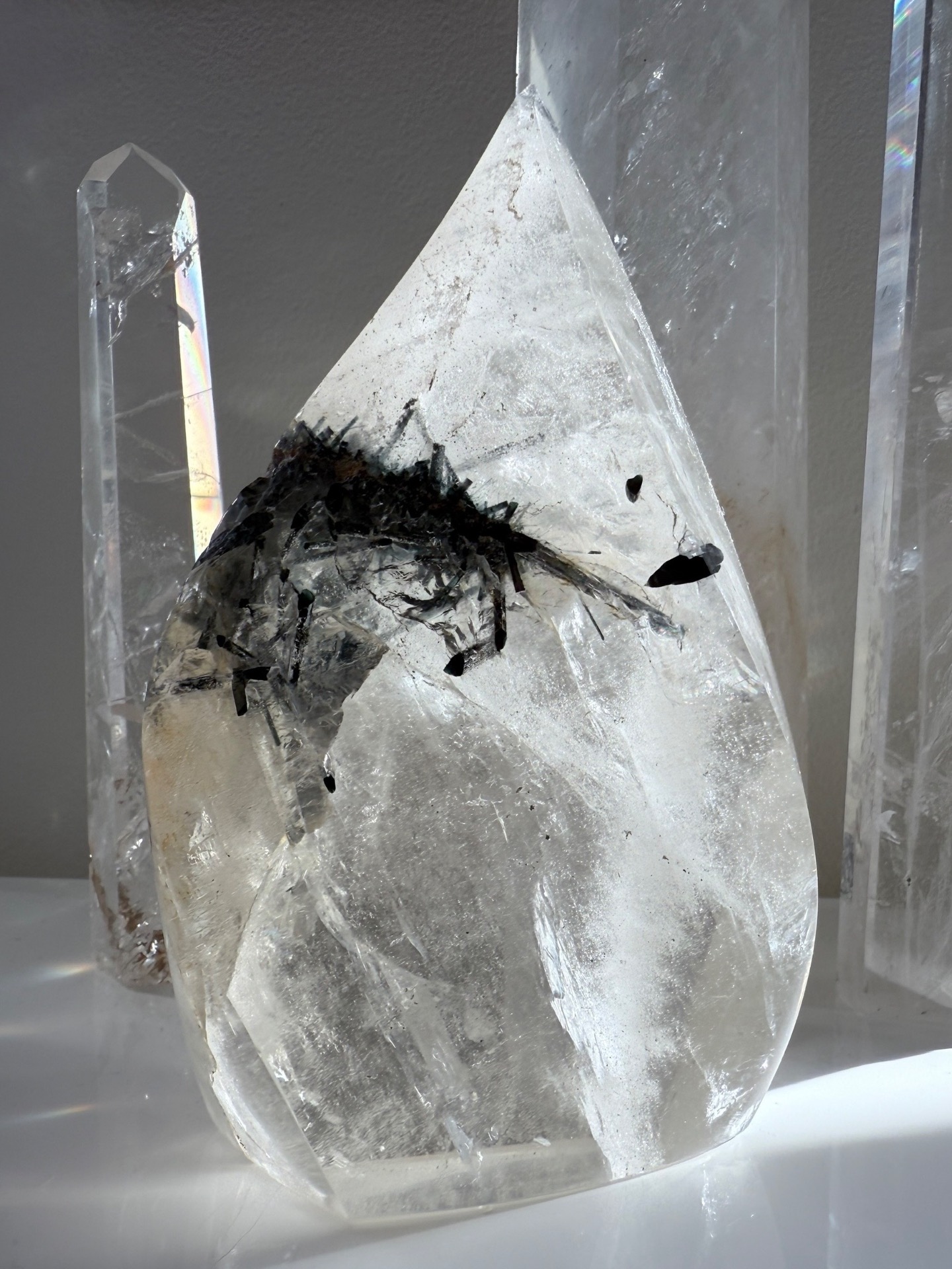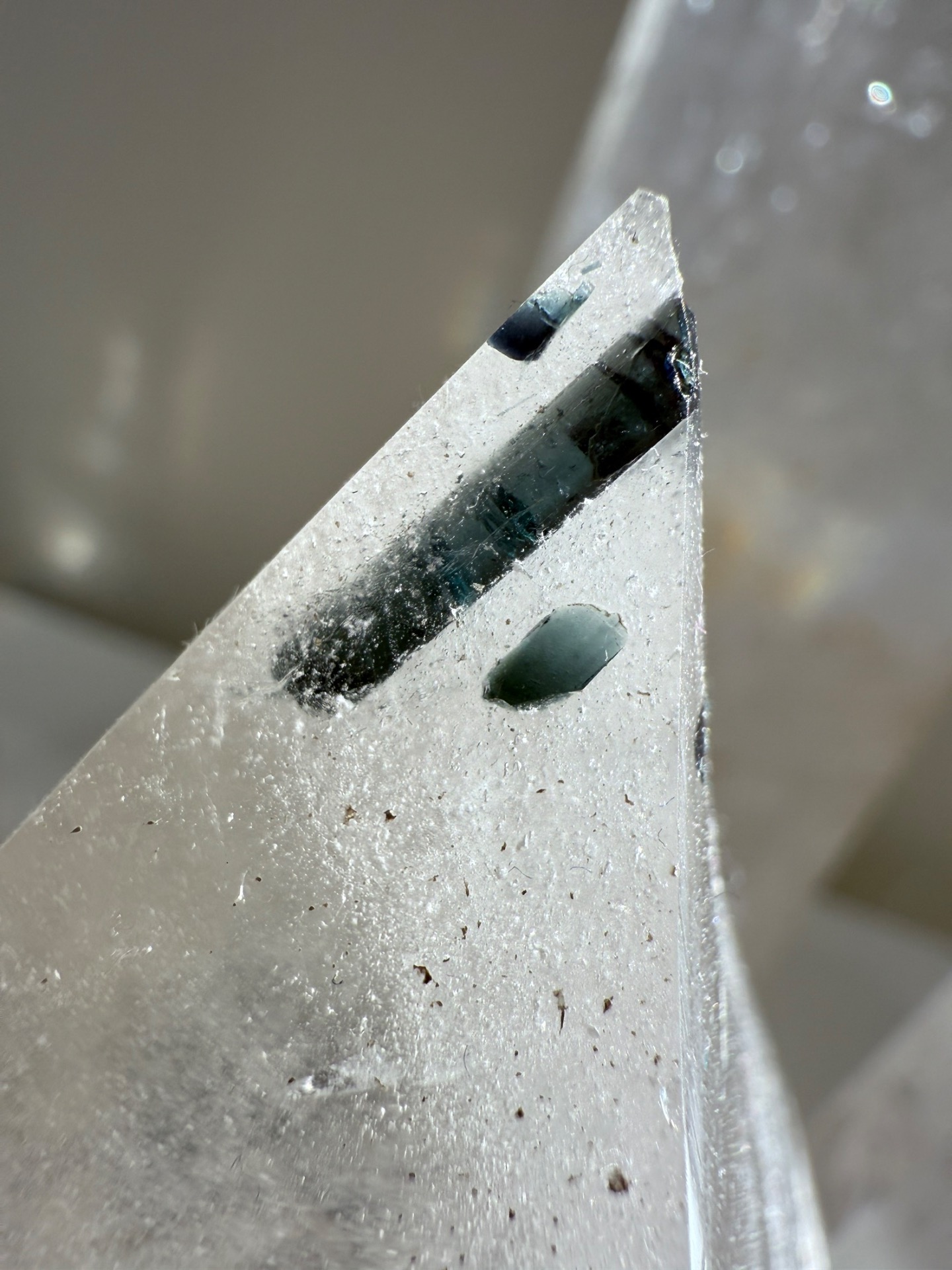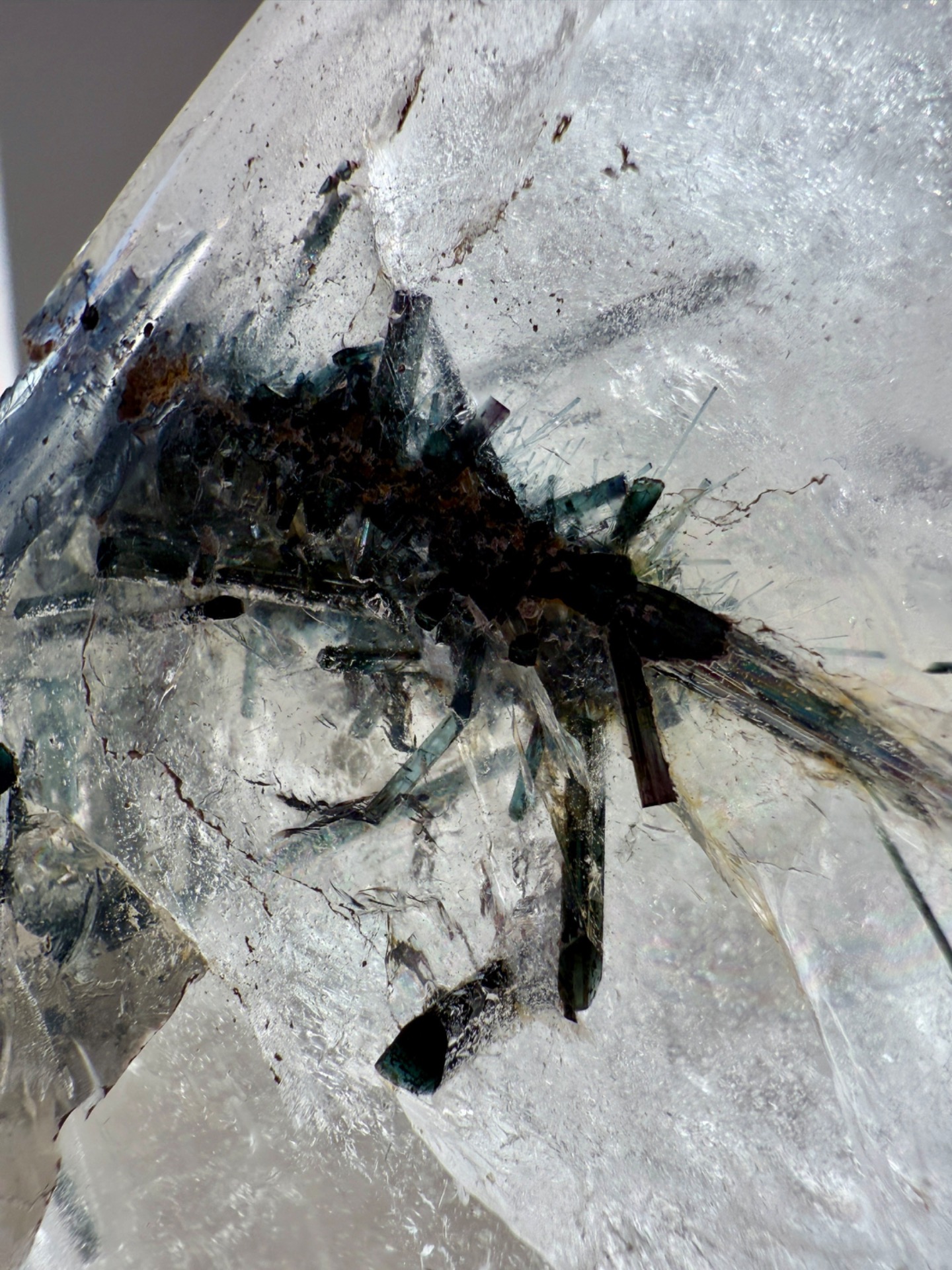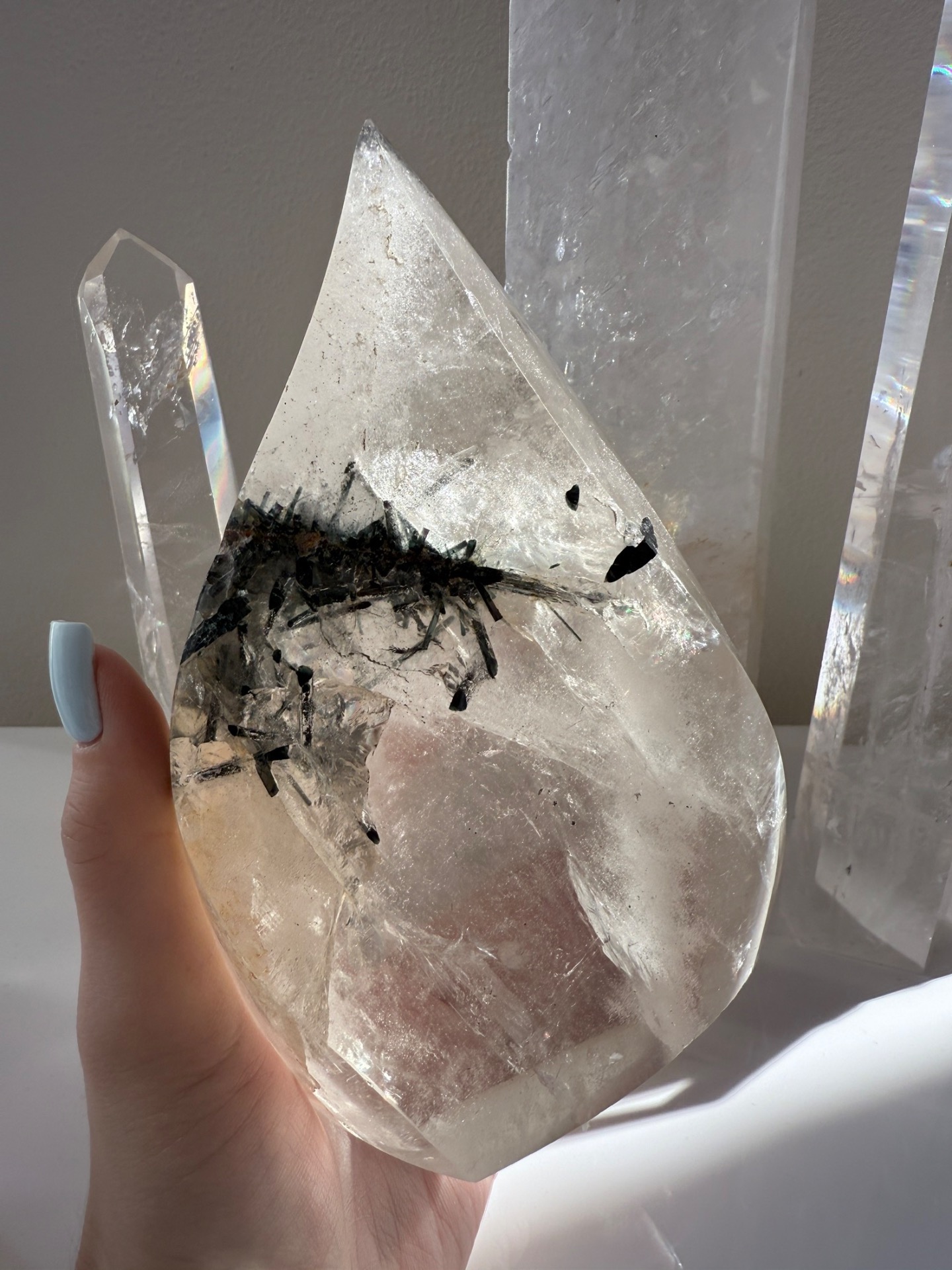 Možná pro mnohé nenápadný krystal, avšak energeticky je velmi zajímavý a působící v poli a tak jsem byla vedena jej vzít. Až doma, když se krystal prosvítil, tak jsem uviděla, že to není jen černý turmalín, ale že nese až modré paprsky...což je síla !