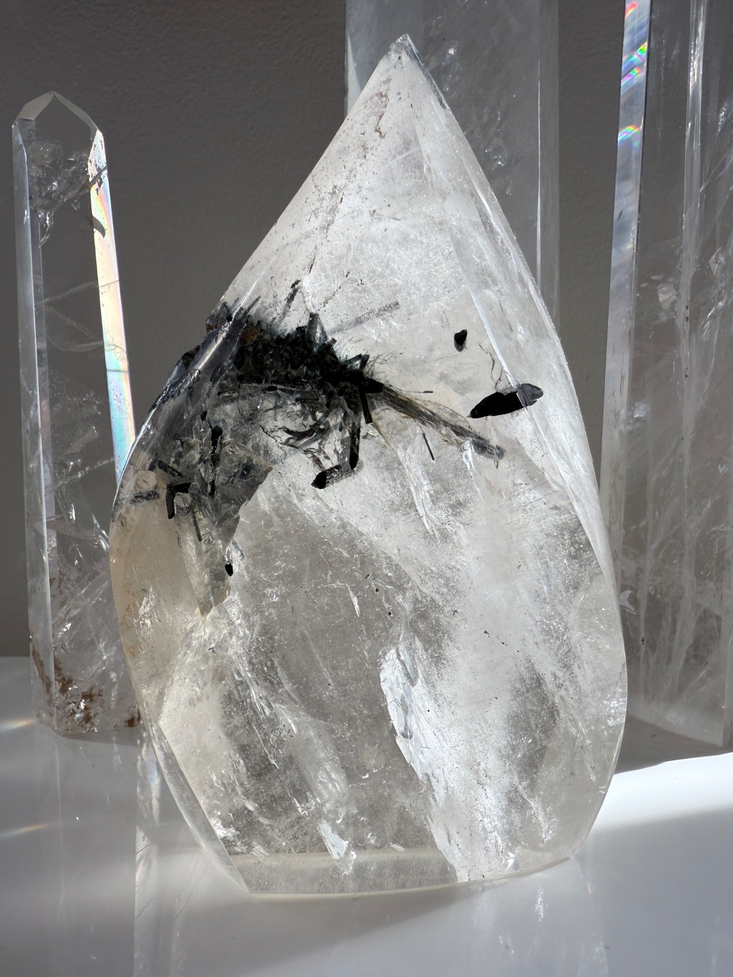 Je to křišťál jako bílý plamen světla, který v sobě nese původní esenci Světla, kterým prostupuje turmalín, ve kterém se setkává jak světlo, tak hloubka a vědomý směr modré linie.