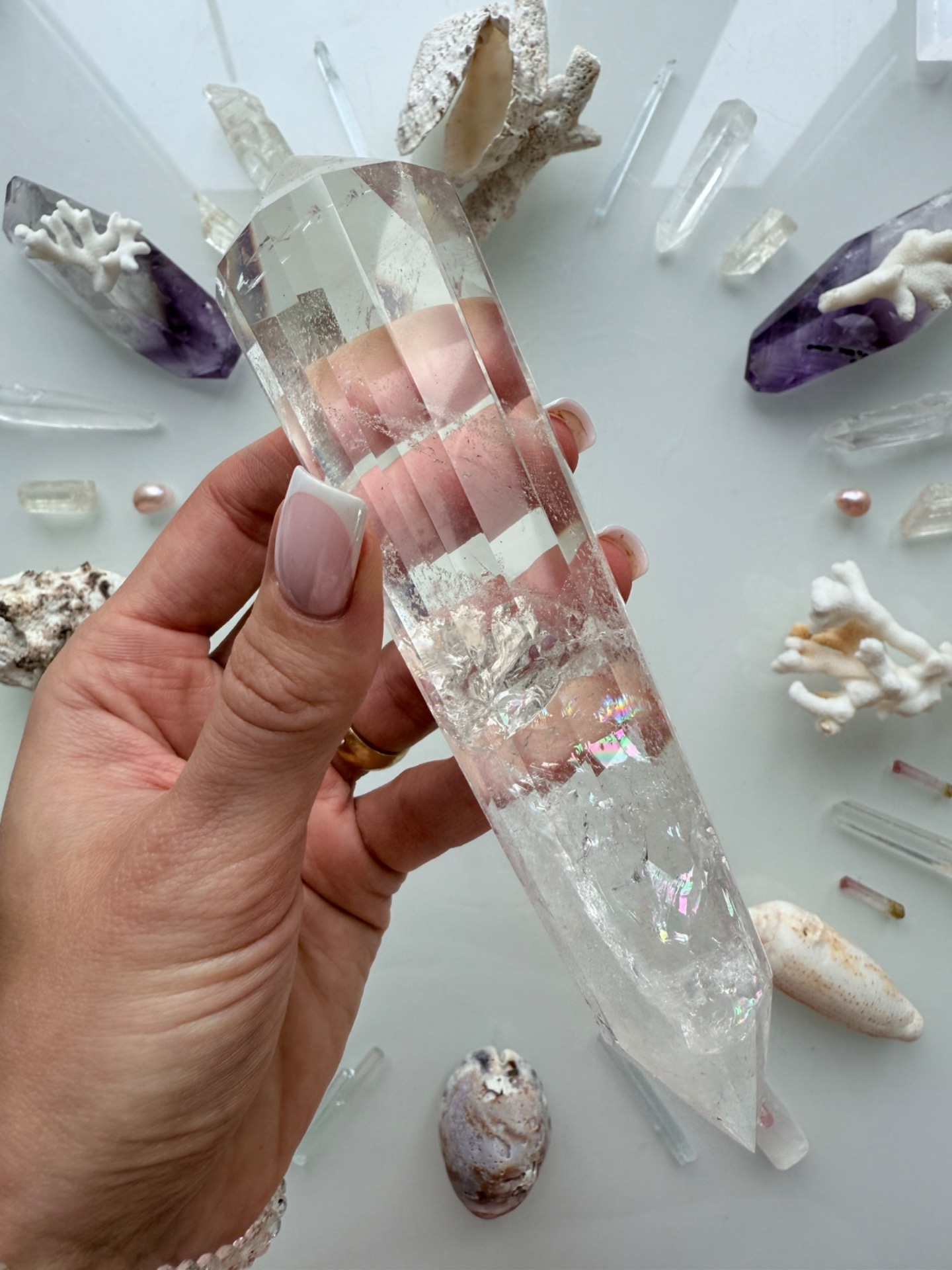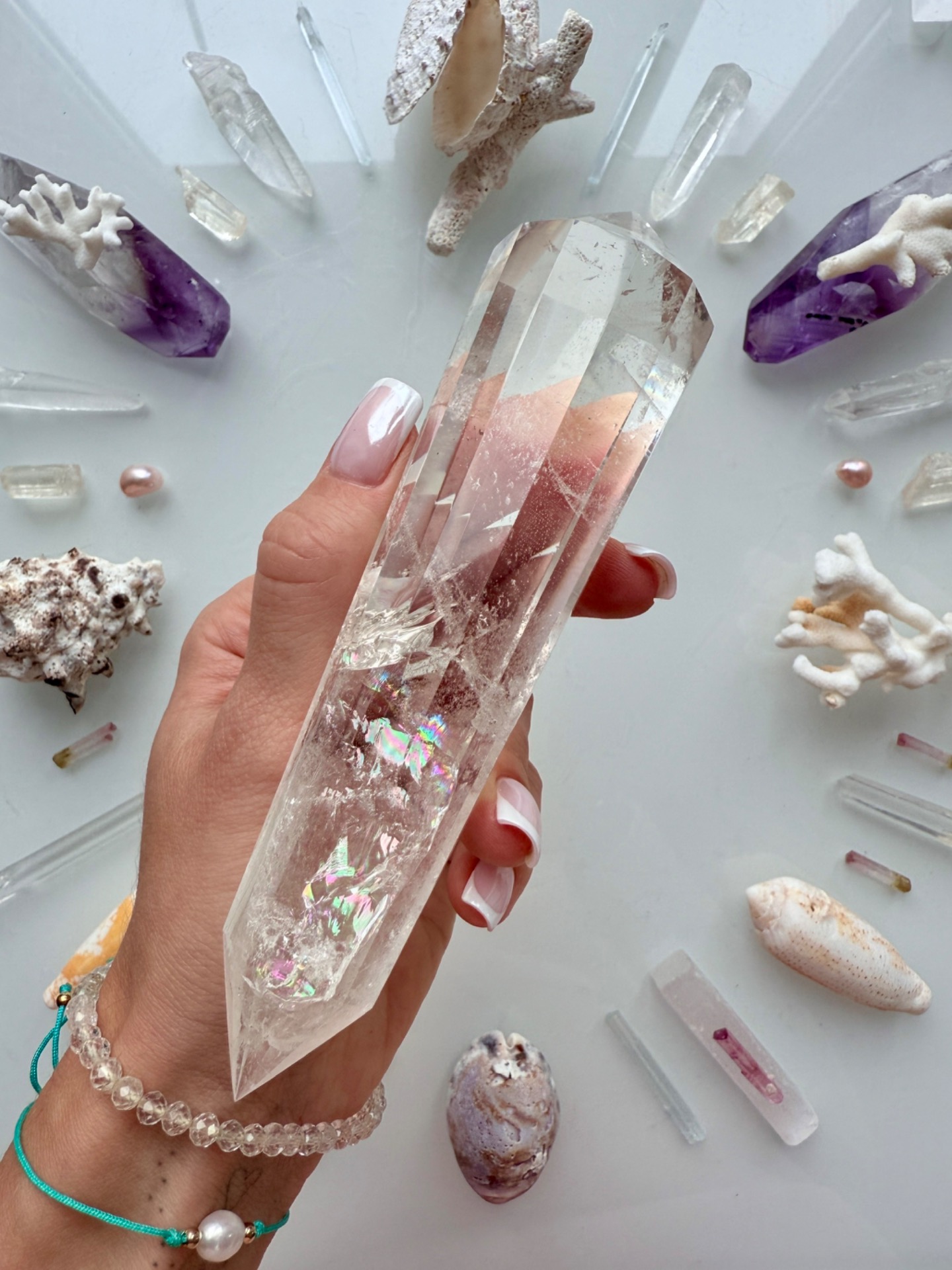 Jeden z křišťálů, který stojí na začátku geometrie, se mnou fyzicky načerpával kódy na Maledivách. Nechal se prostoupit Sluncem, dotkl se vody, sestoupil s námi do hlubin plného života, i do ticha oceánských chrámů.