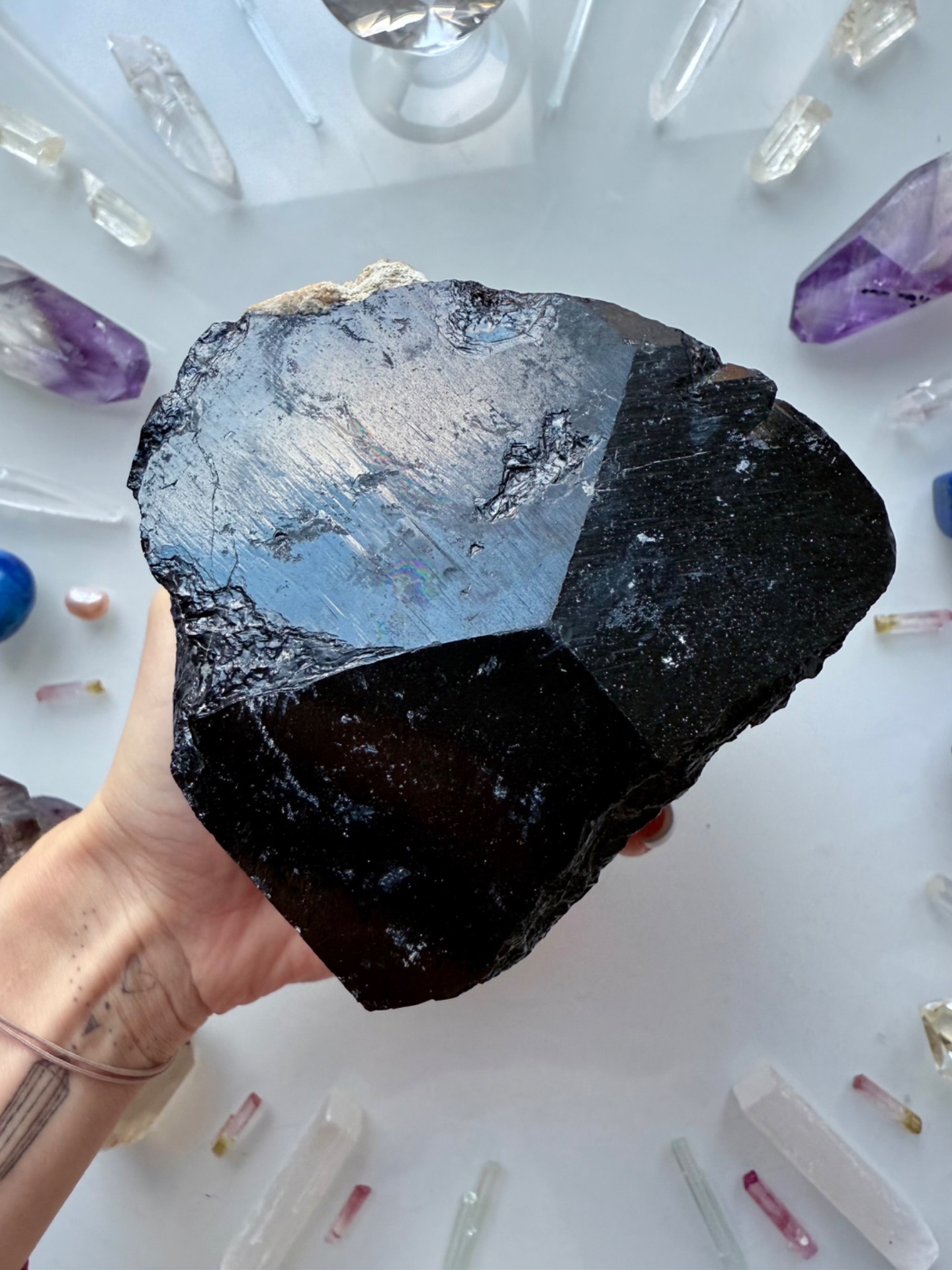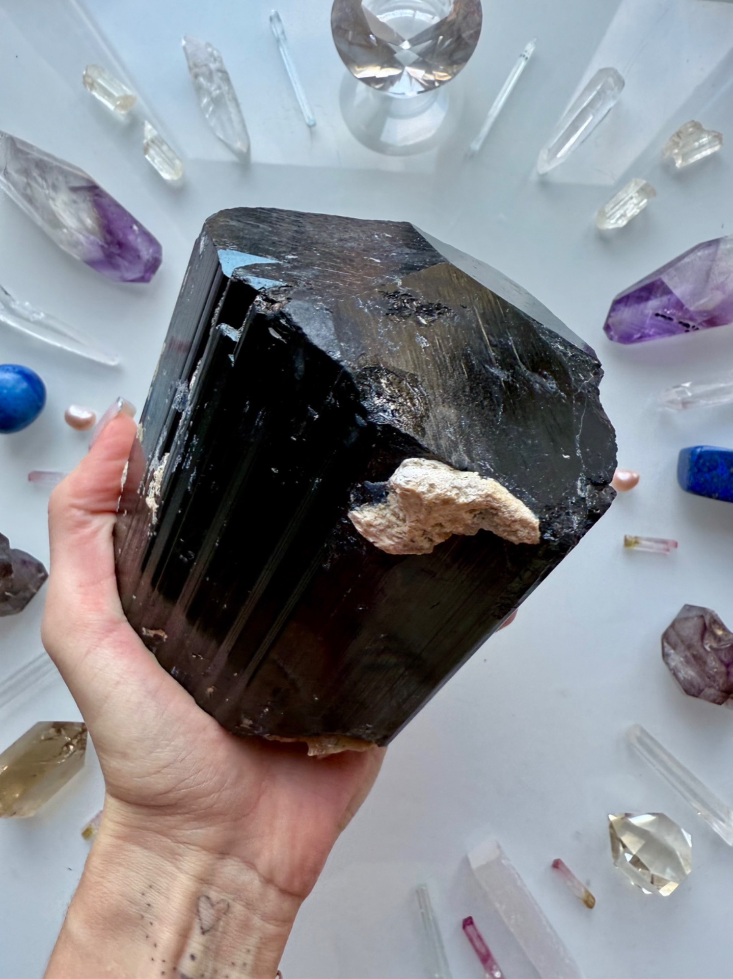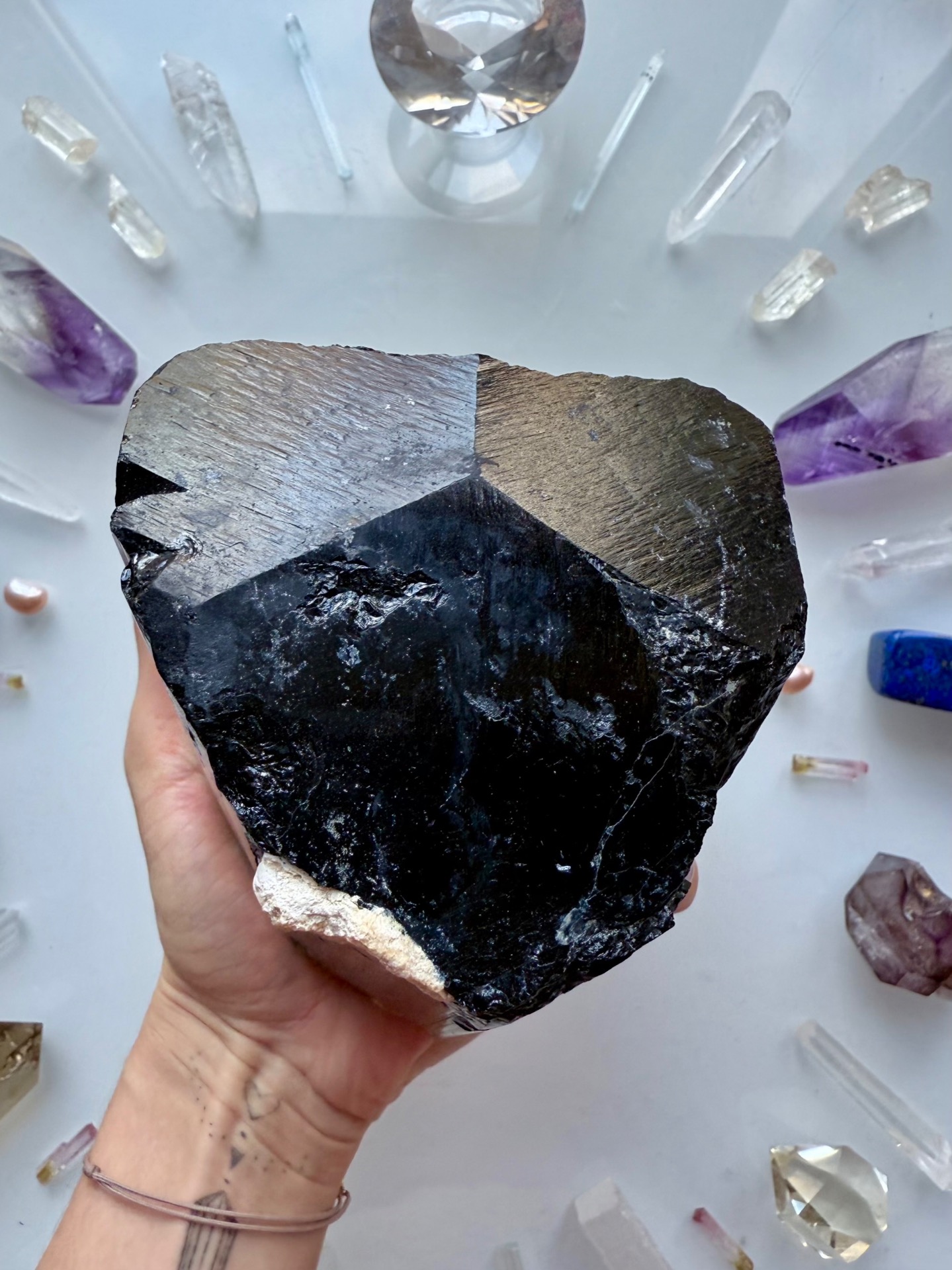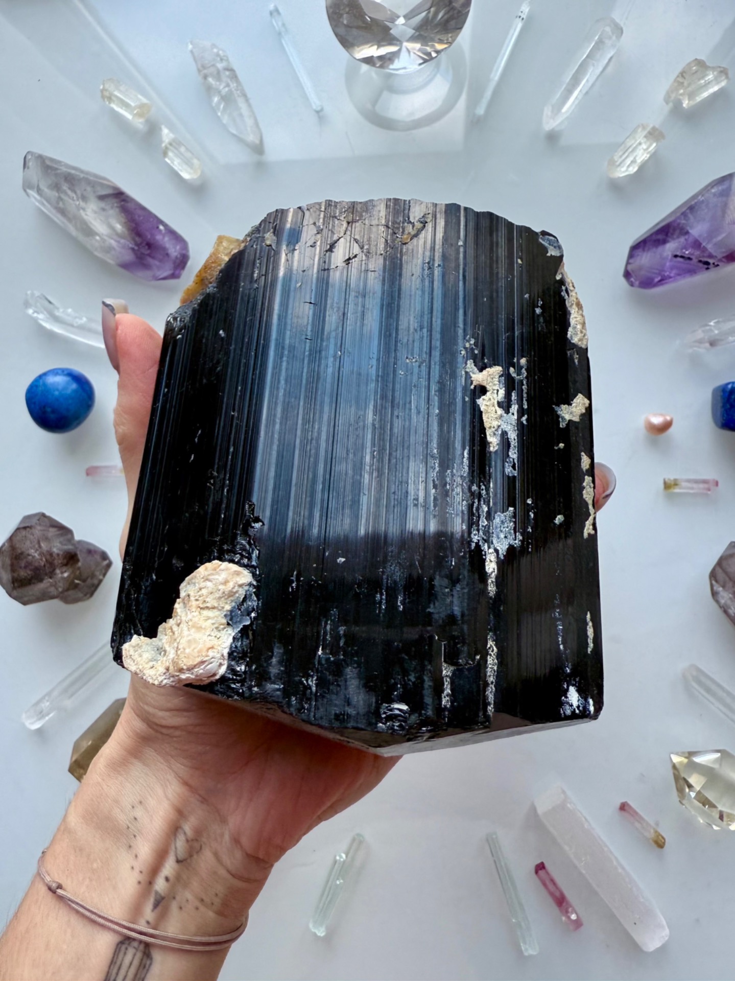 Obrovský jeden kus krystalického turmalínu. Nejsilnější formy ochrany a transformace nízkovibračních energií. Takovýto generátorový typ je vhodný do celého prostoru.