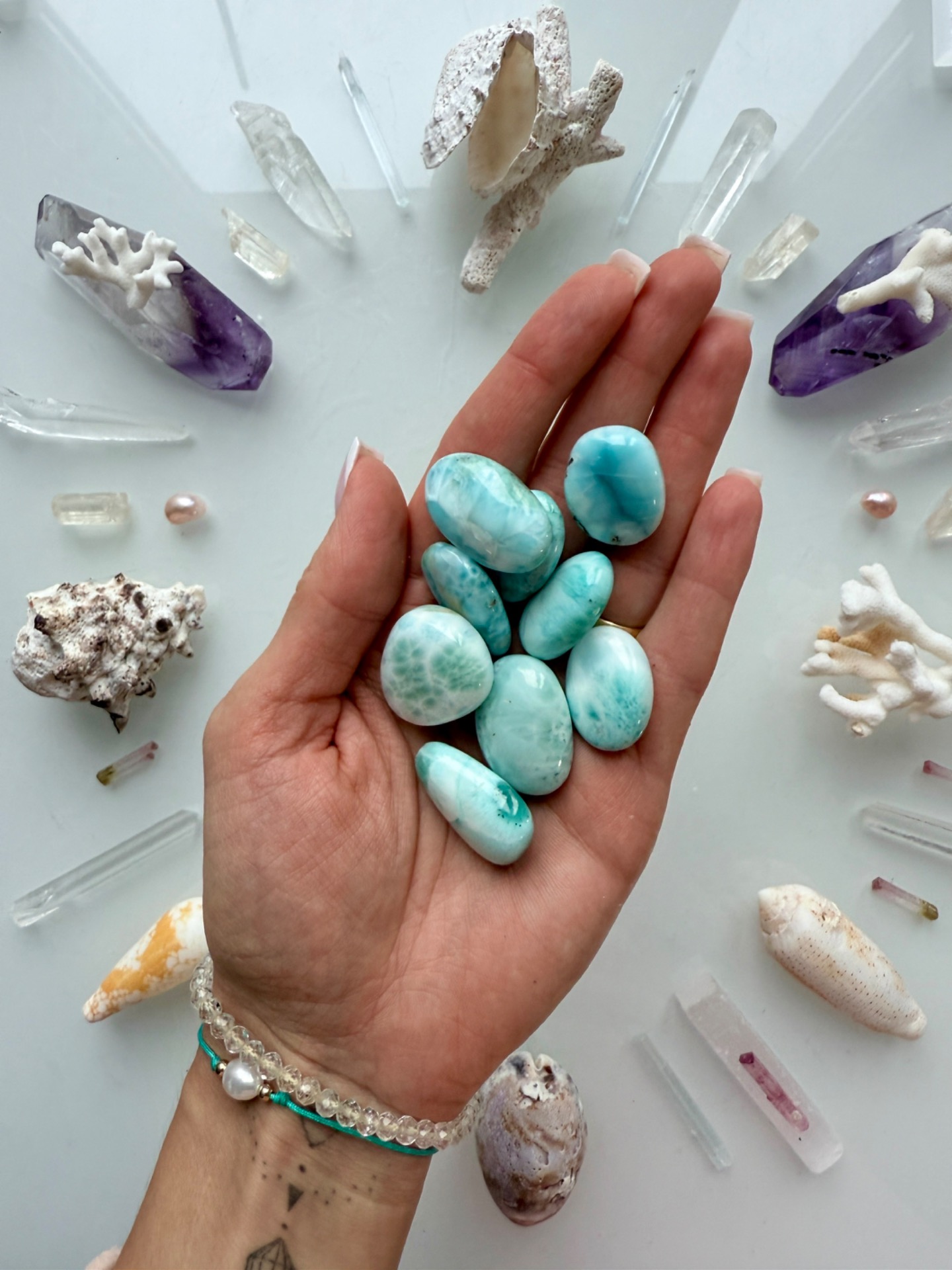 Je v ní dech oceánu, který se dotýká světla. Jeho hluboká milující energie povznáší celou geometrii, kde jsou také sluneční galaktické Citríny, lemurské laserové křišťály, Vogel krystaly, chryzokoly, vodní akvamarín, perlorodky, křišťálové obelisky, záhnědy nebo delfíní Larimary.