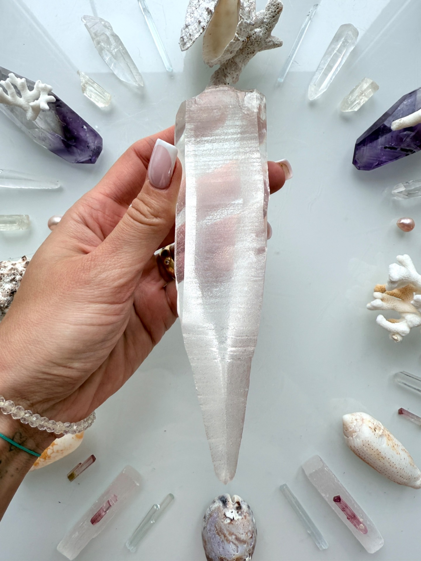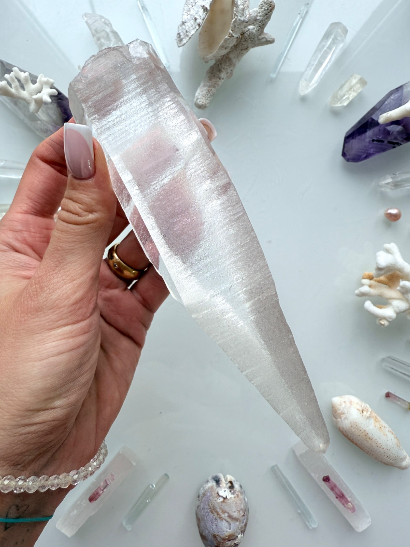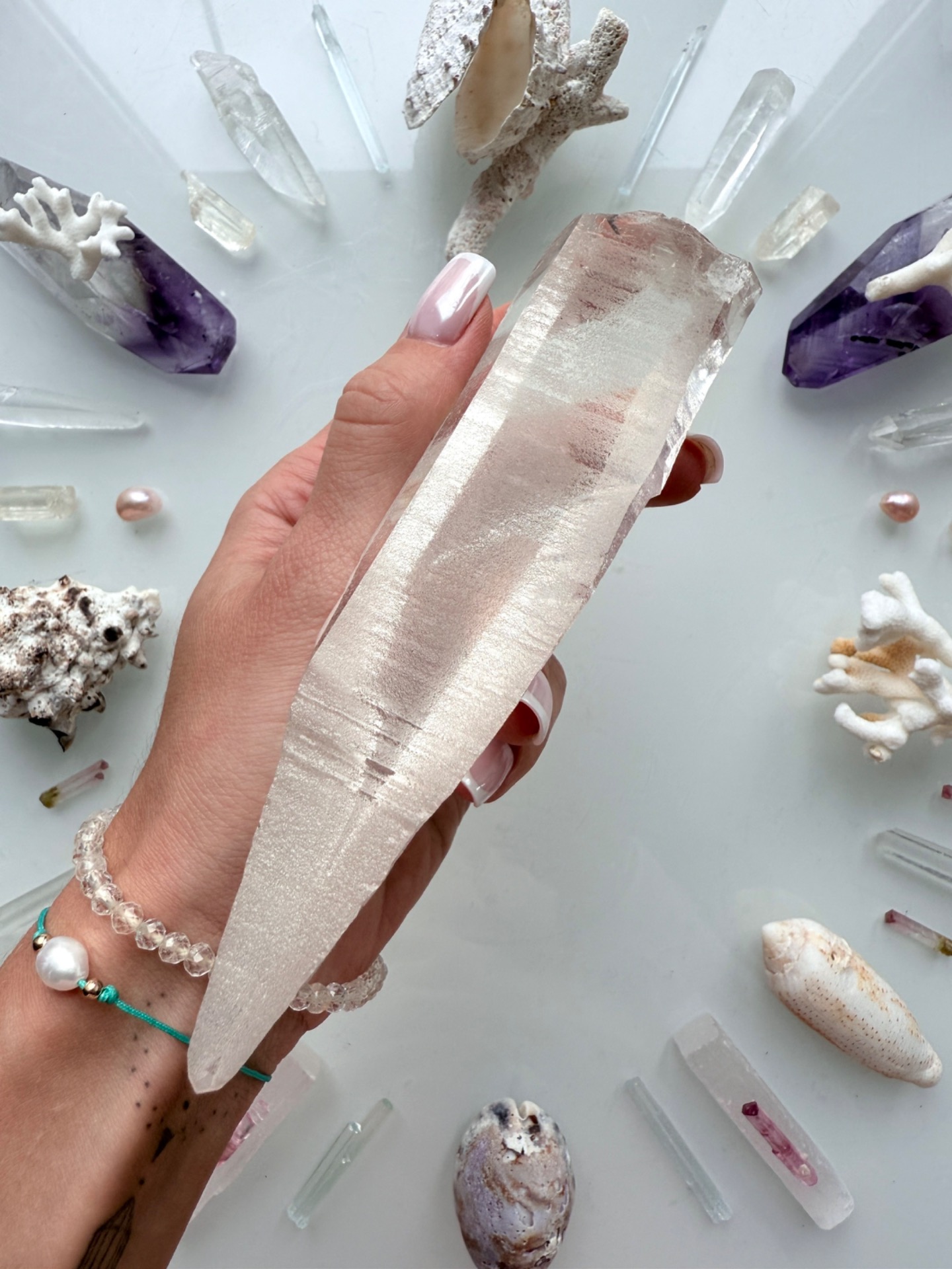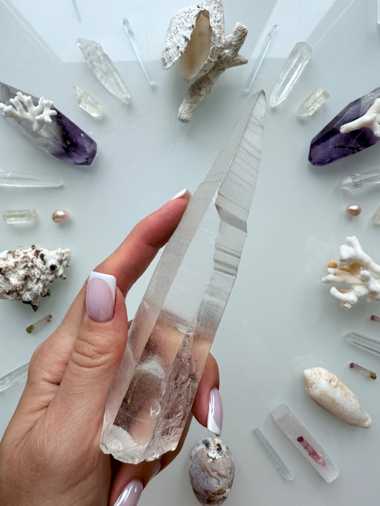 Jeden z křišťálů, který stojí na začátku geometrie, se mnou fyzicky načerpával kódy na Maledivách. Nechal se prostoupit Sluncem, dotkl se vody, sestoupil s námi do hlubin plného života, i do ticha oceánských chrámů.
