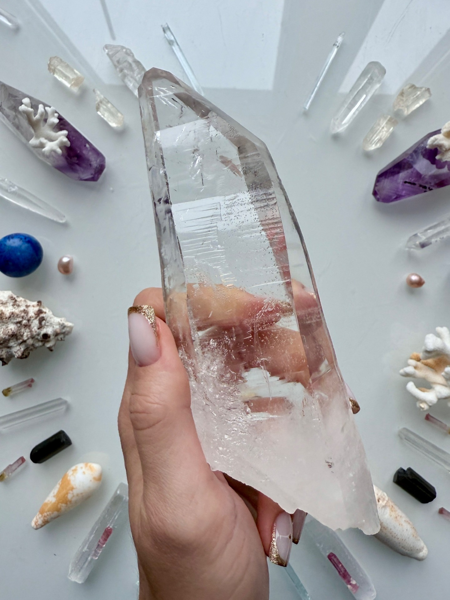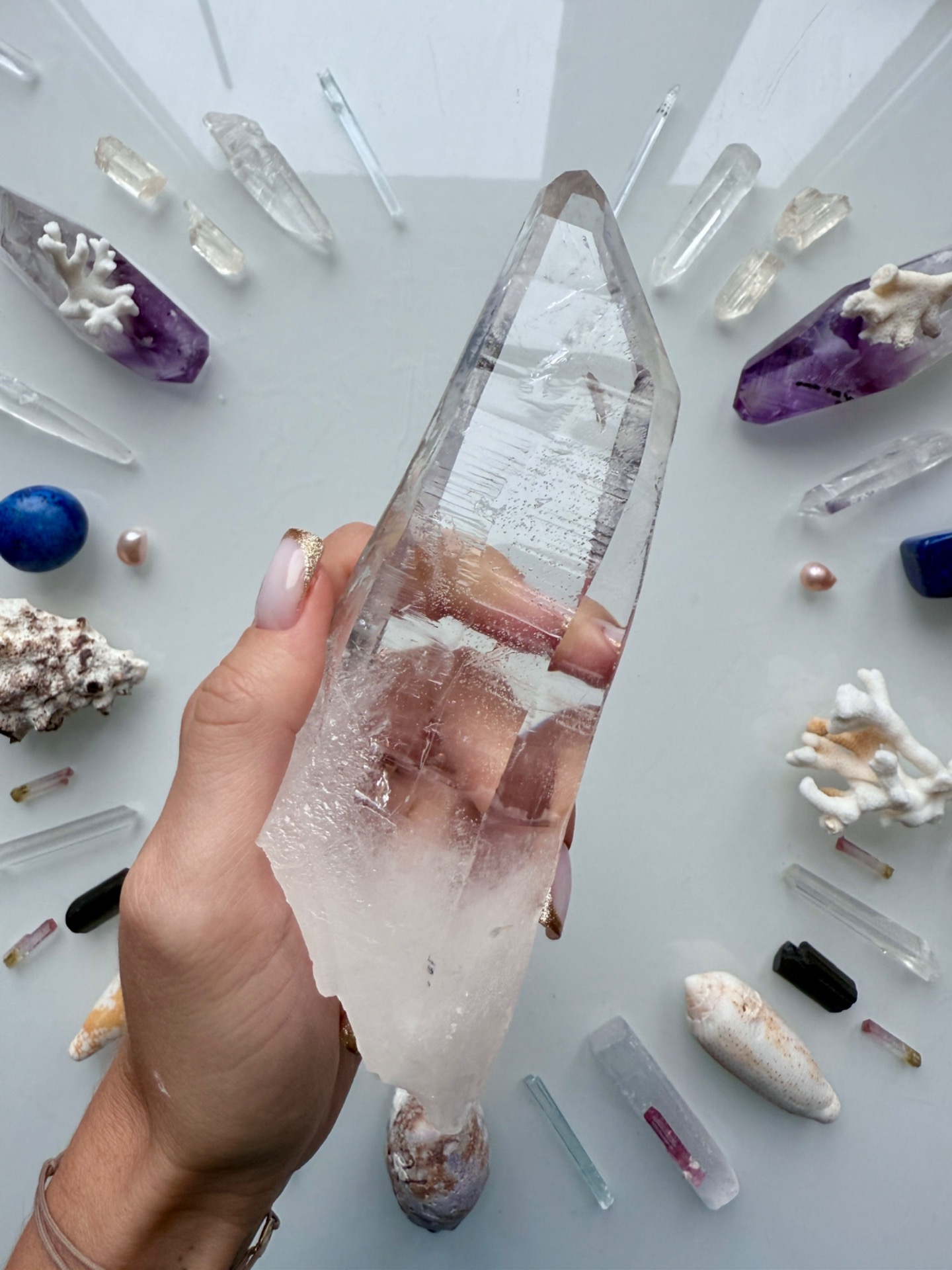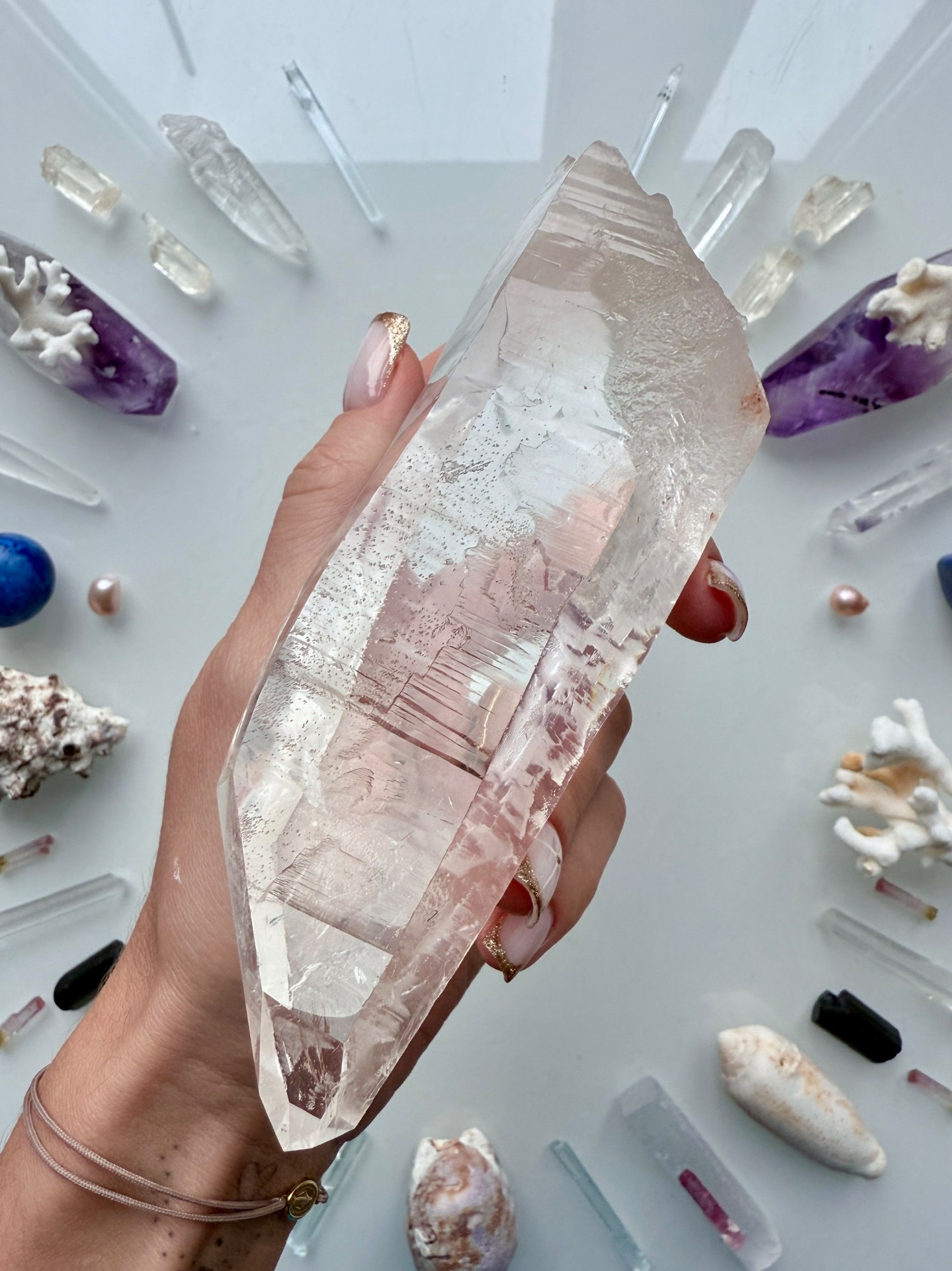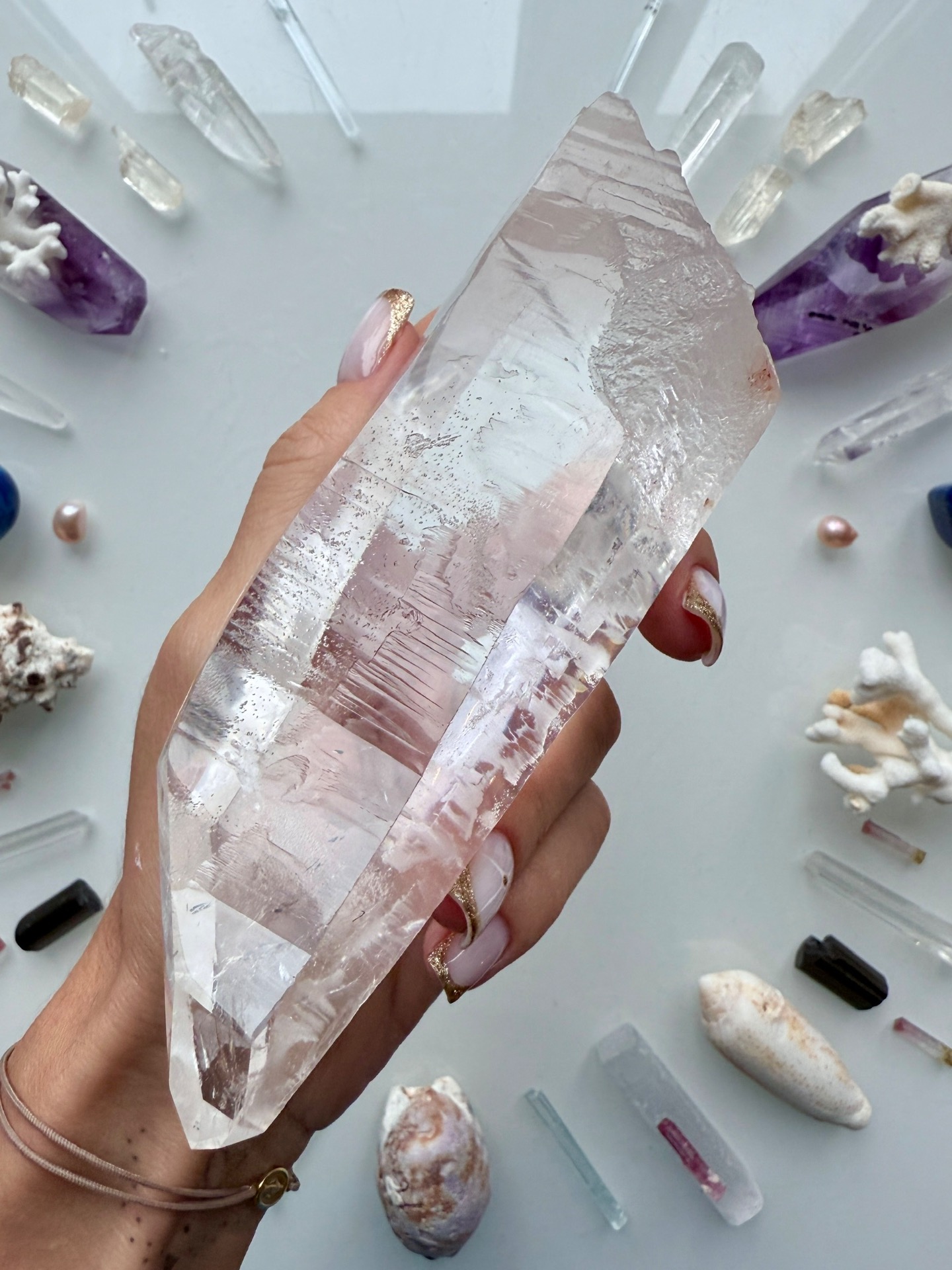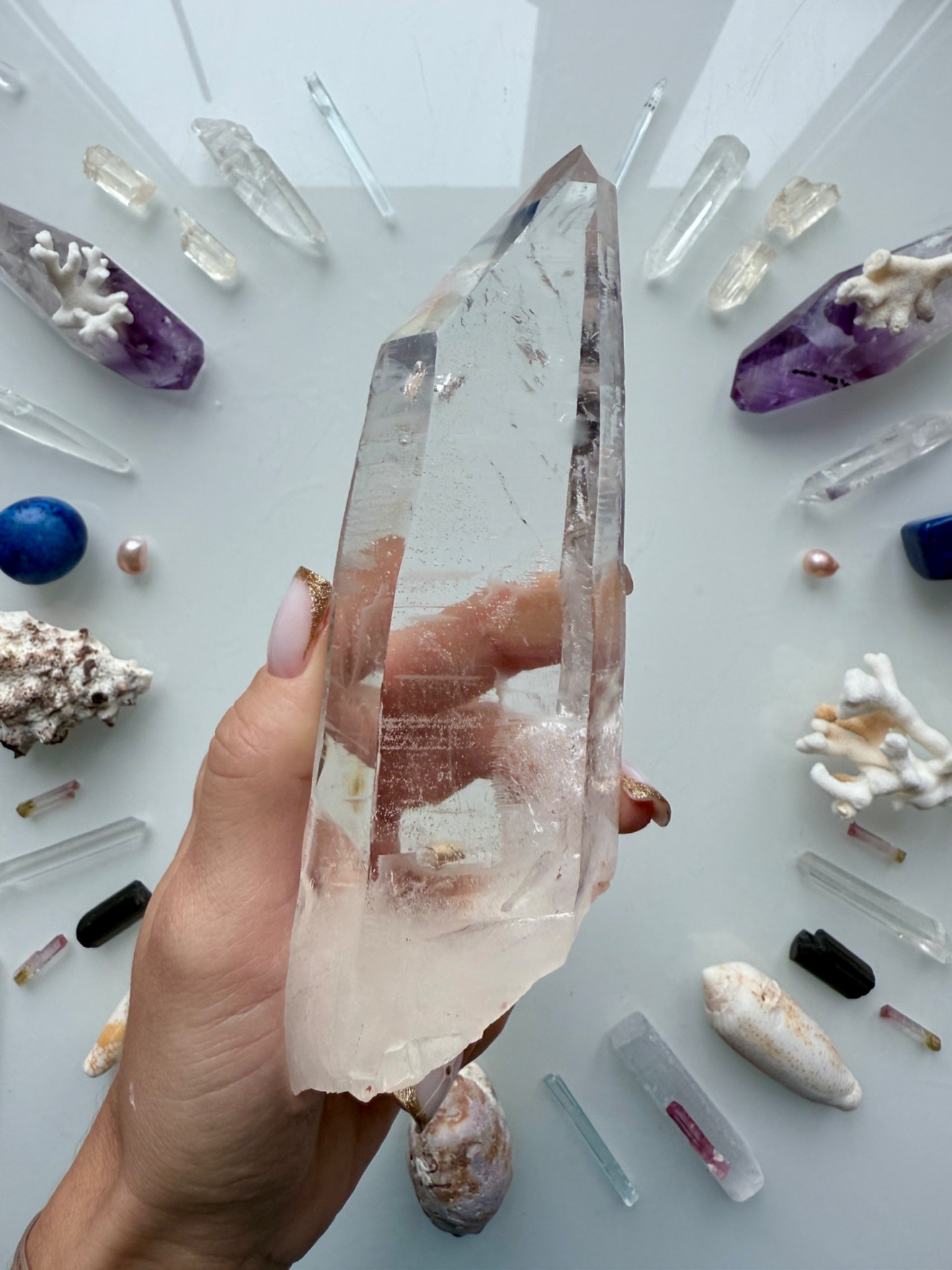 Nádherný lemurský kódový křišťál, jenž na stranách krystalu nese kódy a energetické otisky.