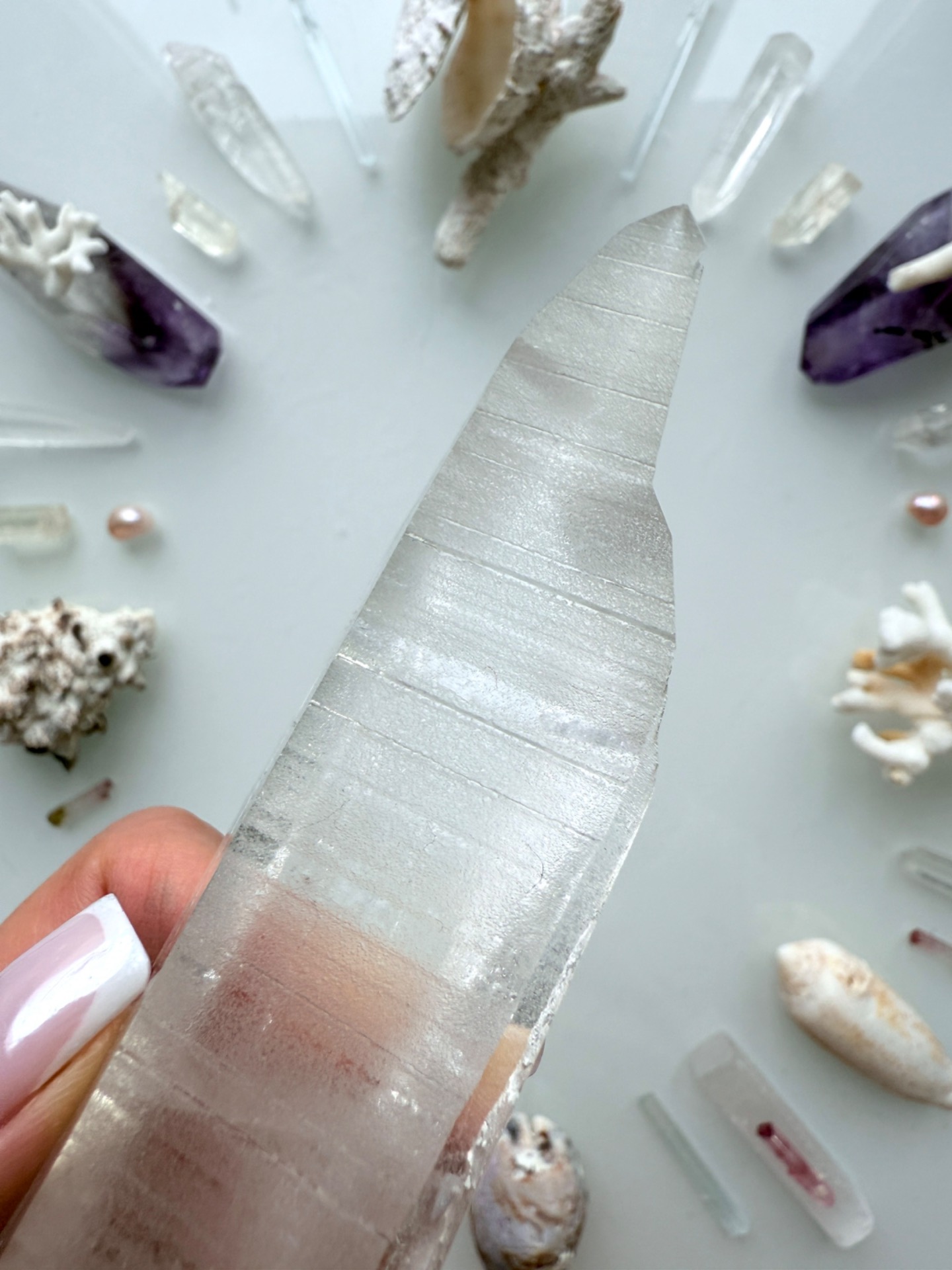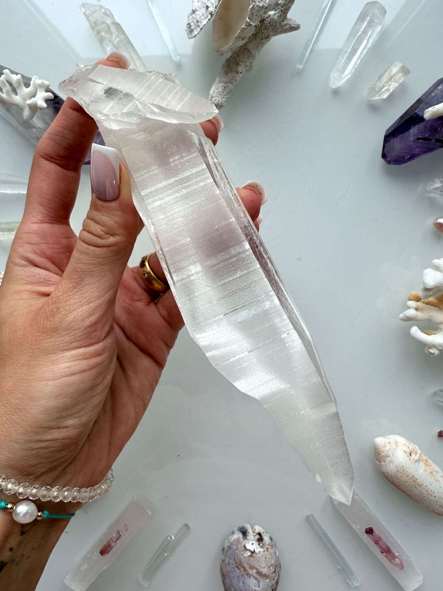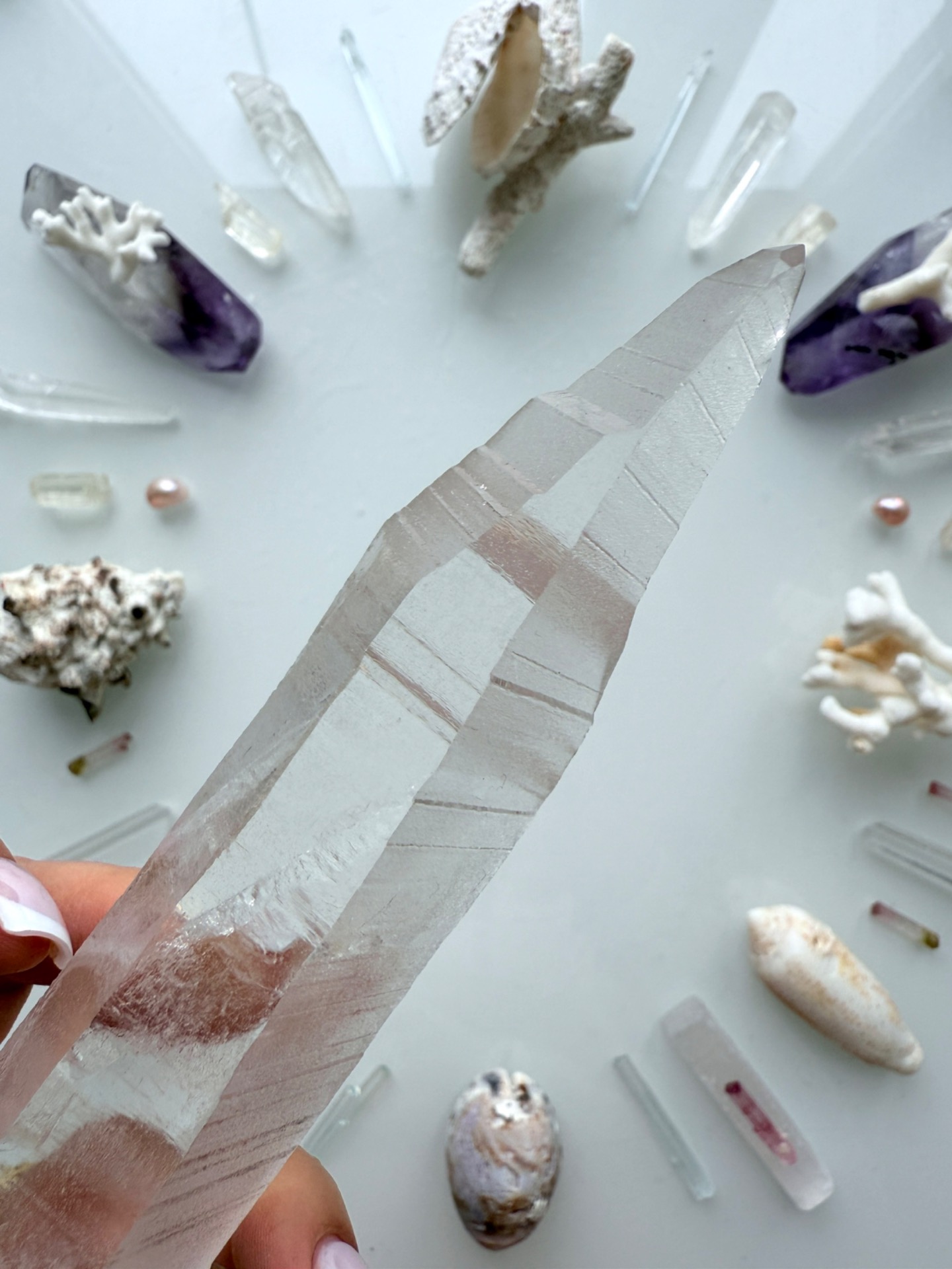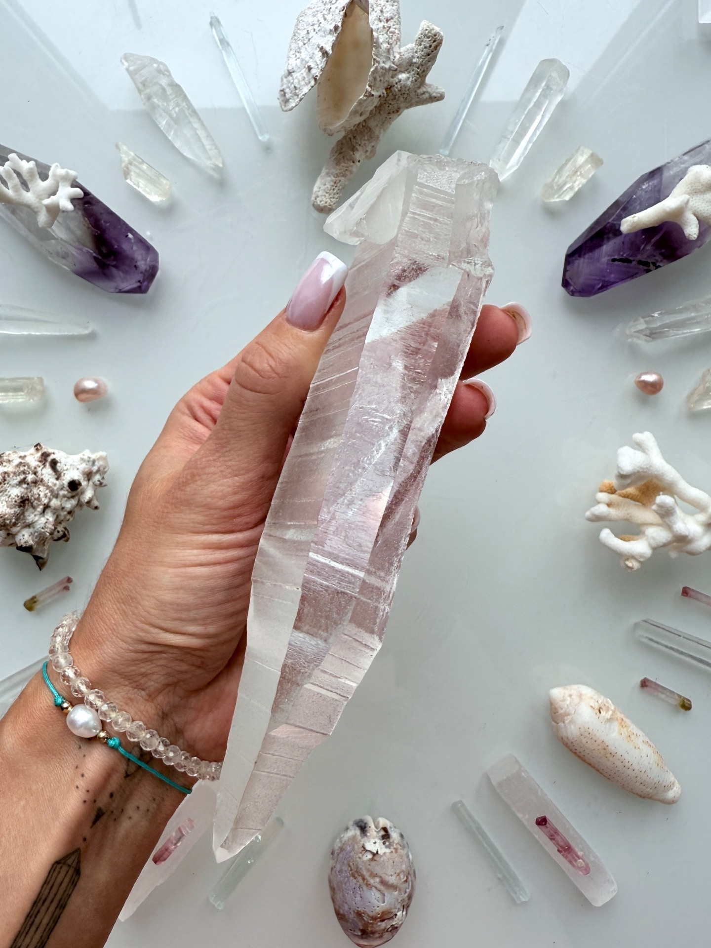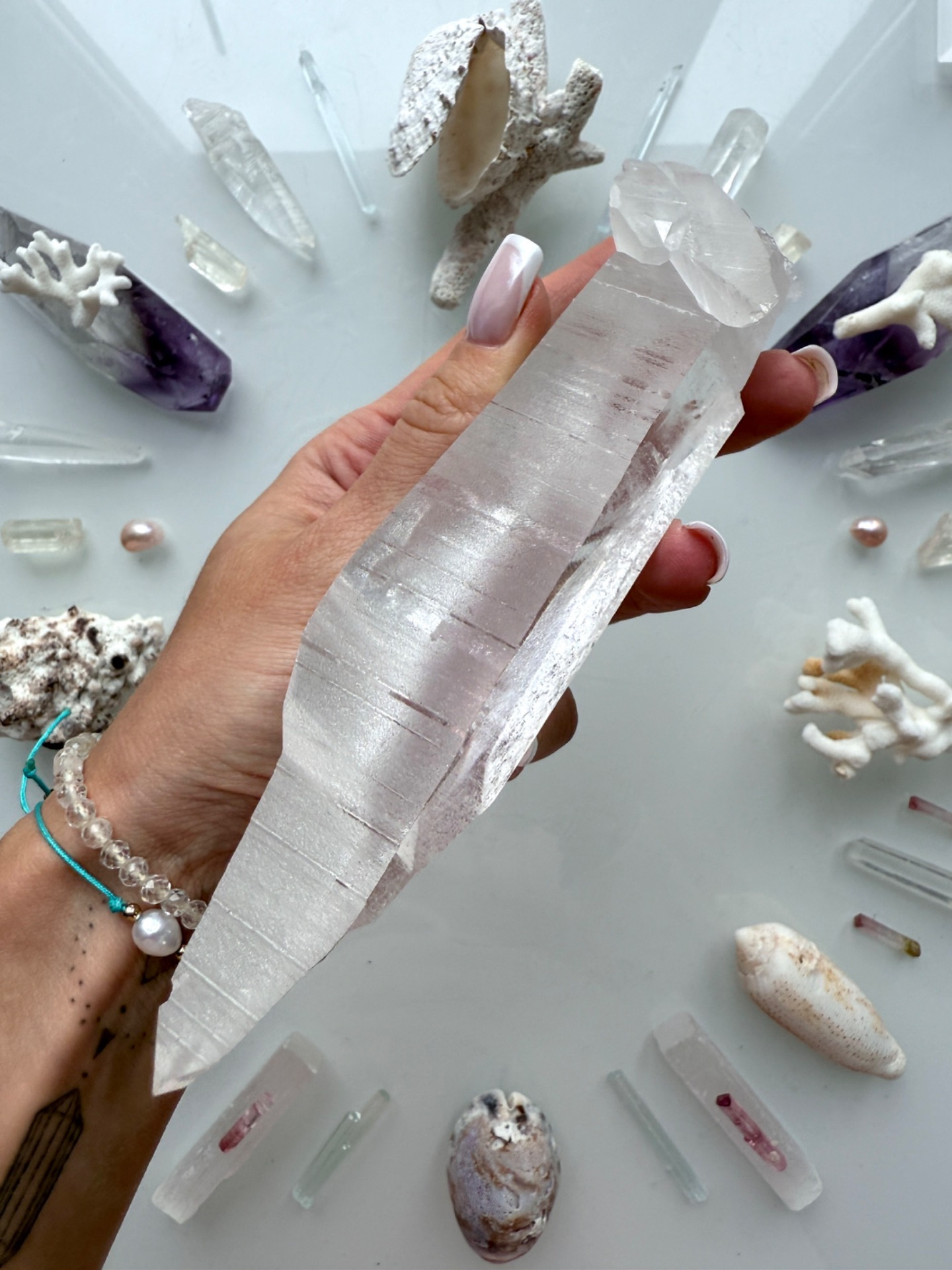 Jeden z křišťálů, který stojí na začátku geometrie, se mnou fyzicky načerpával kódy na Maledivách. Nechal se prostoupit Sluncem, dotkl se vody, sestoupil s námi do hlubin plného života, i do ticha oceánských chrámů.