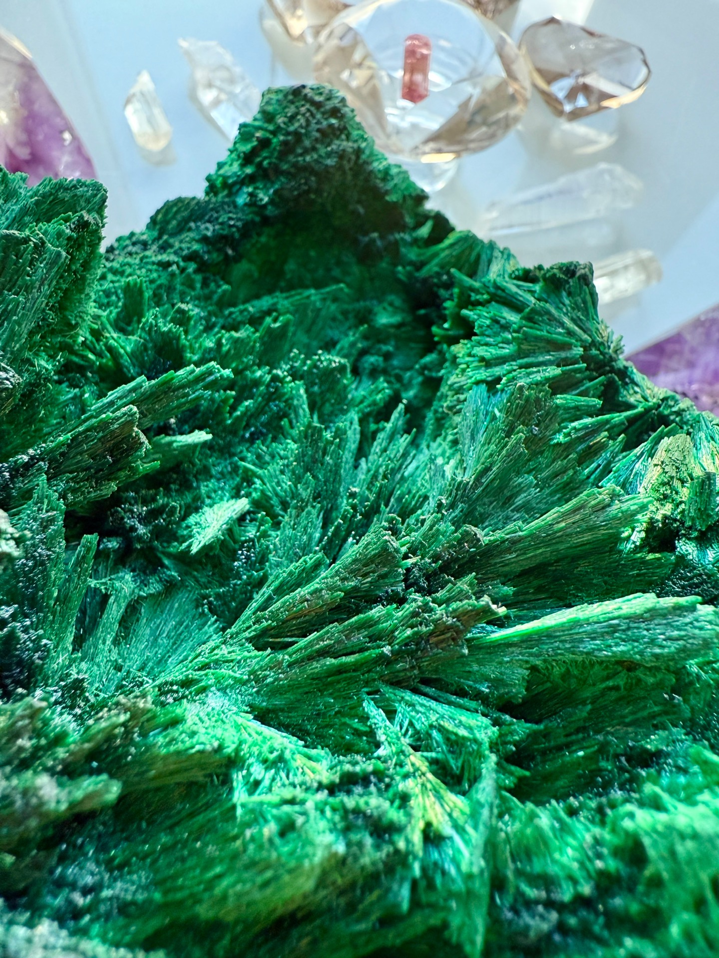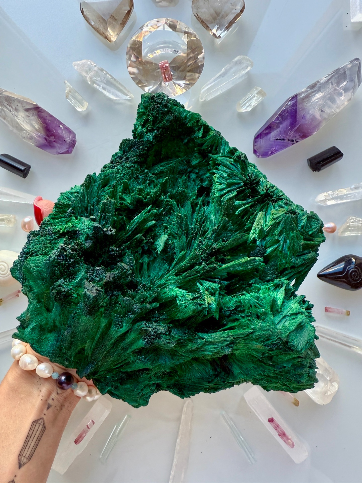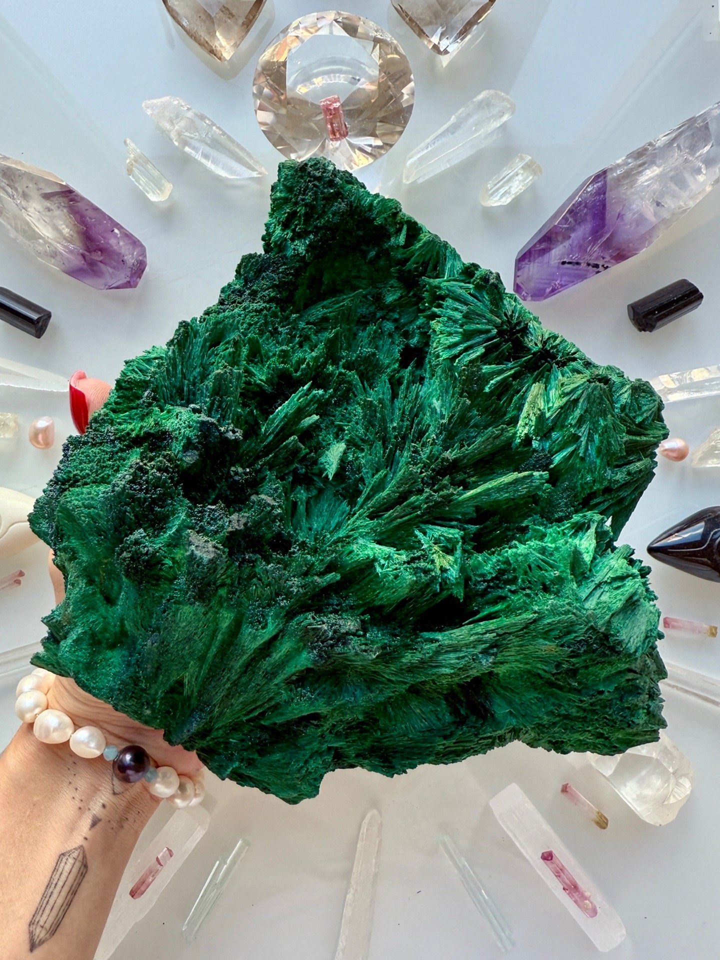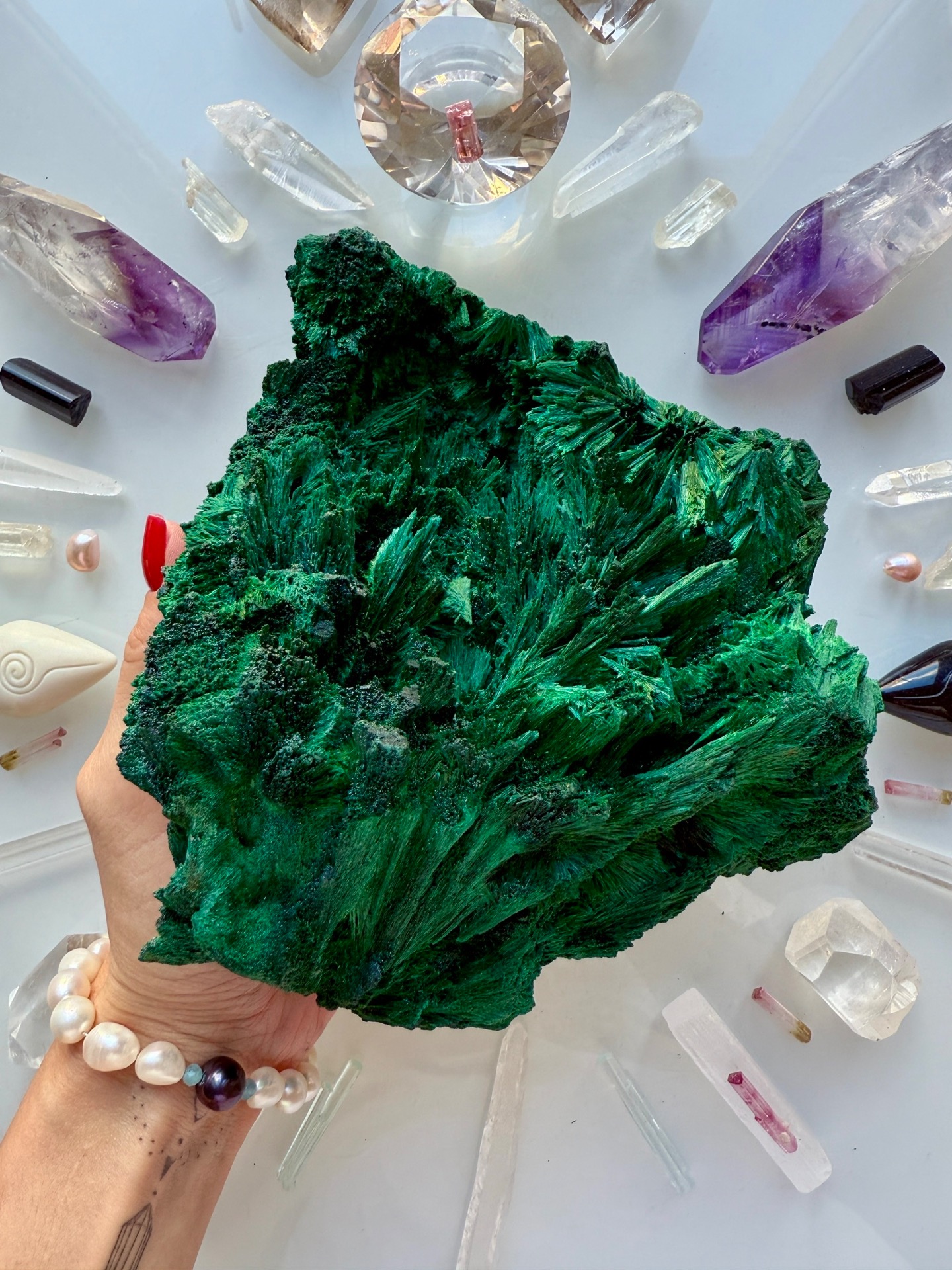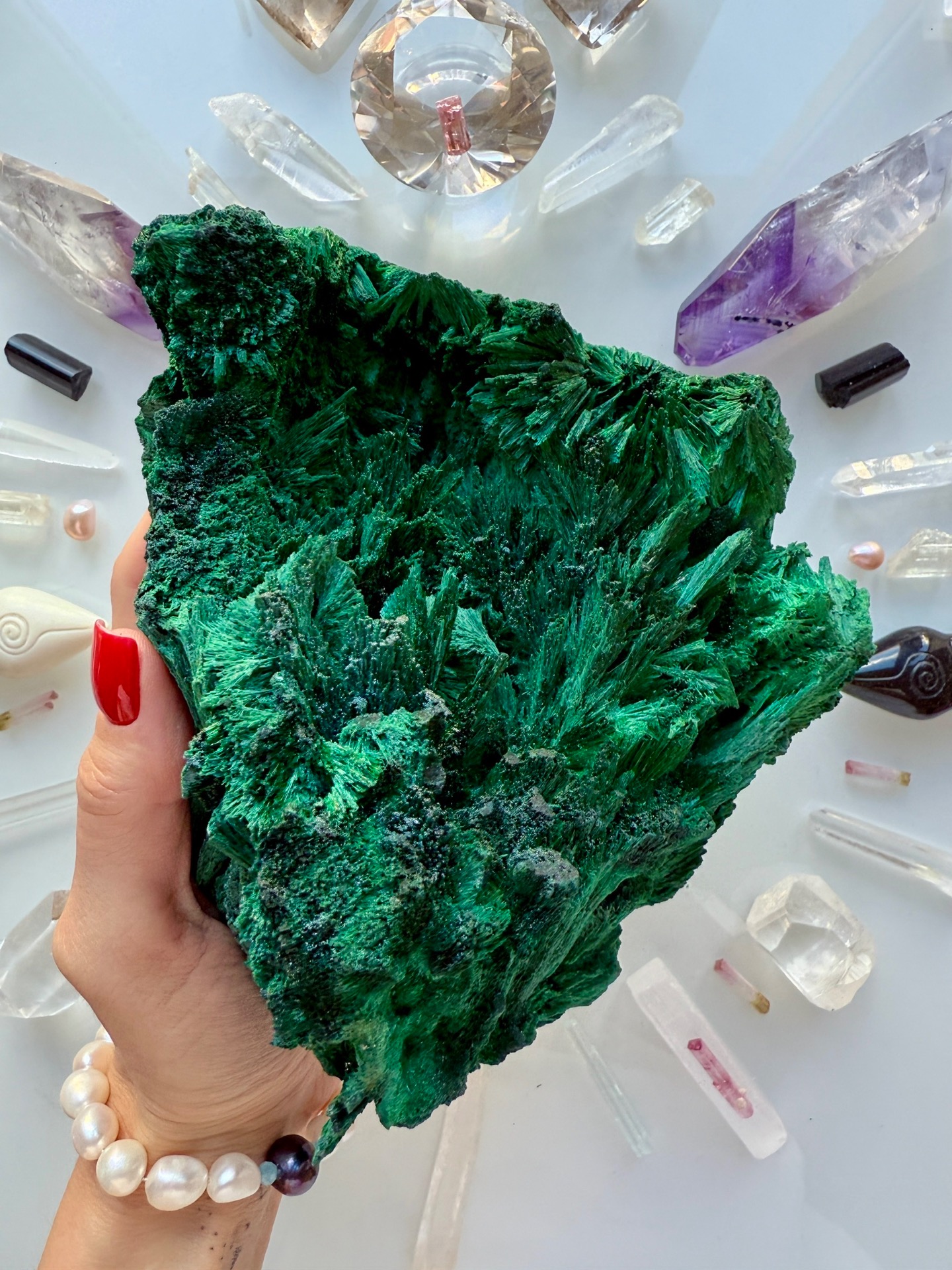 Výjimečný mistrovský velký Malachit vhodný do celého prostoru, díky jeho velkého léčitelského - vibračního dosahu. Navíc je tento kousek surový, vibračně otevřený a silnější zářící.