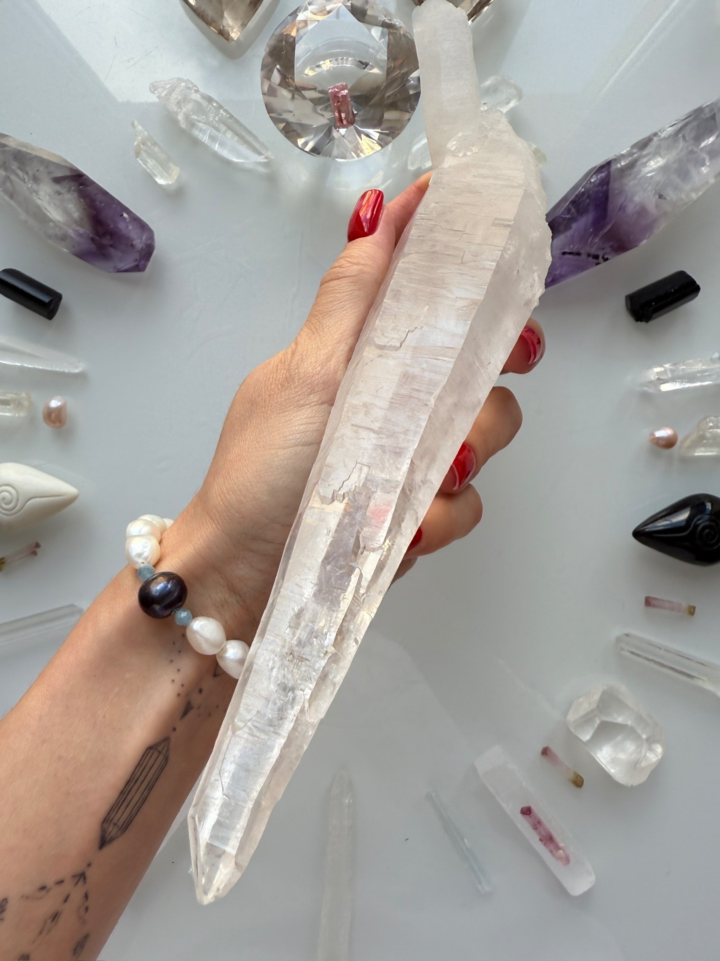 Laserový křišťál je posvátný krystalický nástroj. A jako laserový paprsek dokáže prostupovat veškerou energii, vibraci, dokáže narovnávat posvátnou geometrii do své zdrojové podstaty a přetínat a vypalovat cizí zárodky v poli, astrálu... je proto i velmi ochranným nástrojem.