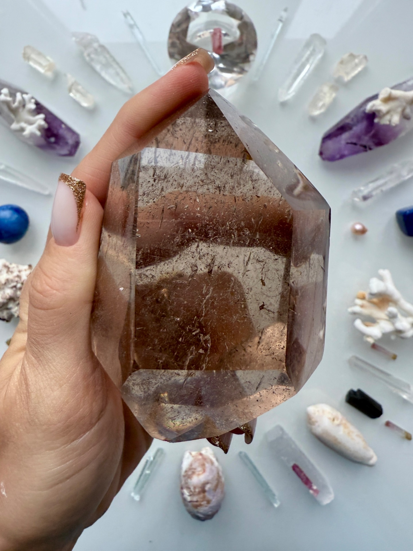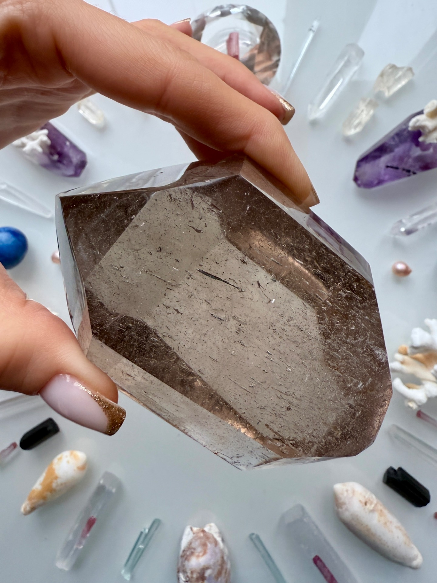 Krásná oboustranná záhněda jak pracovní krystal do ruky.
