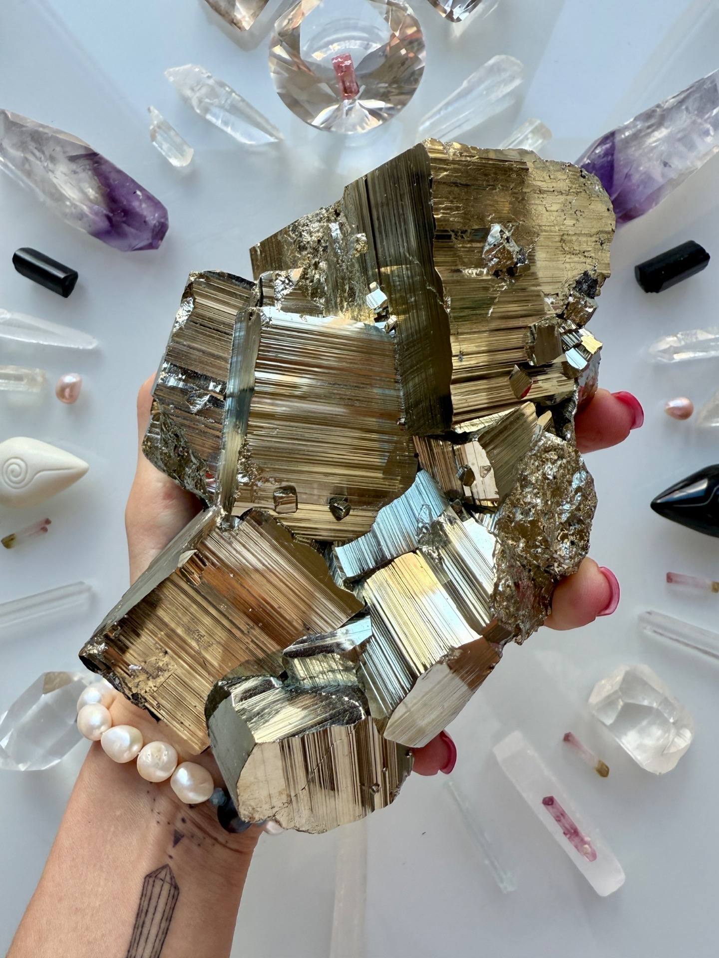 Pyritová drůza nám dodává mnoho energie, pokud se cítíte oslabení, cítíte úbytek energie, držte tuto krychli v rukou a pracujte se zlatou energií a přijetím všeho, co k vám přichází, co vnímáte, že si zasloužíte...