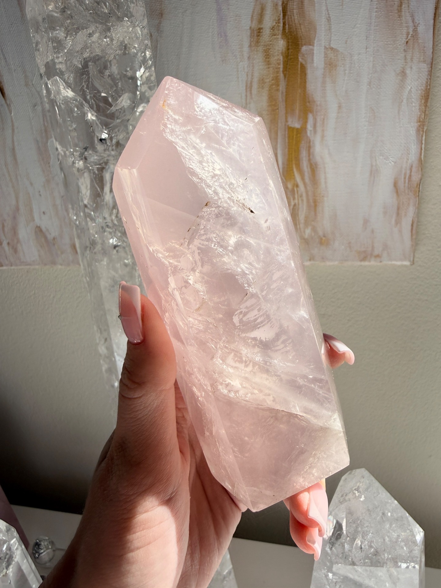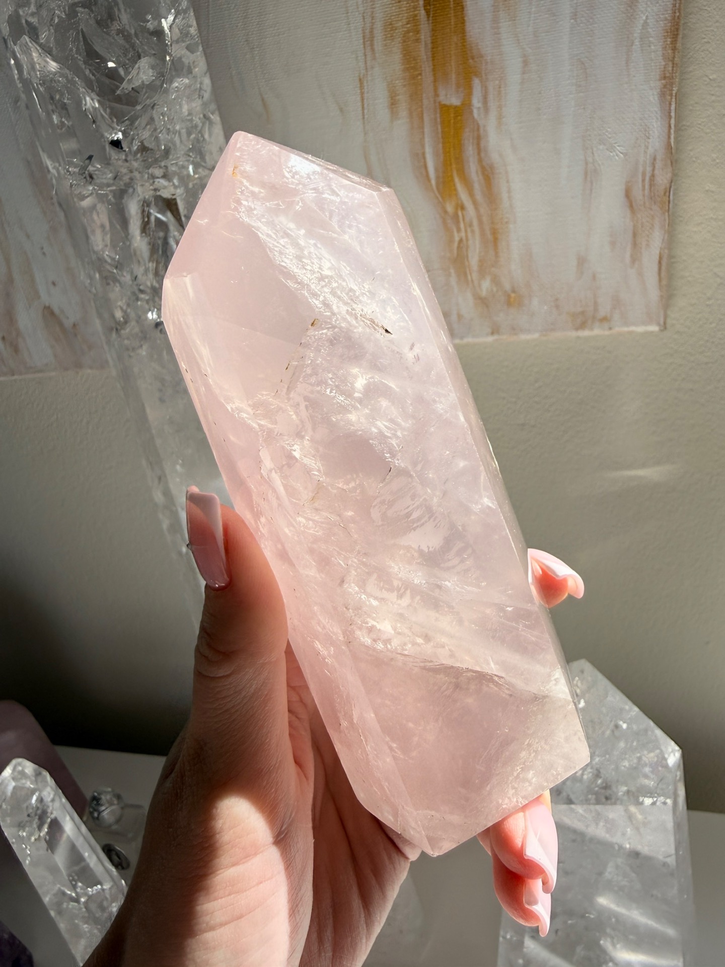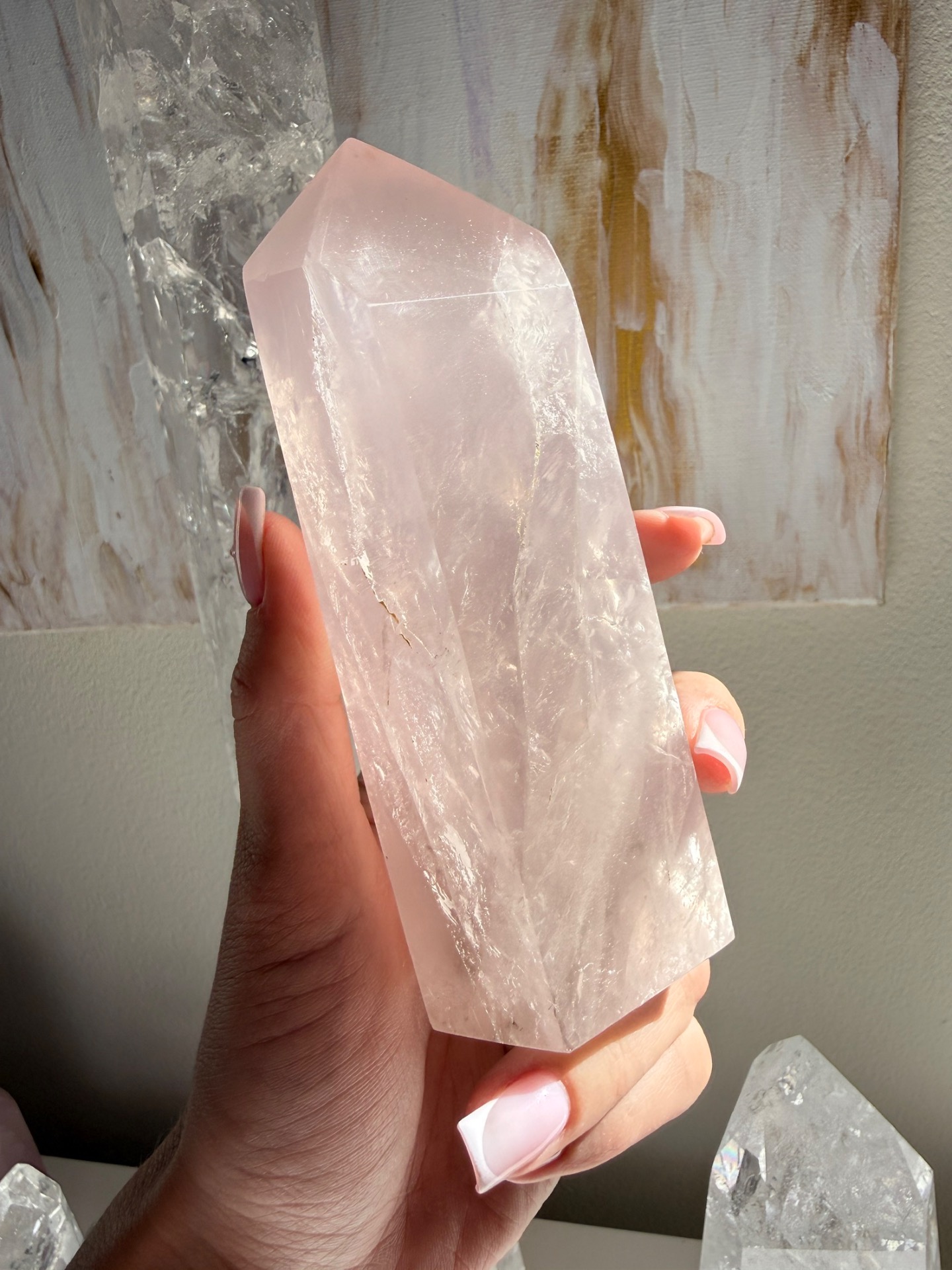 Růženínový sloup Lásky je vhodný krystal jak do velkého prostoru, do domova, tak na osobní práci. Jeho bezpodmínečná Láska a neohraničenost je tady také pro všechny ostatní, neboť šíří se jeho světelné paprsky daleko.