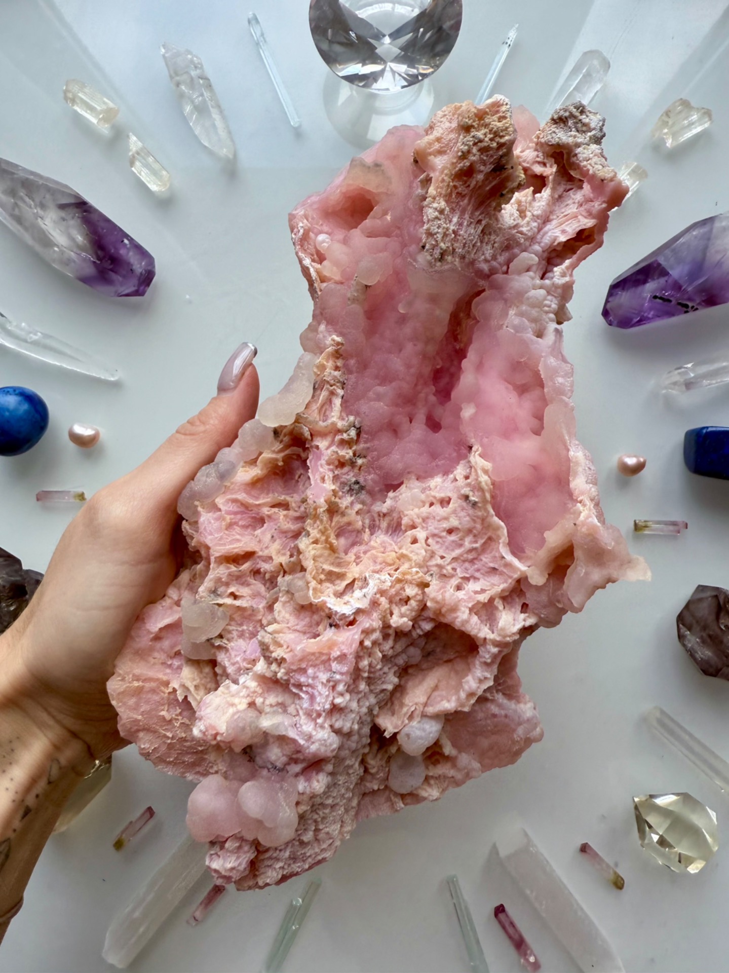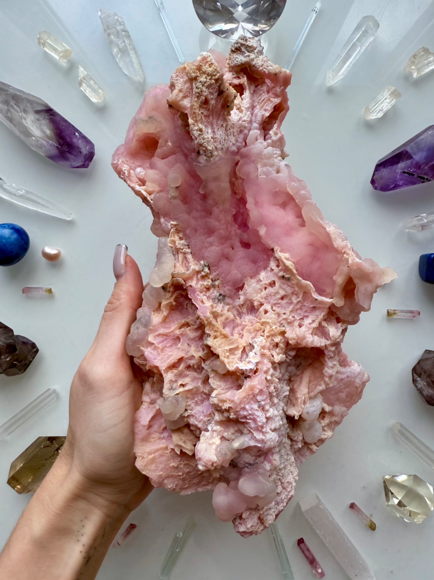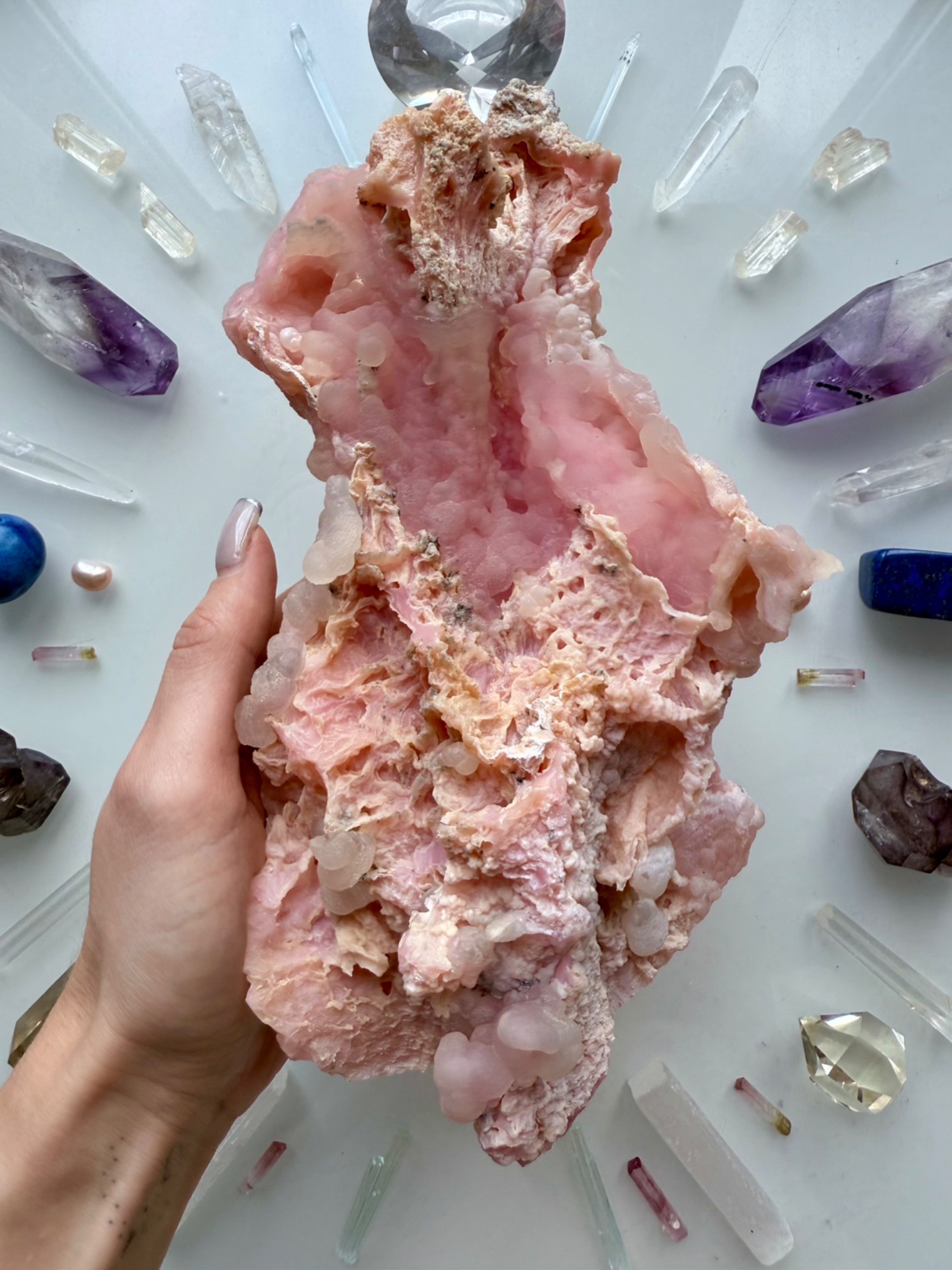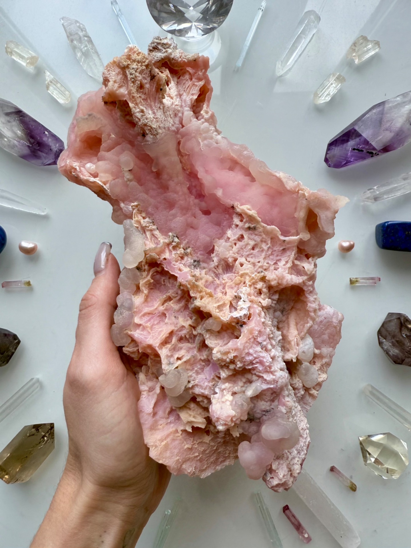 V horním kruhu Růžový opál-chalcedon a krystalický mnoha turmalín.