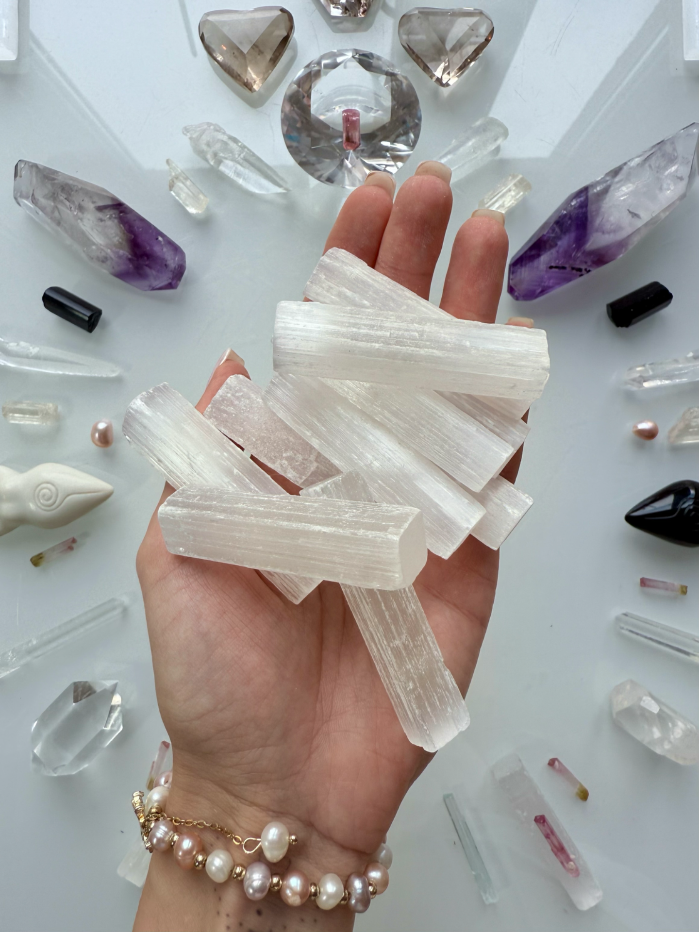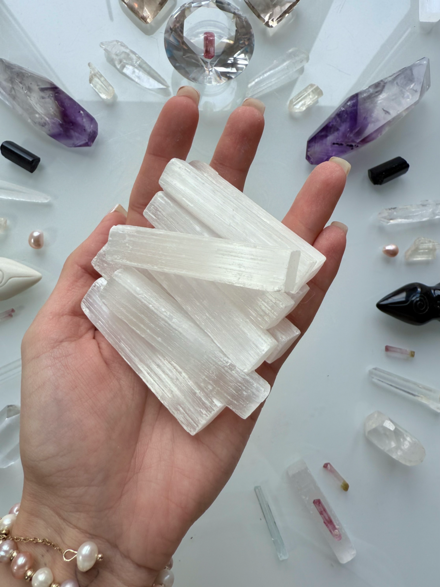 Dostenete 6 kusů selenitových tyčinek které byly součástí posvátné geometrie a které pro vás vybereme.