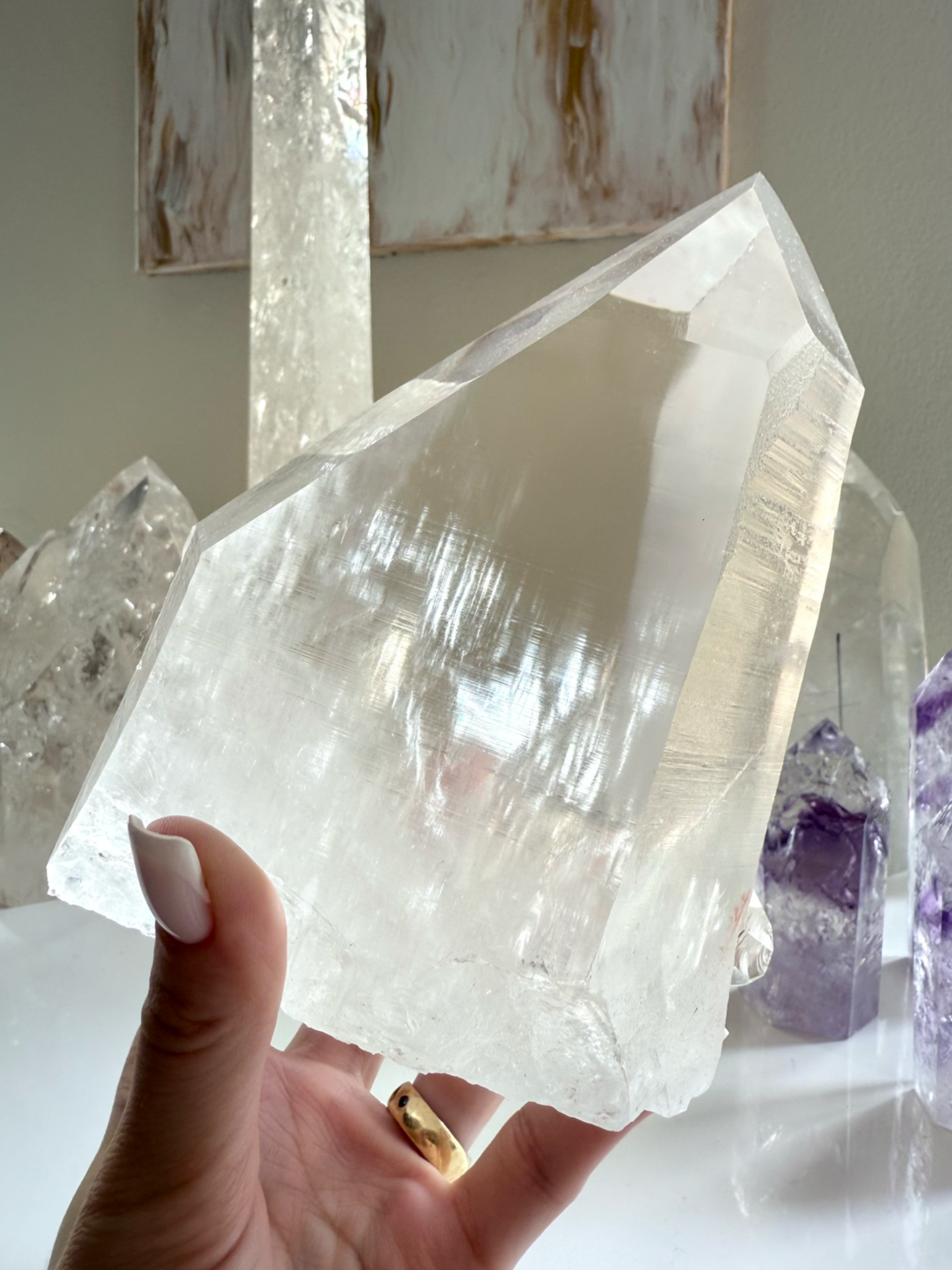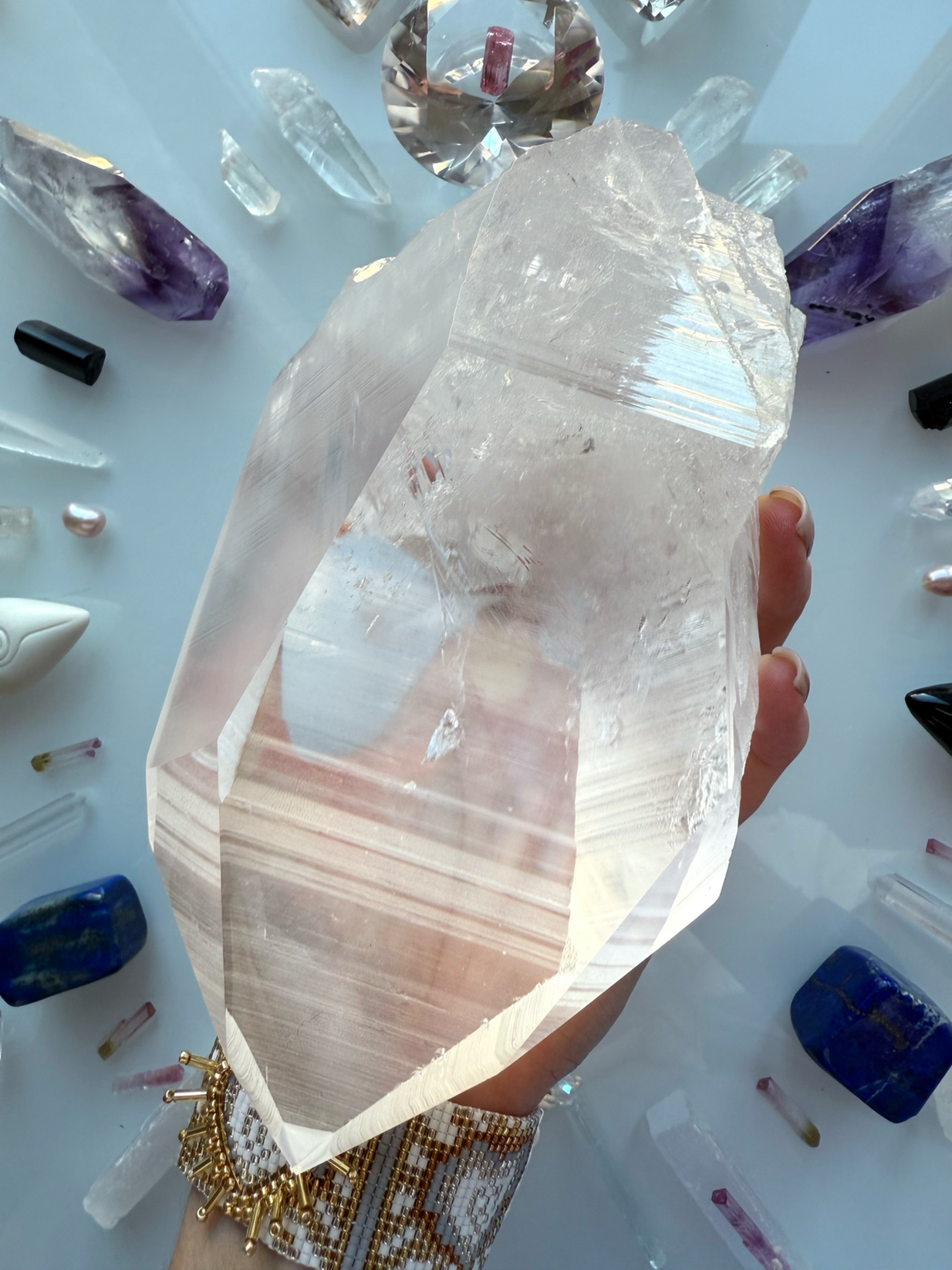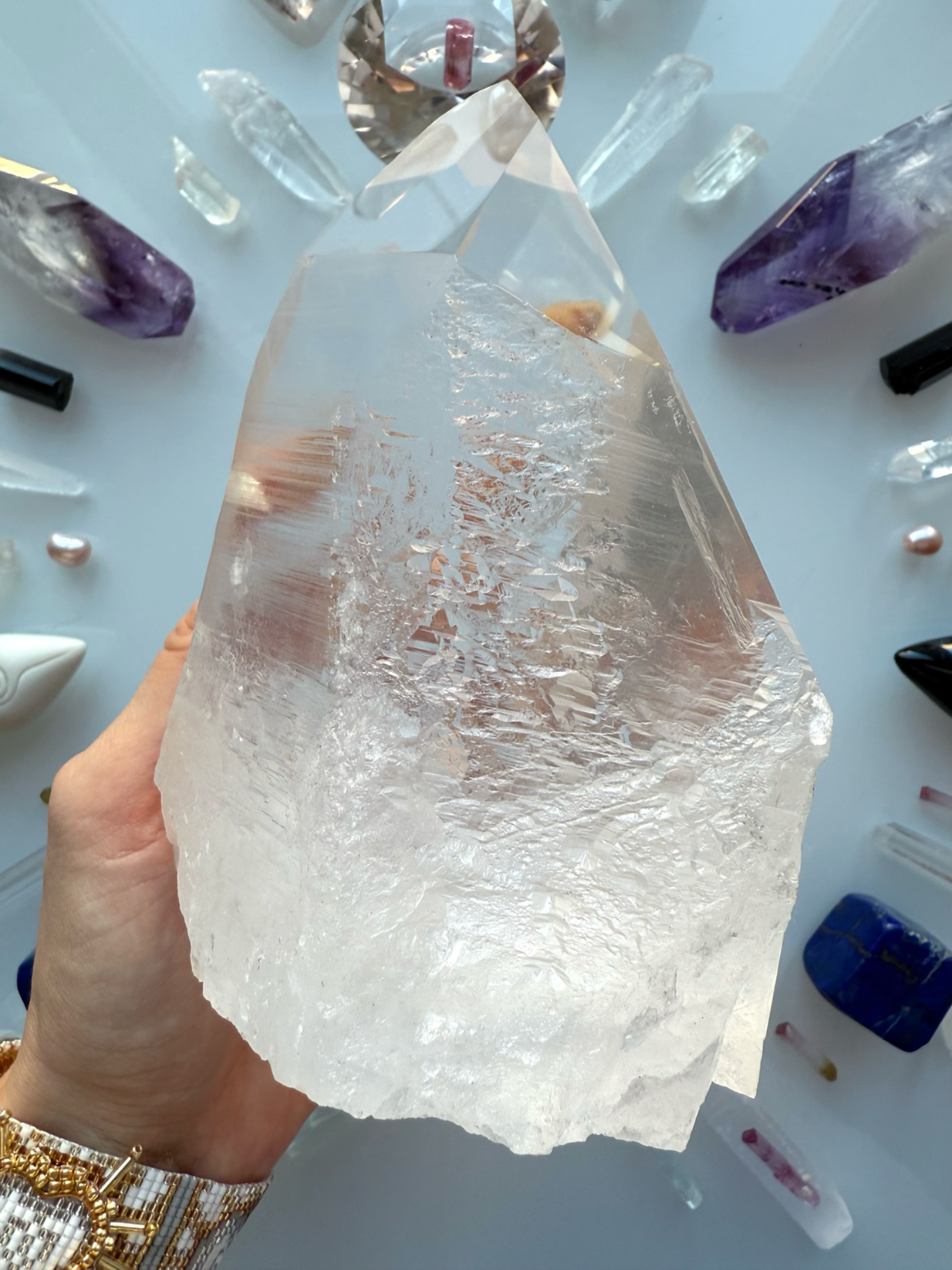 Ve středu je křišťálová mísa, kterou stráží kobry, ve které jsou minerály a na nich ametystová aktivační pečeť. Především je však naplněná posvátnou vodou z Osirionu, 💧místa, kde byl poprvé nalezen Květ Života, kde jsem tuto vodu byla vedena již před rokem dovézt, aby až dnes nadešla chvíle tohoto předání. Toto místo není lidem běžně přístupné a tato voda je aktivační pamětí celé geometrie.