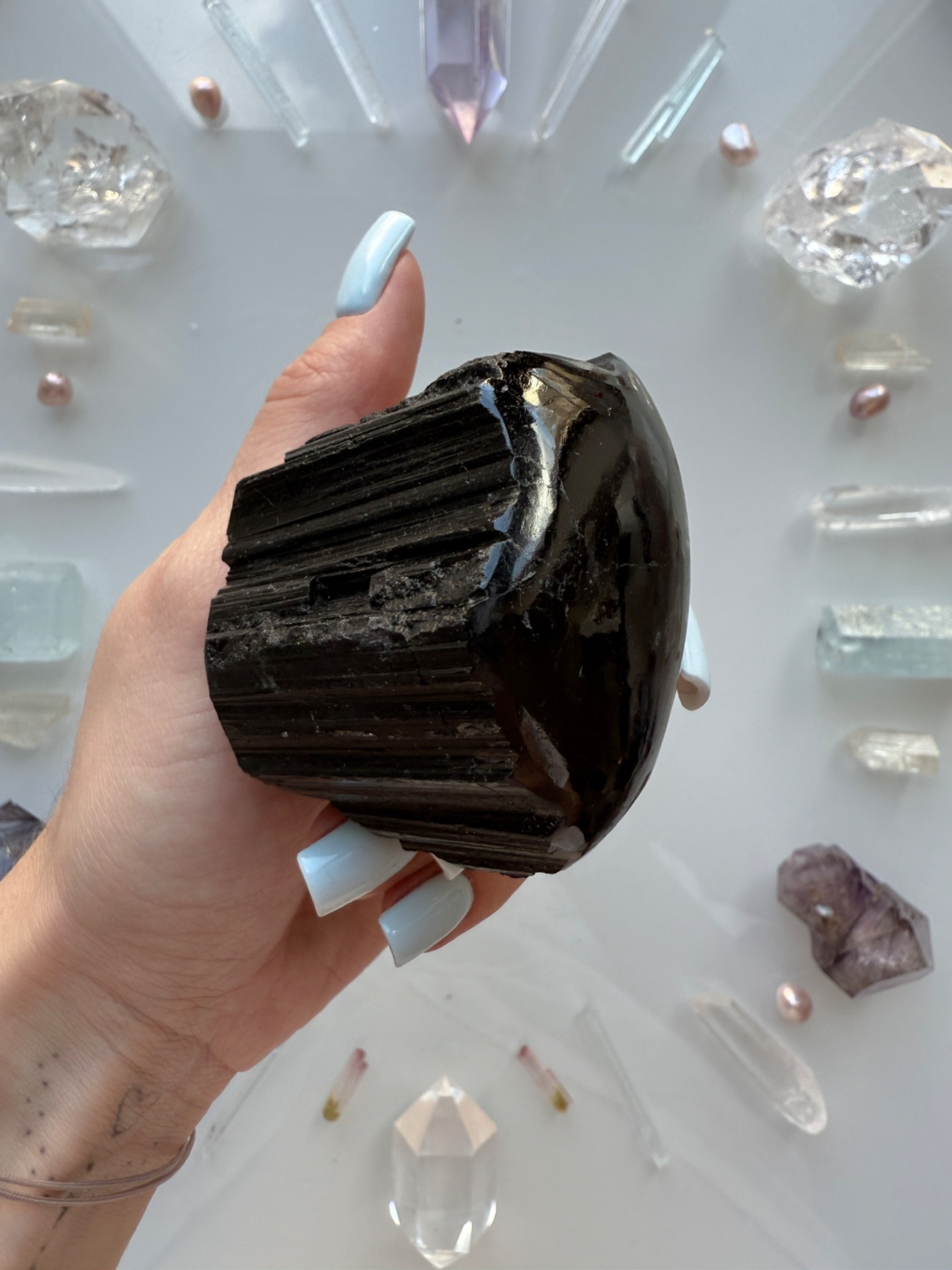 Ochranný krystal Turmalínu, který je vhodný pro někoho, kdo pracuje s lidmi nebo žije v prostředí, které se musí často čistit.
