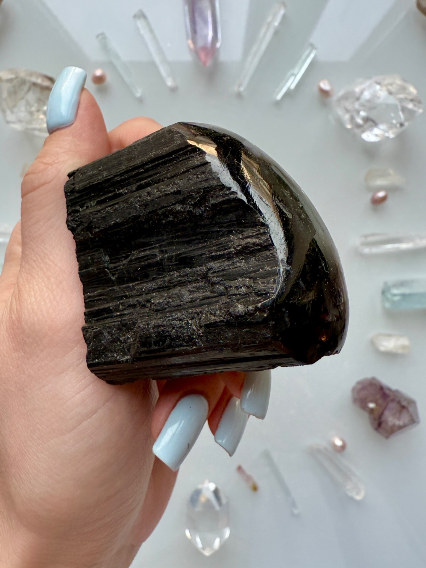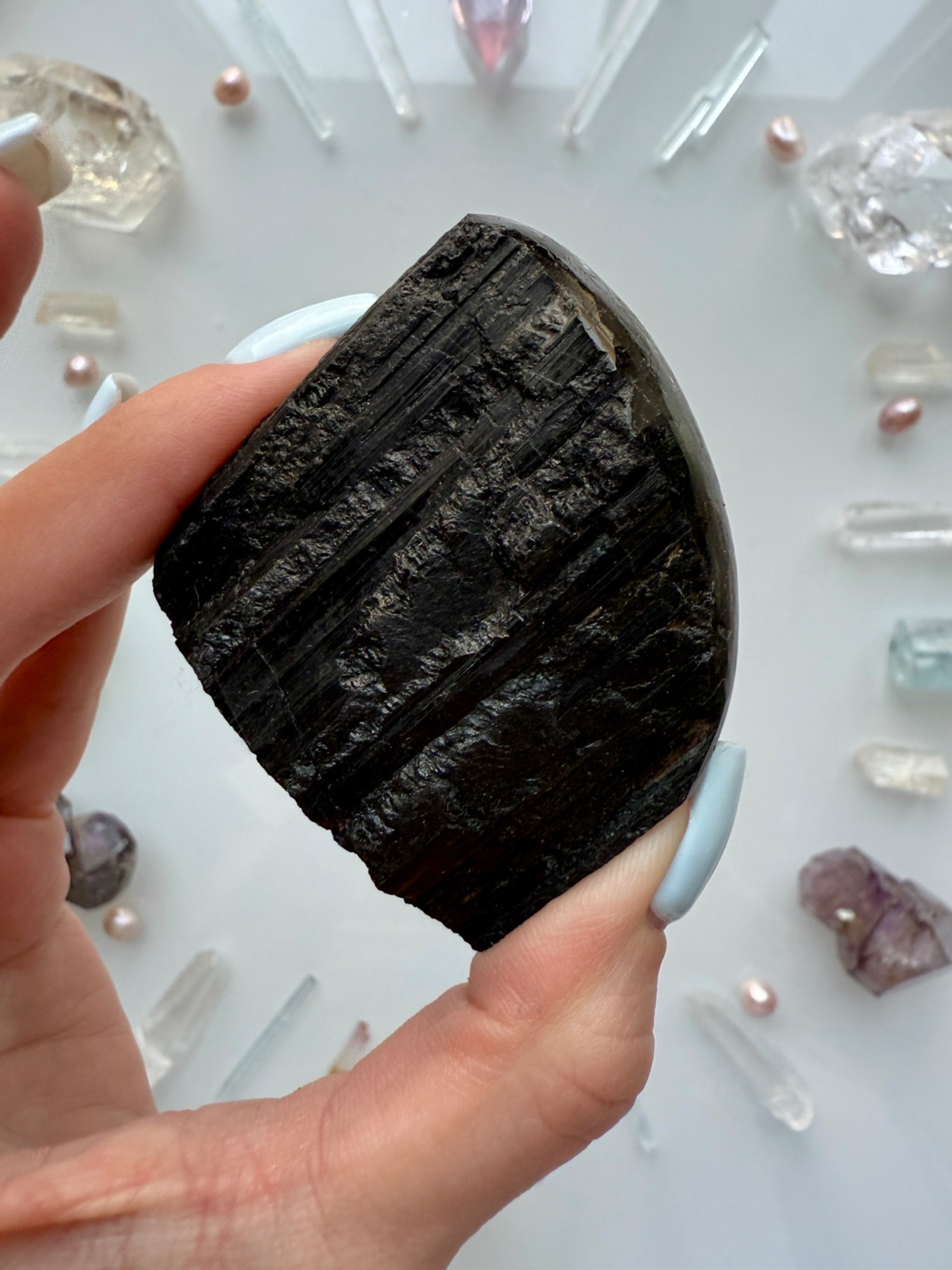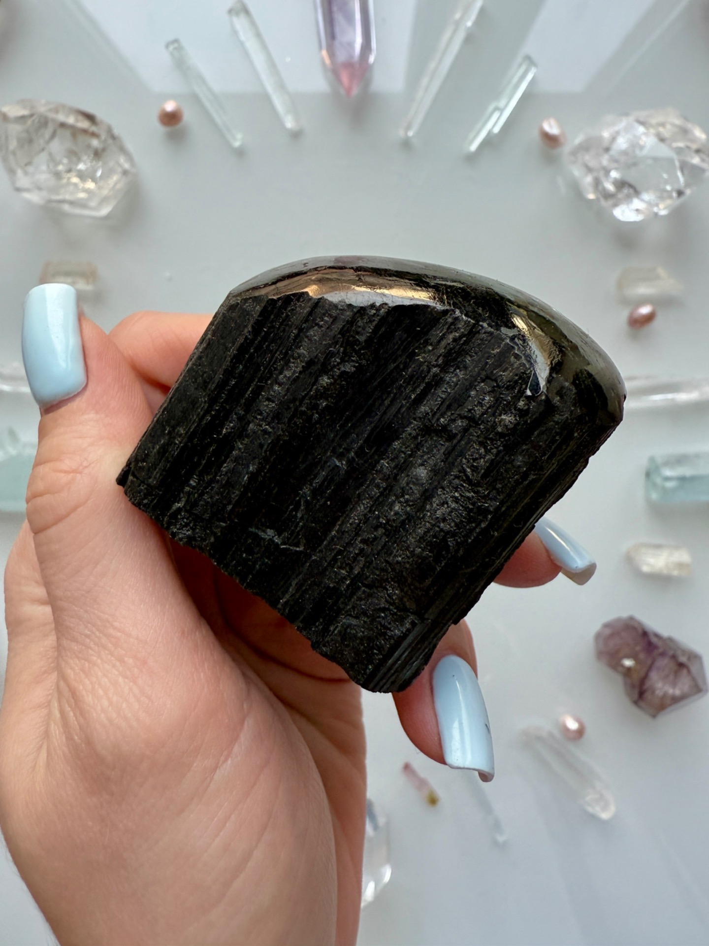 Ochranný krystal Turmalínu, který je vhodný pro někoho, kdo pracuje s lidmi nebo žije v prostředí, které se musí často čistit.