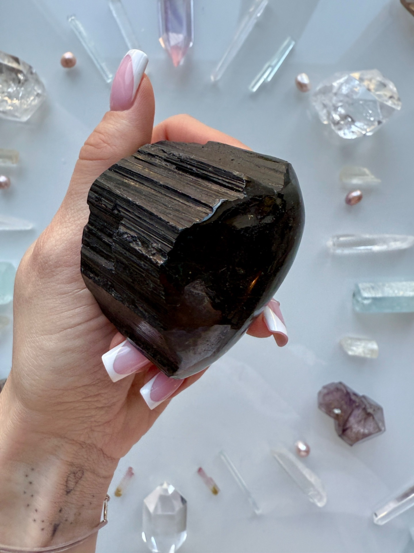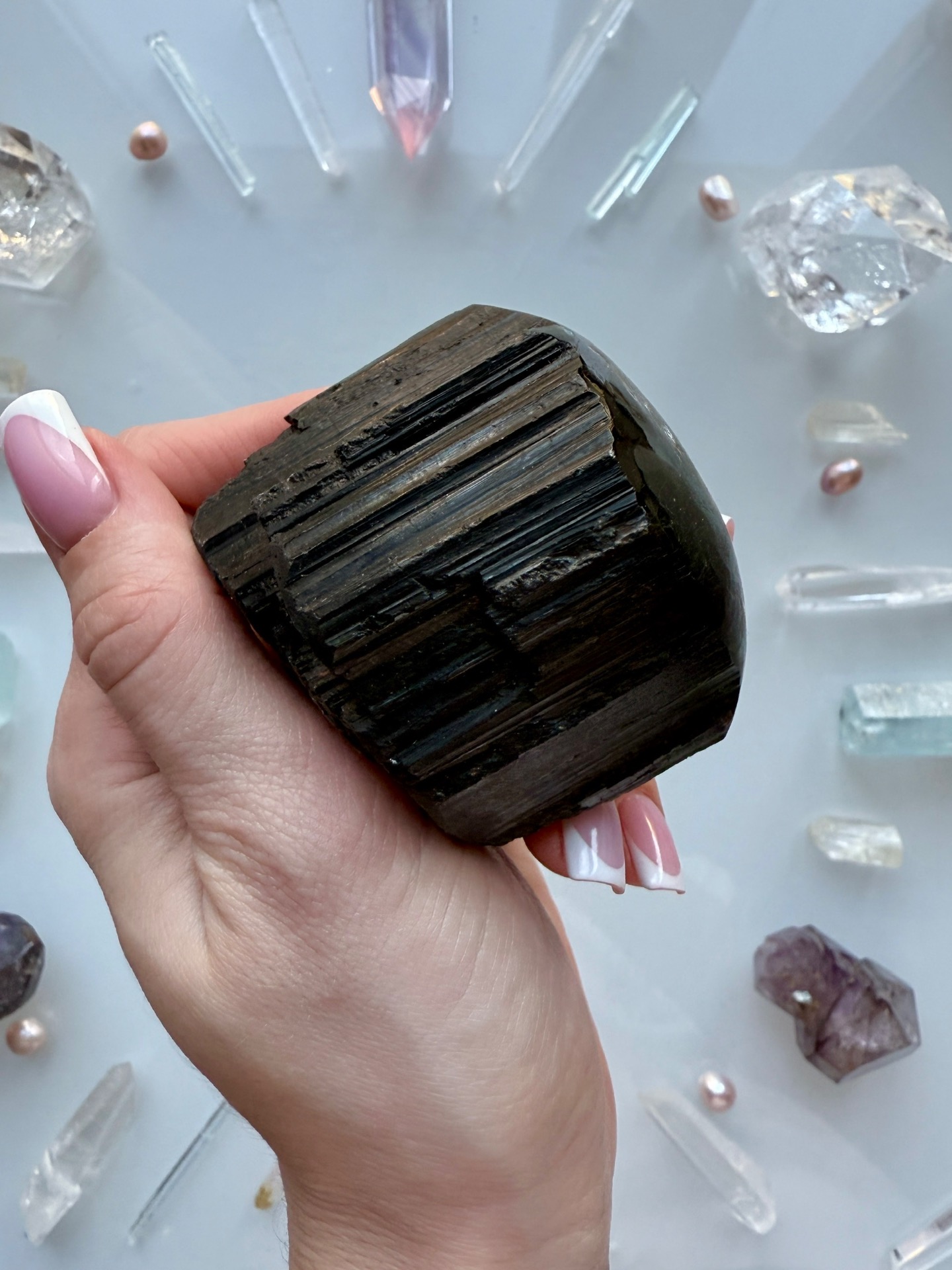 Ochranný krystal Turmalínu, který je vhodný pro někoho, kdo pracuje s lidmi nebo žije v prostředí, které se musí často čistit.