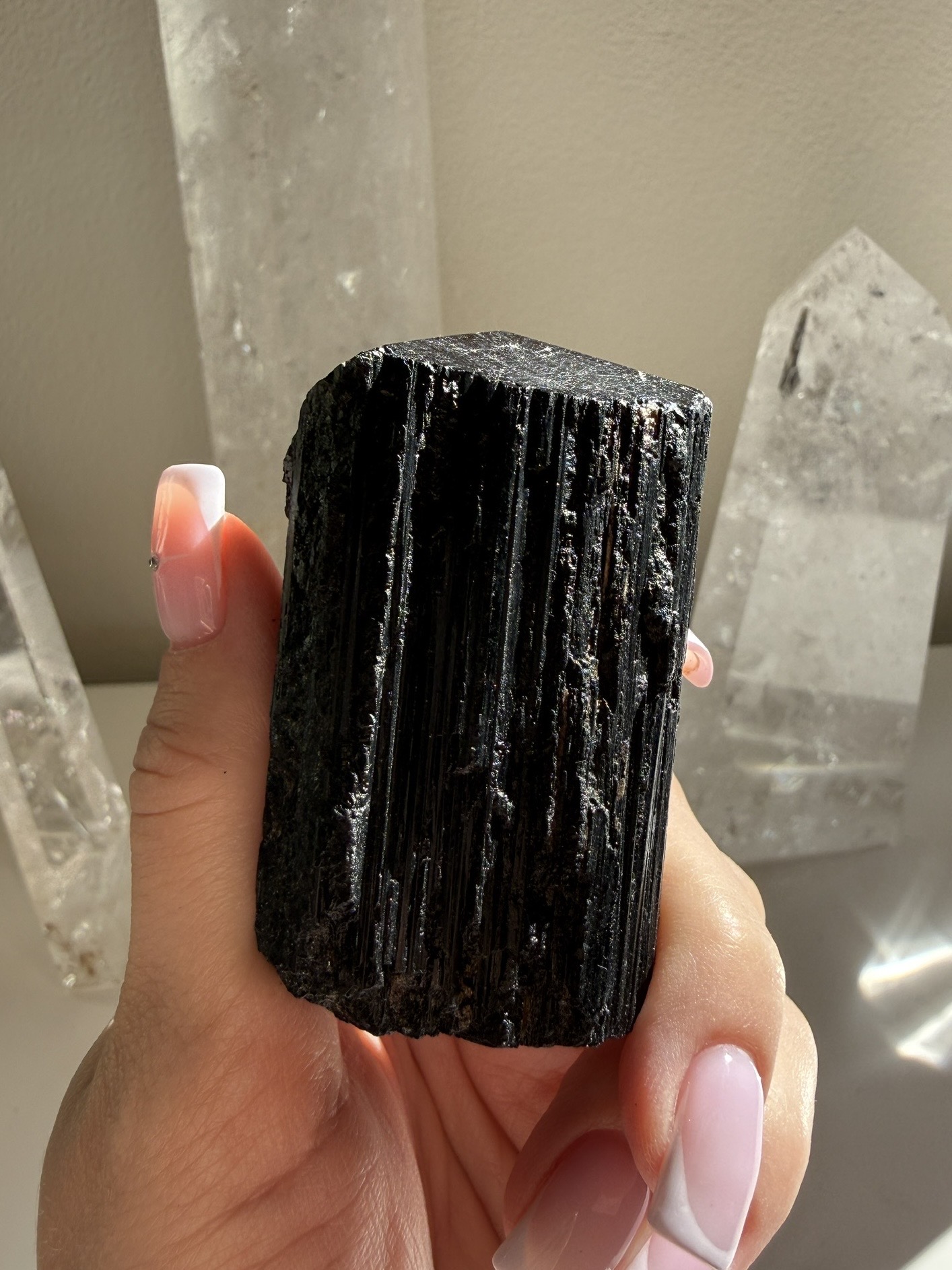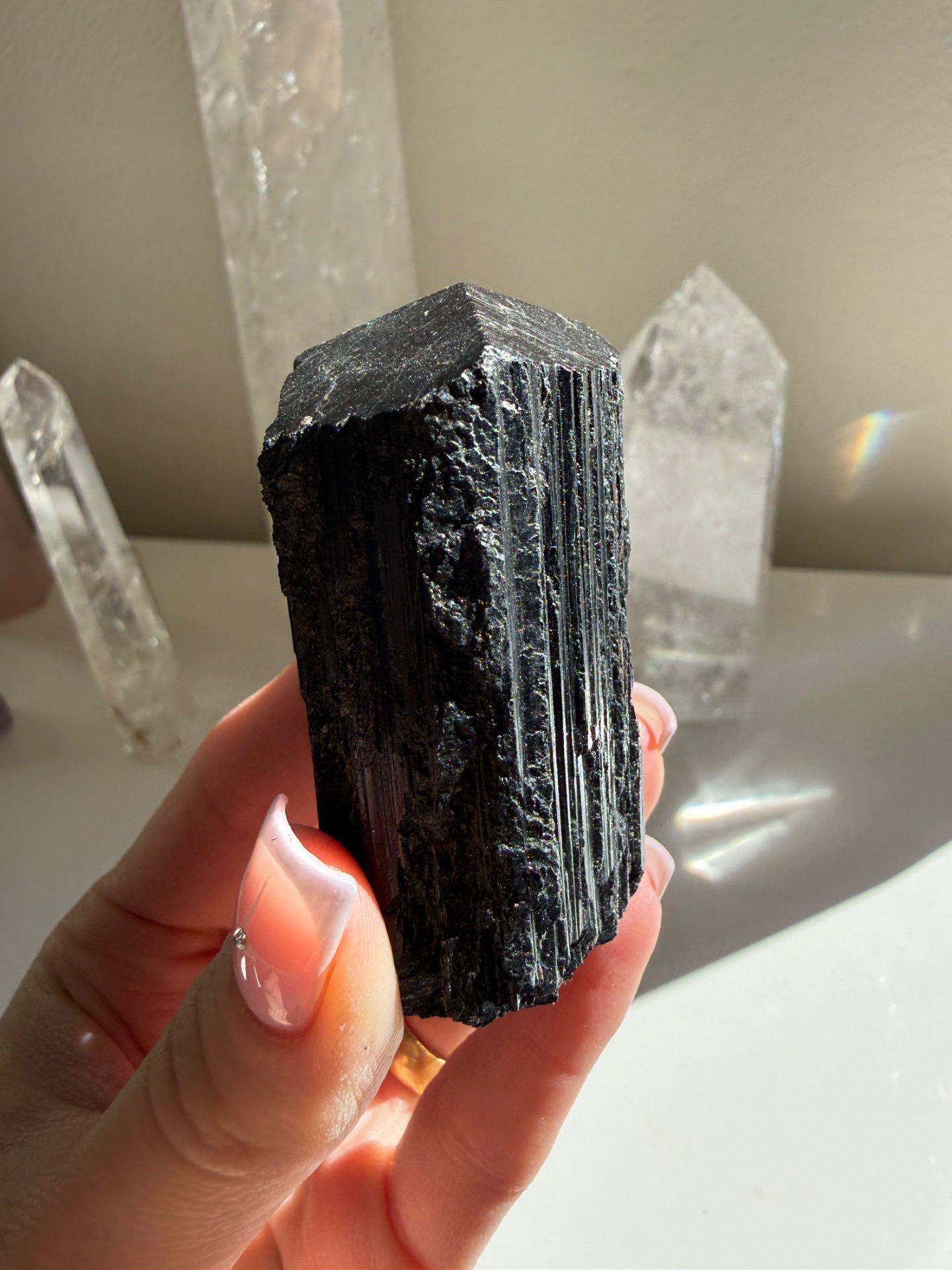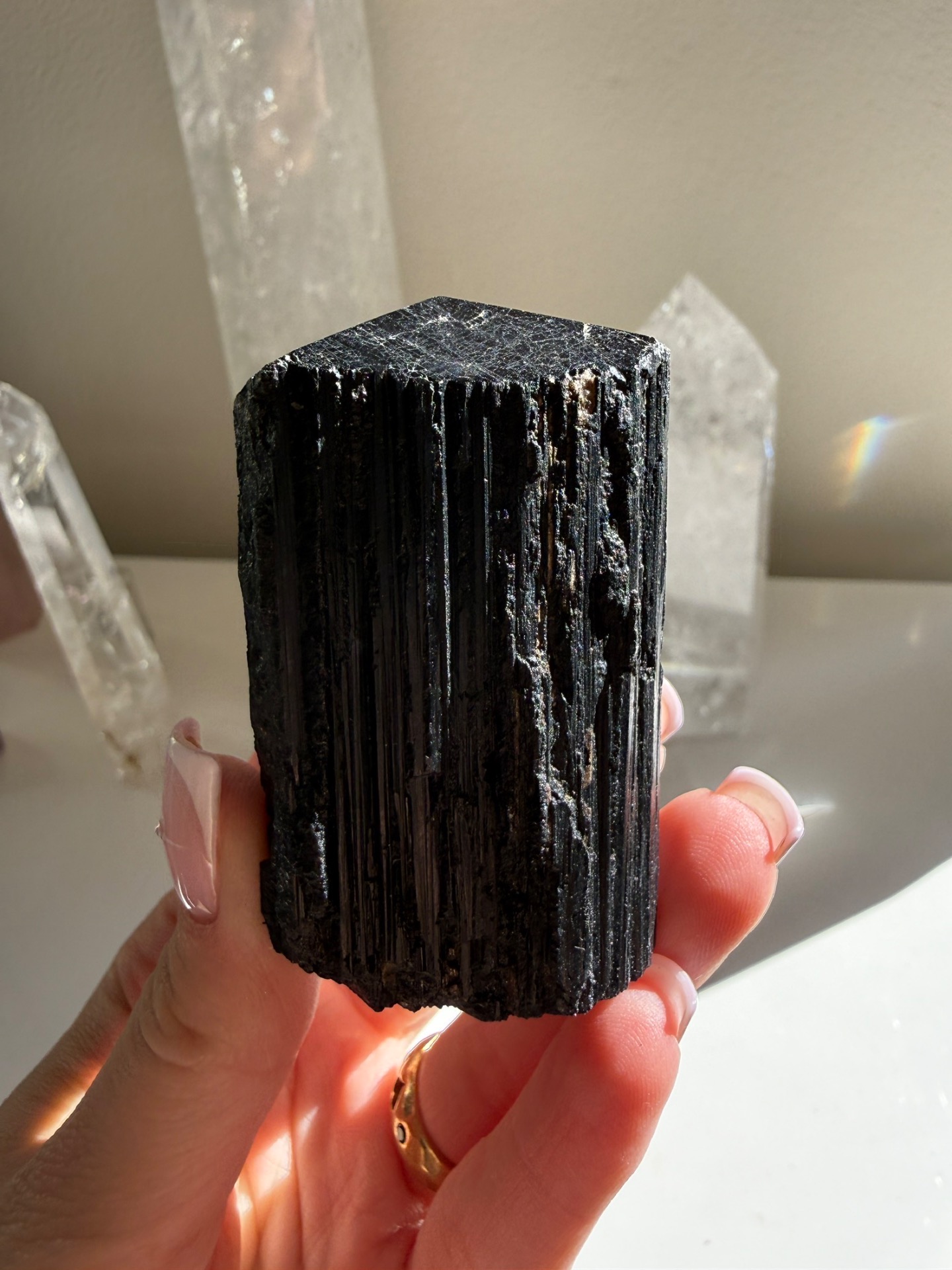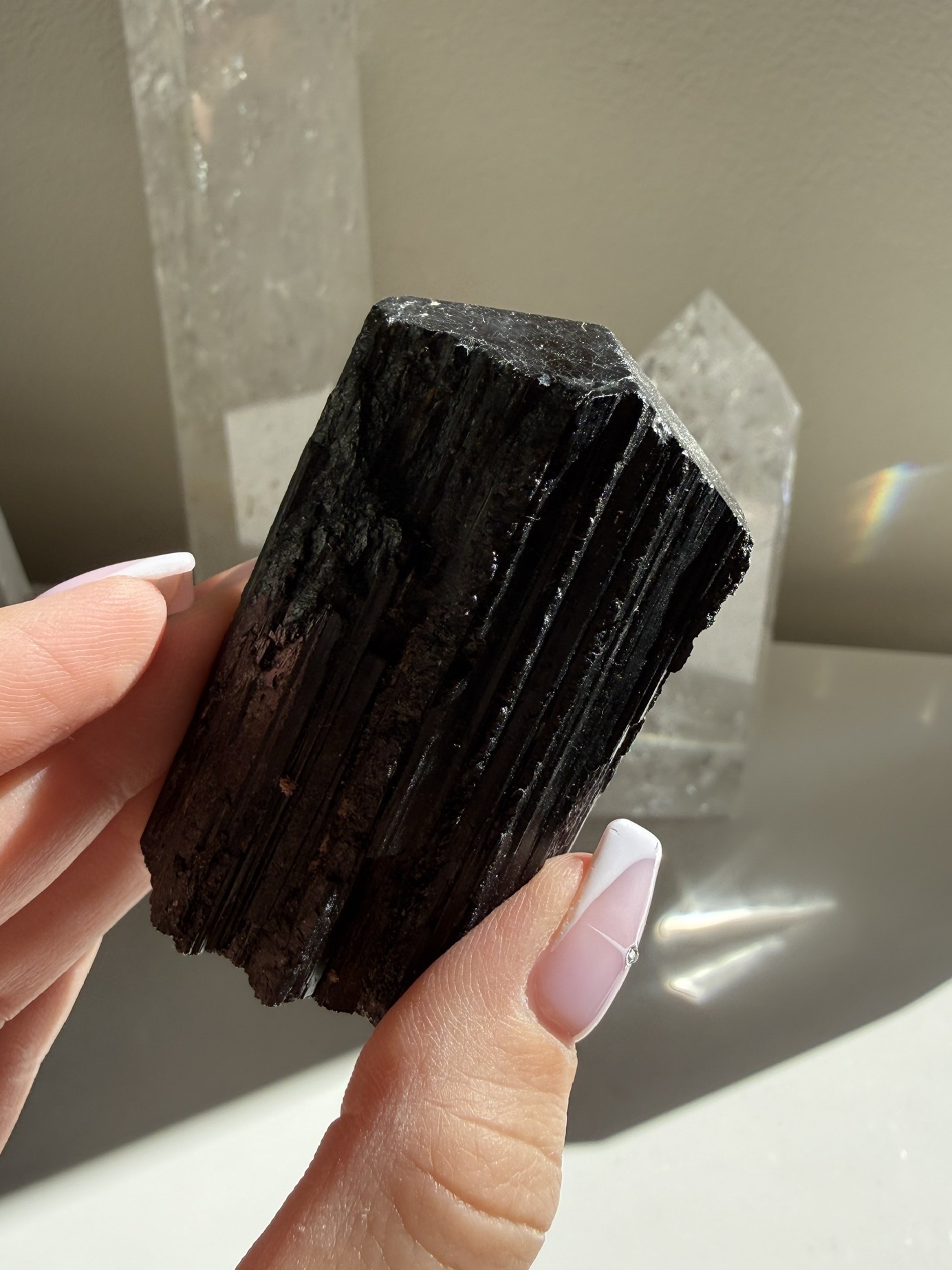 Ochranný krystal Turmalínu, který je vhodný pro někoho, kdo pracuje s lidmi nebo žije v prostředí, které se musí často čistit.