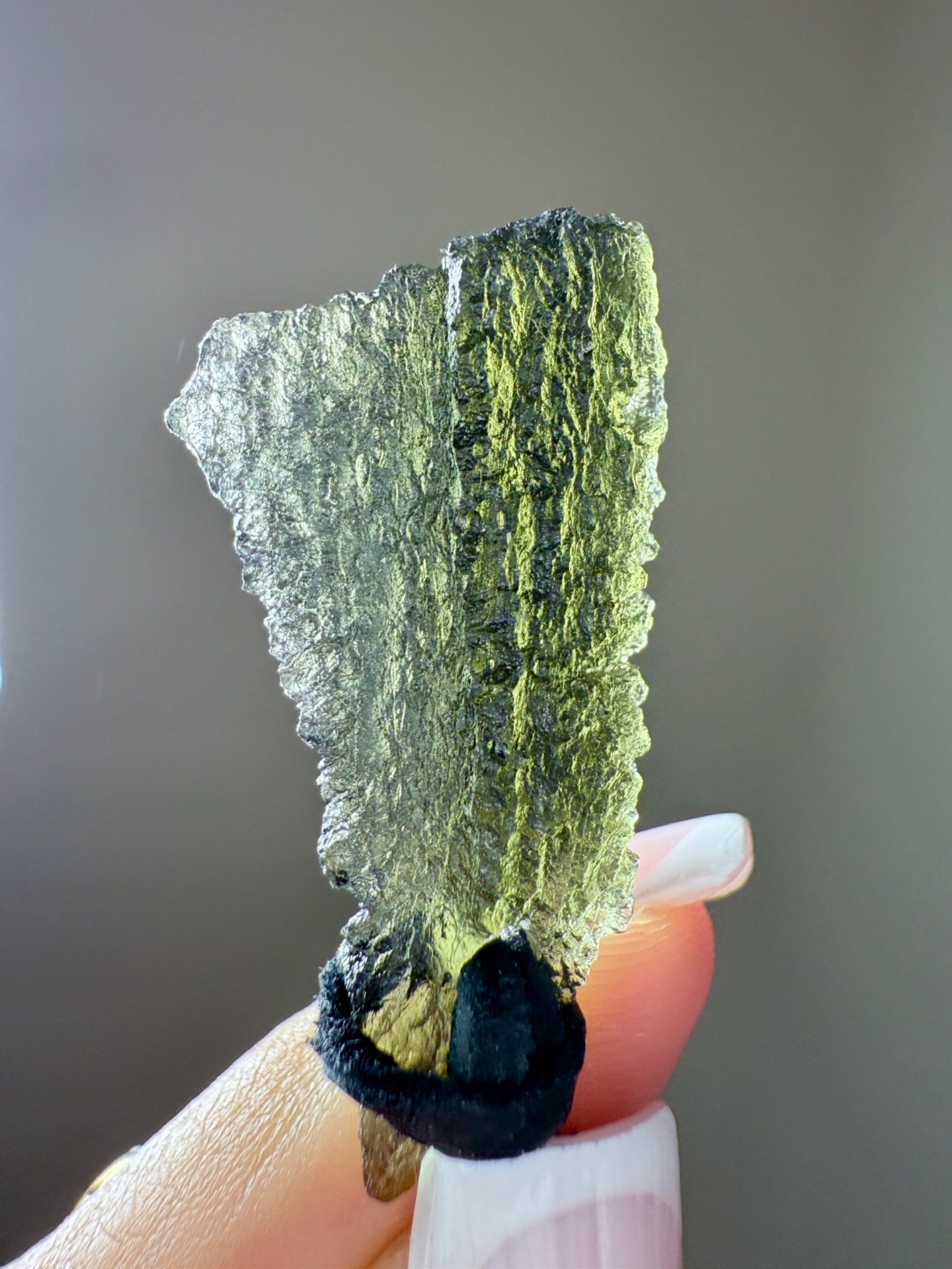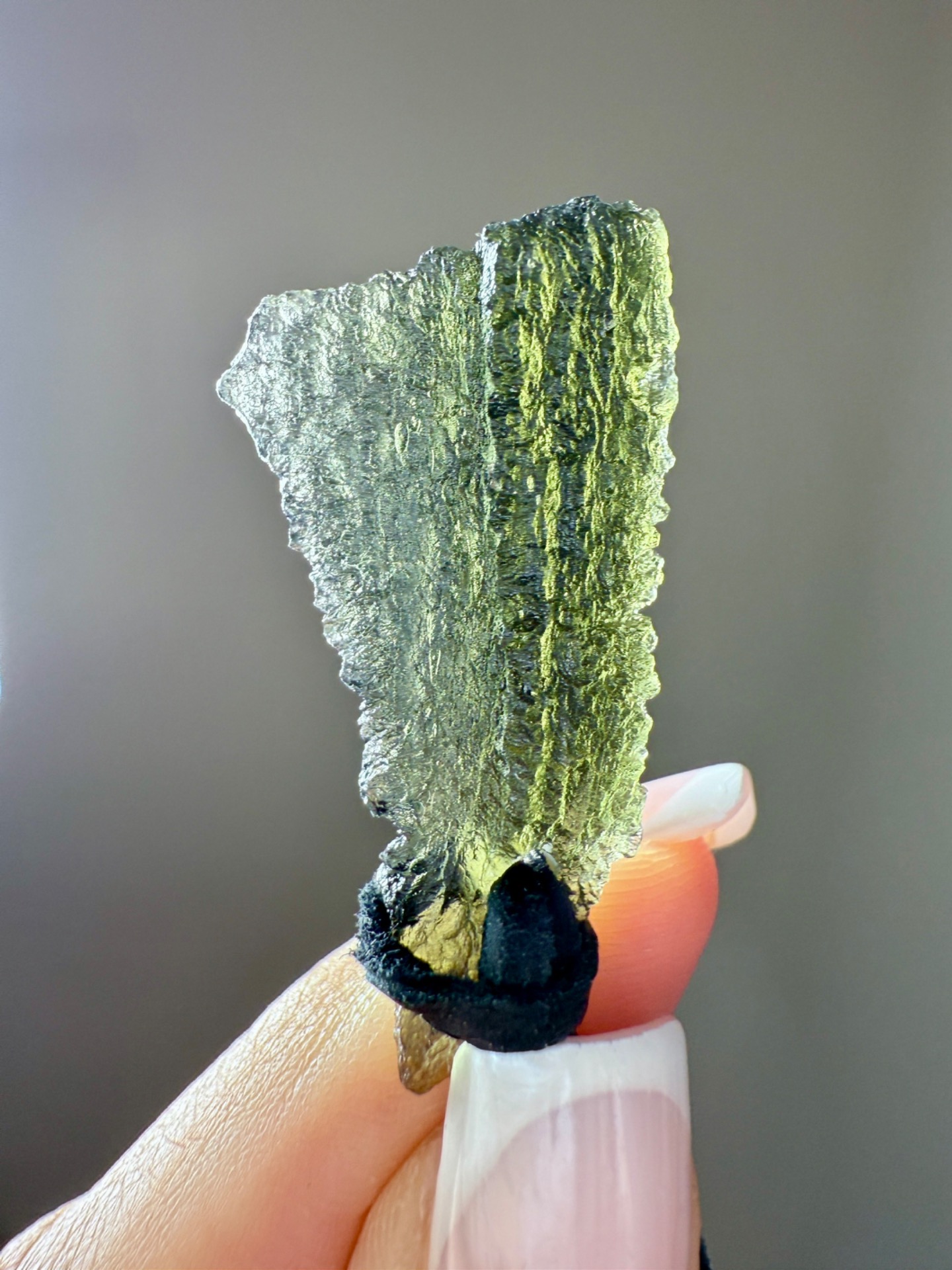 Vltavín surový krystal na kožené šňůrce.
