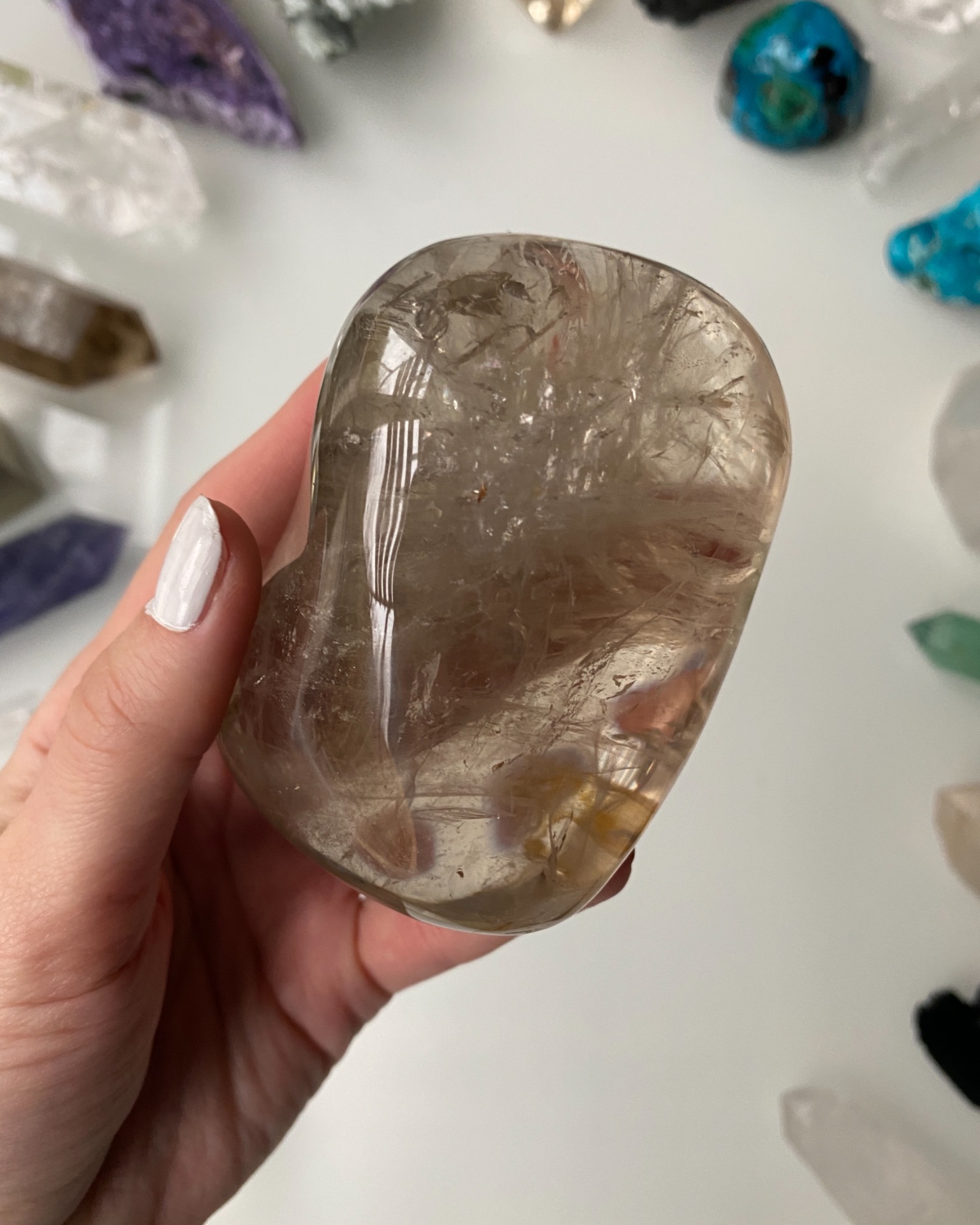 Krásná světelná záhněda do ruky, s hladivou energií, která nám pomáhá jak v uzemnění a ukotvení veškerých duchovních energií do našeho pole, ale také přijímání vysokých dávek světla ve spojení s naším fyzickým tělem...