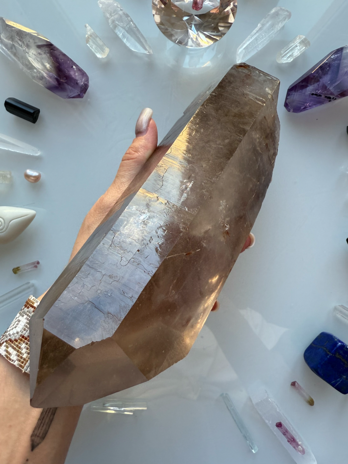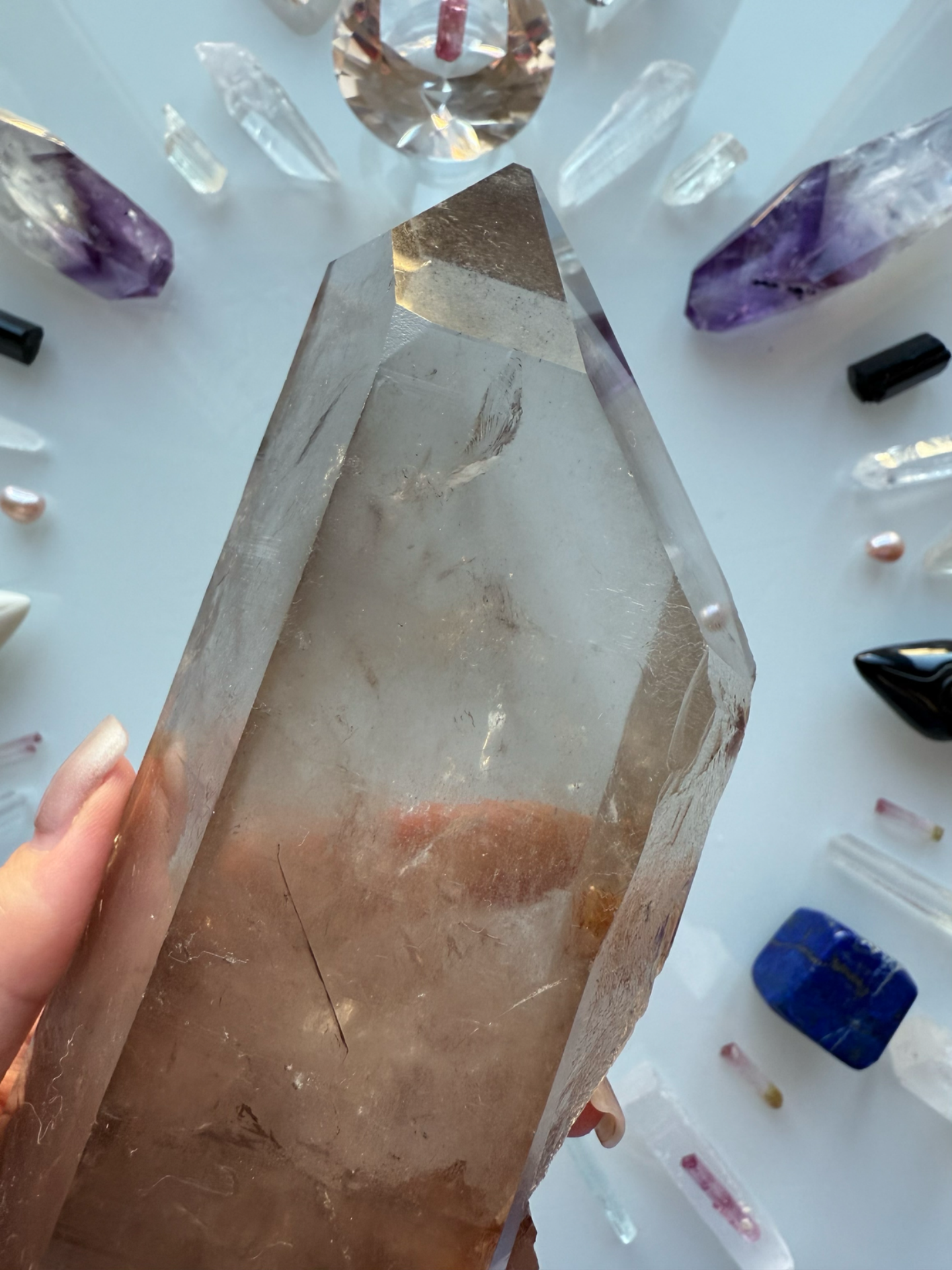 Ve středu je křišťálová mísa, kterou stráží kobry, ve které jsou minerály a na nich ametystová aktivační pečeť. Především je však naplněná posvátnou vodou z Osirionu, 💧místa, kde byl poprvé nalezen Květ Života, kde jsem tuto vodu byla vedena již před rokem dovézt, aby až dnes nadešla chvíle tohoto předání. Toto místo není lidem běžně přístupné a tato voda je aktivační pamětí celé geometrie.