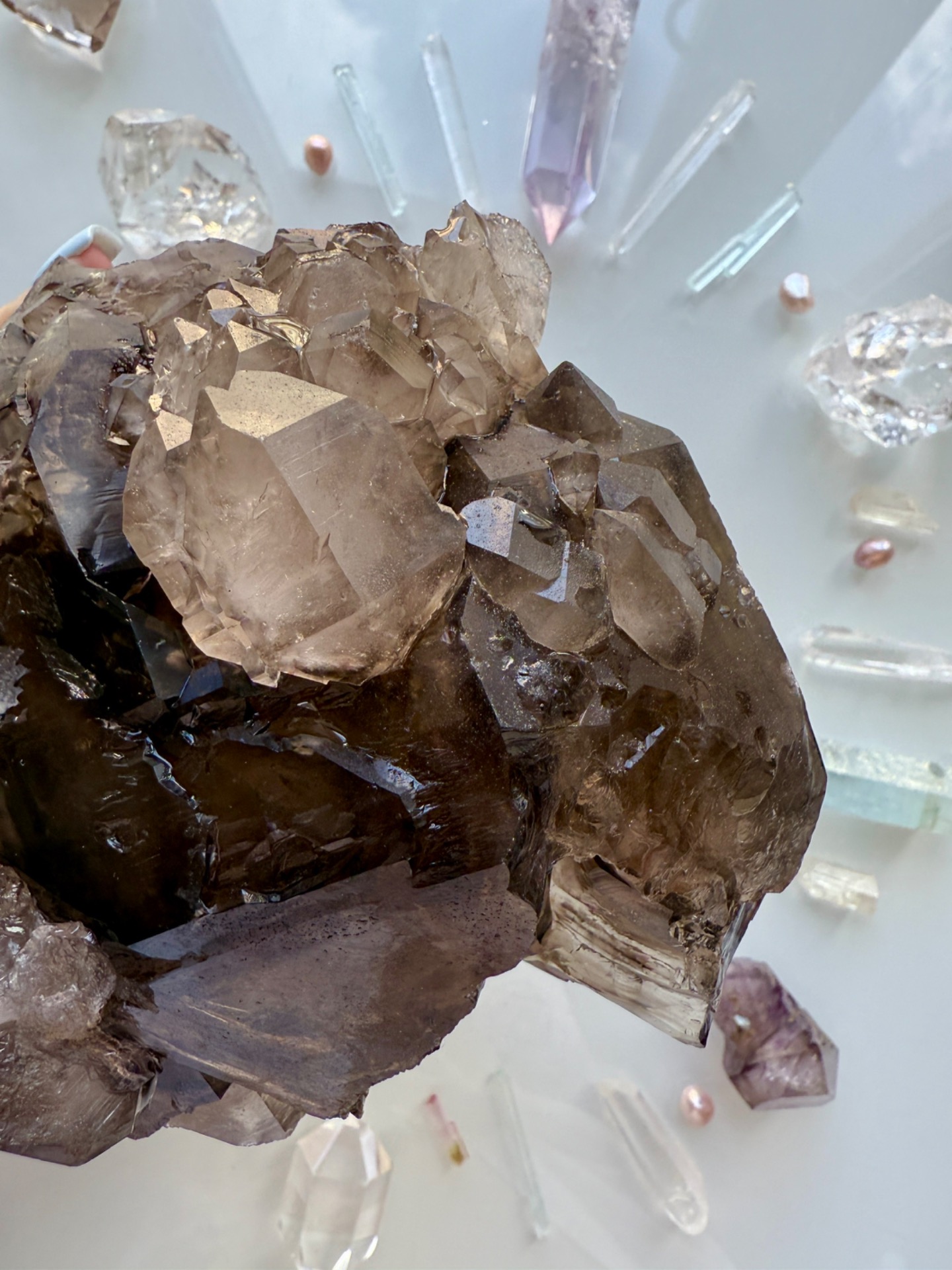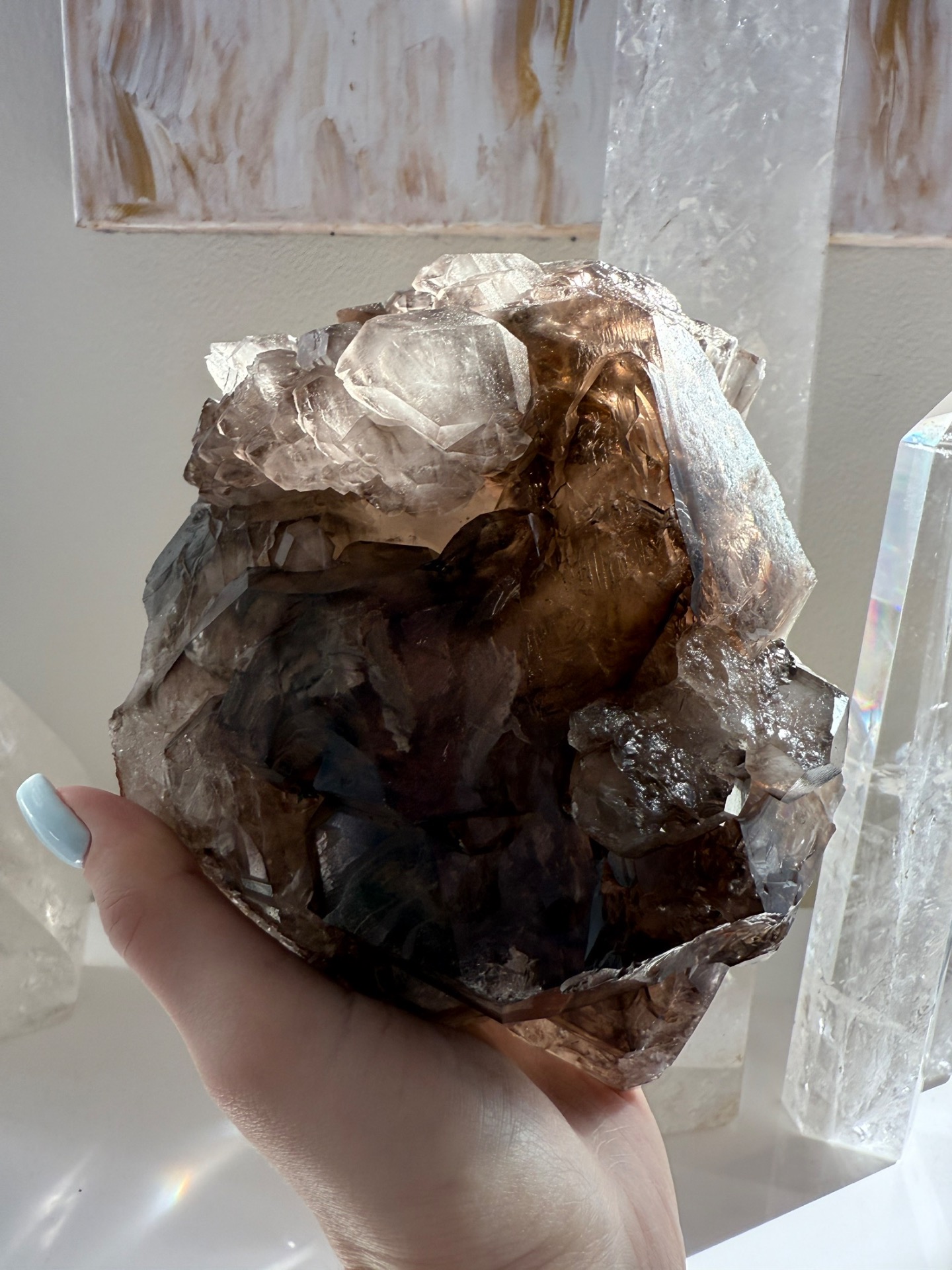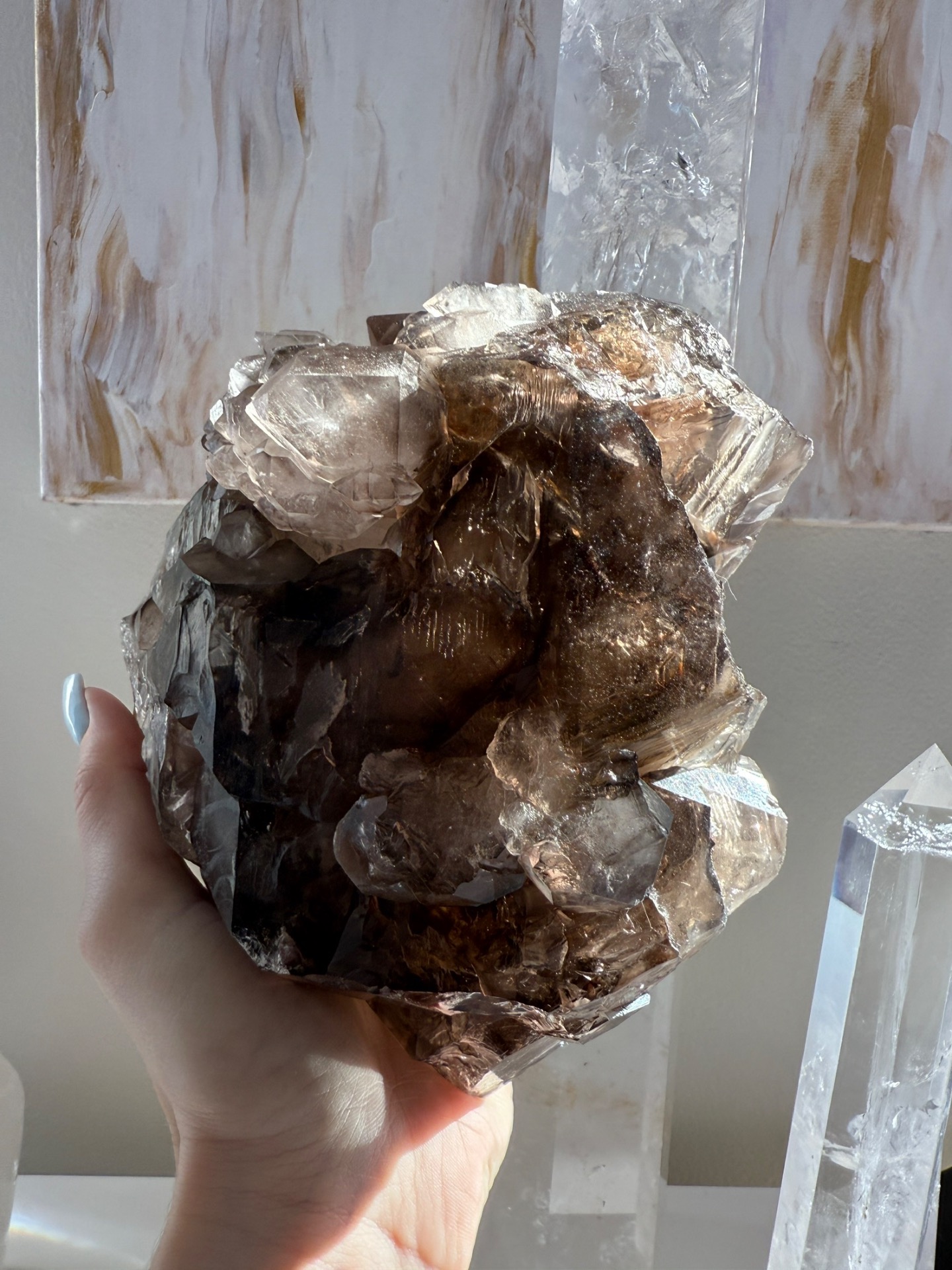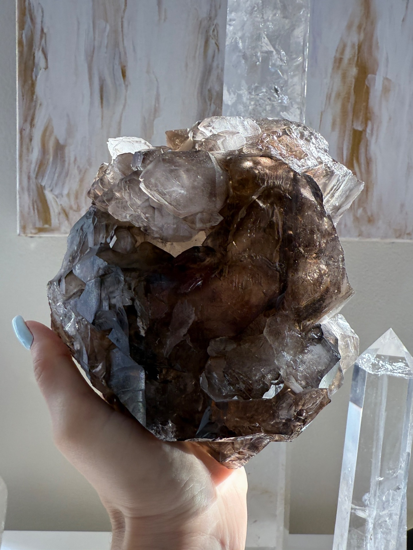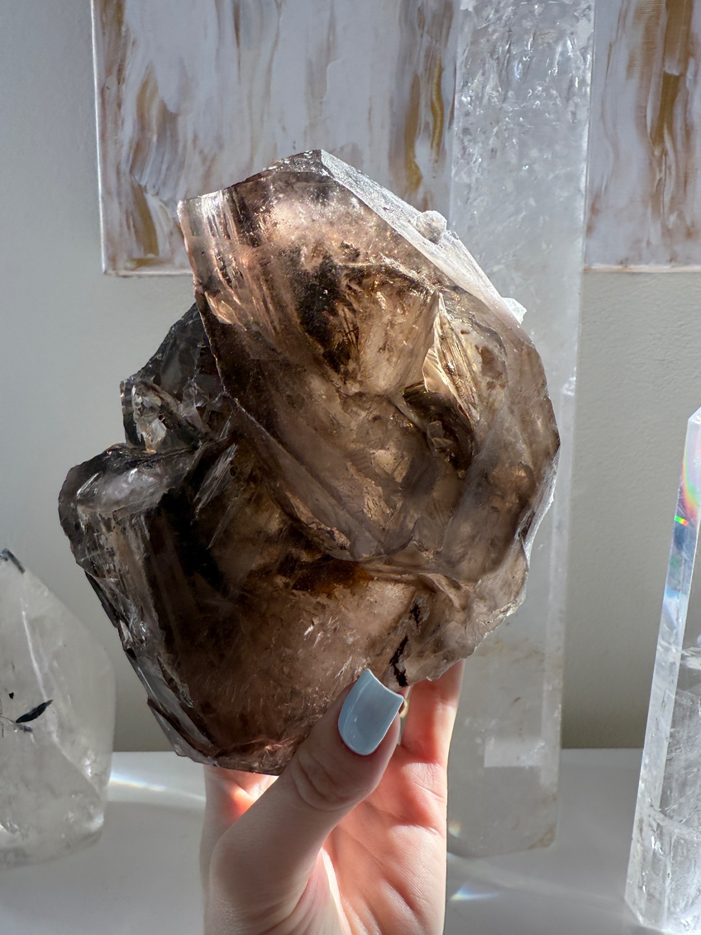 Unikátní mistrovská záhněda ve speciálním krystalickém růstu, který umí energii řadově kumulovat. Jedná se o silný krystal vhodný pro ty, kteří už nějaký krystal vlastní. Na první pohled možná nenápadný krystal, který ale to hlavní ukrývá v sobě a v krystalickém Jádru.