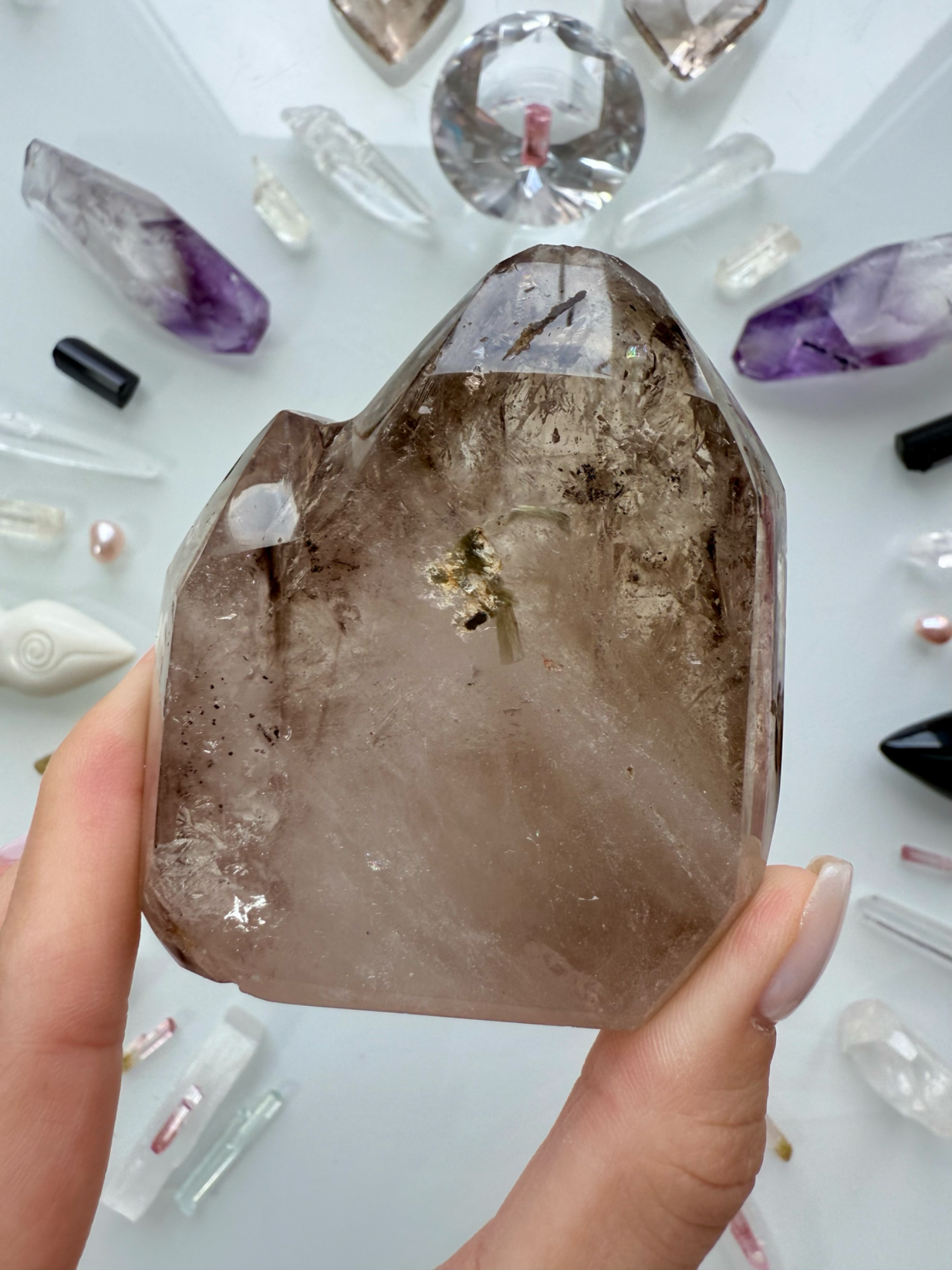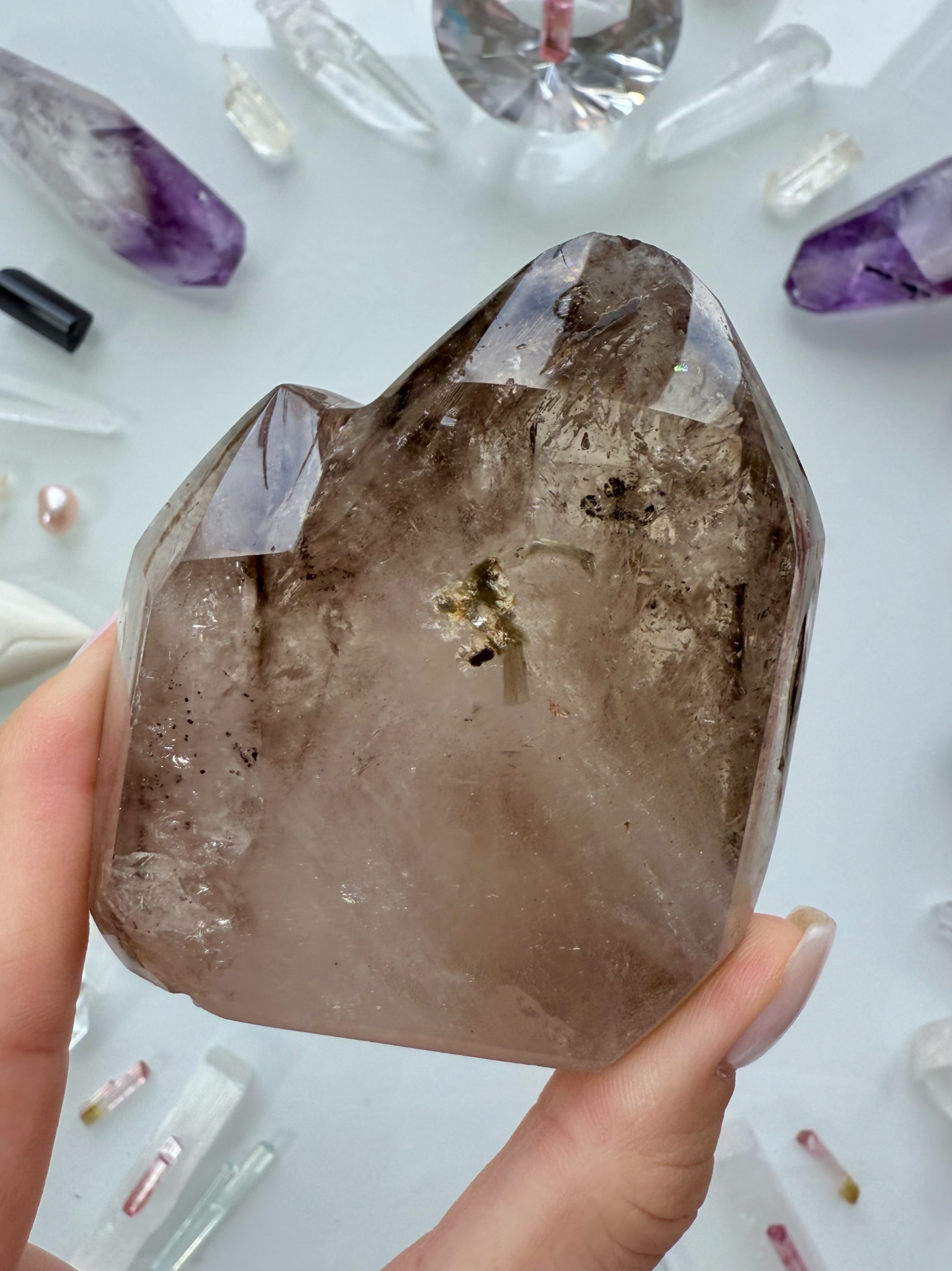 Krystal s bublinkami vody, na první pohled jsem našla dvě bubliny z toho jedna dost velká :-) . TIP: prosviť krystal baterkou a zahýbej jím.
